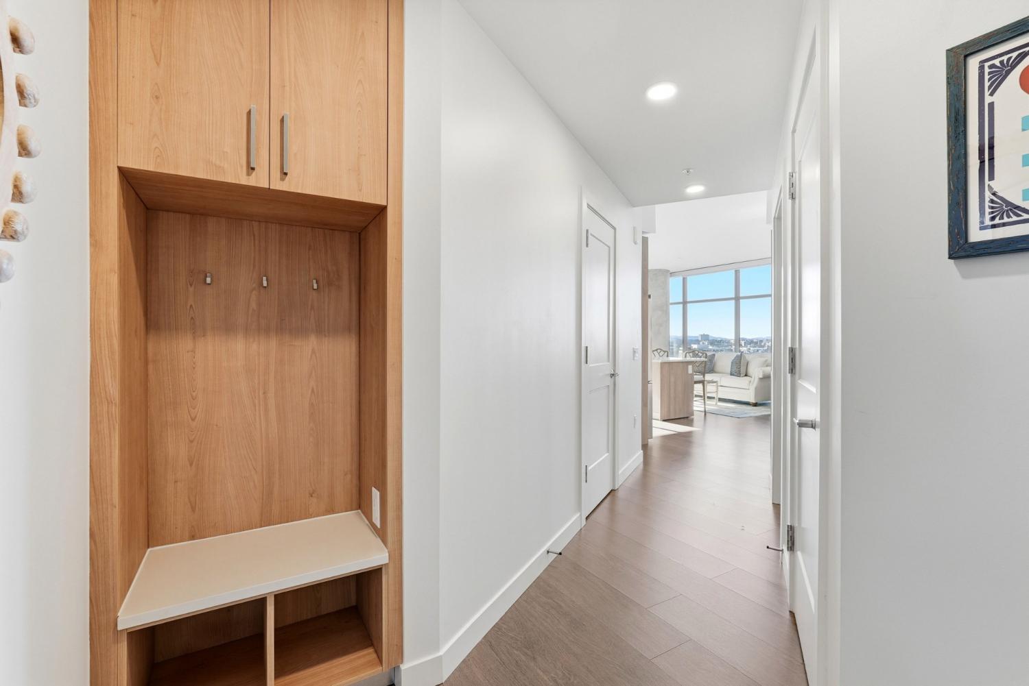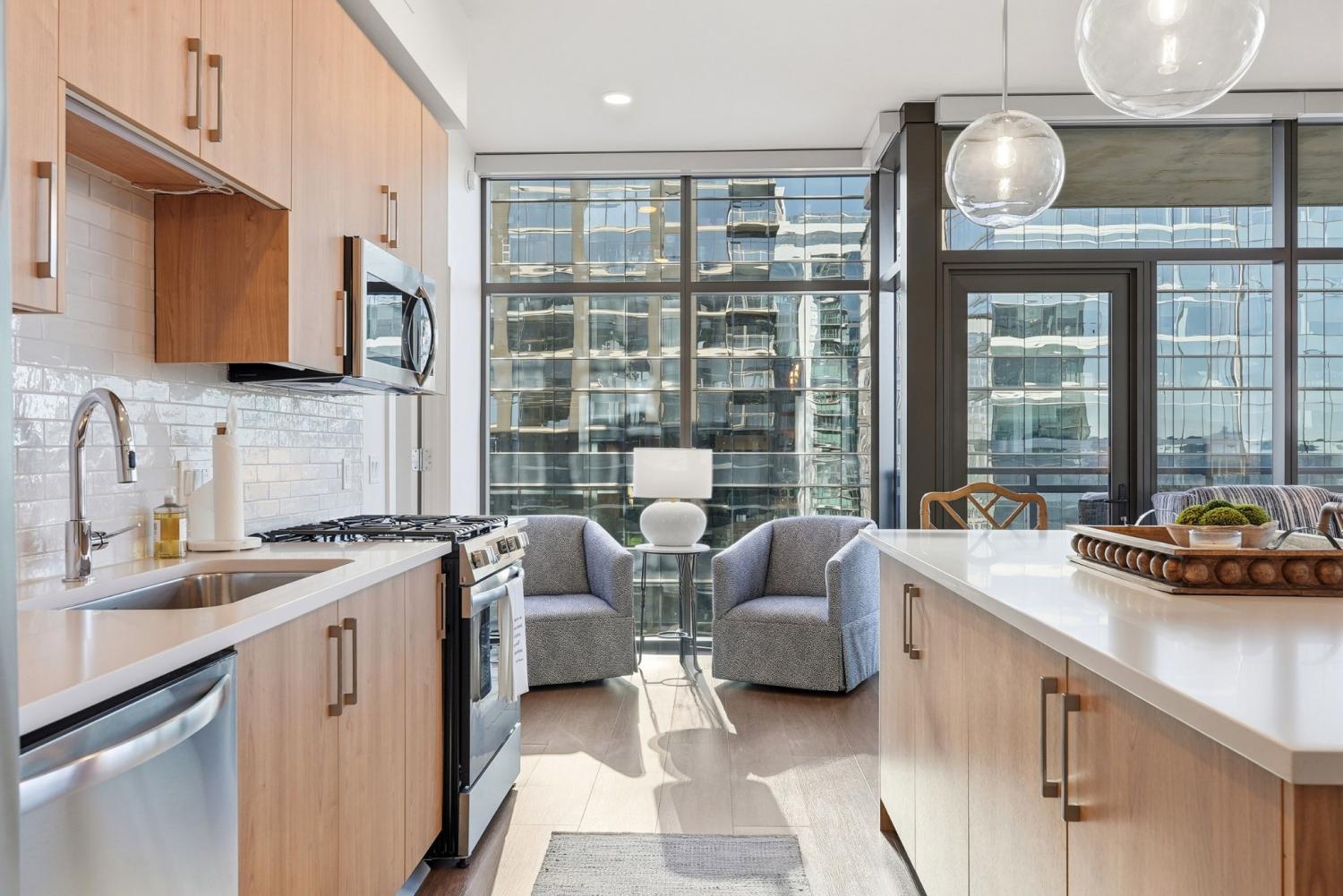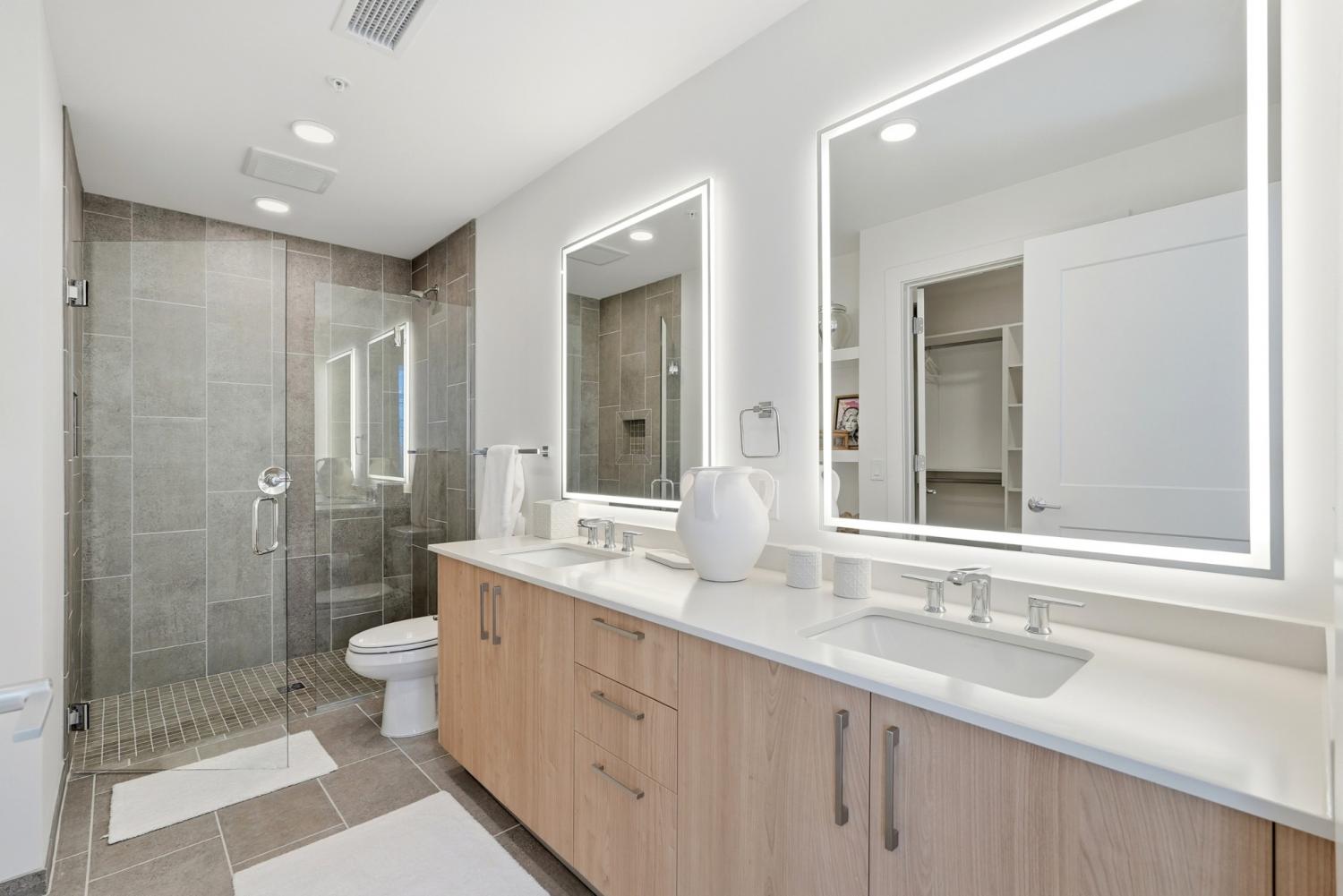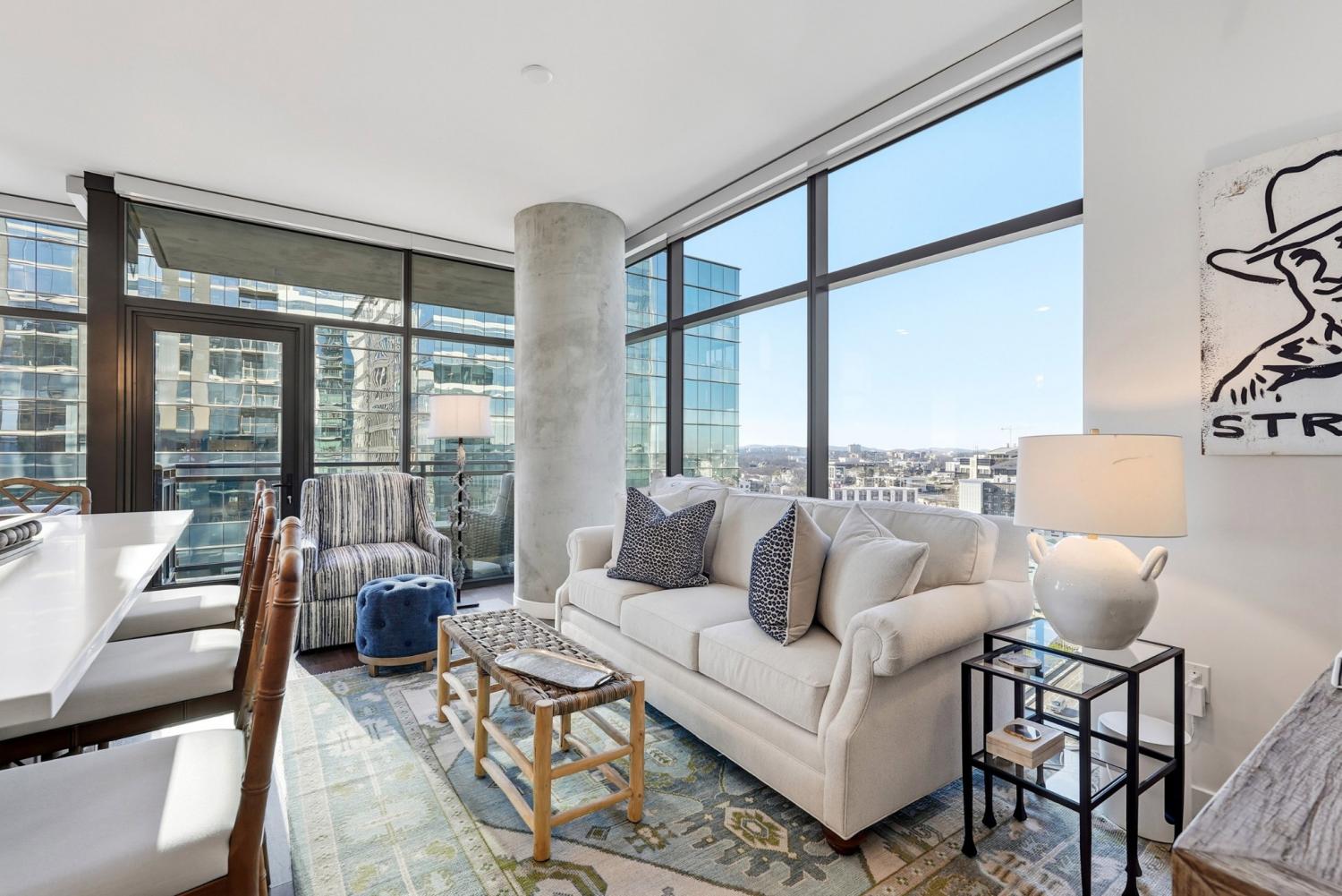Corner 2 bedroom unit. This brand-new building sits in the heart of Nashville, offering direct interstate access and easy walkability to the Gulch, Downtown, and Midtown. The unit features turnkey modern living with a full Frigidaire appliance package—including gas cooking—custom built-in closet systems, and backlit bathroom mirrors, plus 2 assigned parking spaces and STORAGE unit included. Brand new furniture, TV's, subs/speakers, etc. is optional to purchase for 25k. Motorized shades have been installed. Residents enjoy top-tier amenities such as a rooftop pool deck, fitness center, pickleball courts, an owners lounge and library, bocce court, outdoor kitchen and gathering spaces, multiple work areas, 24/7 onsite staff, and more. Conventional, FHA, and VA financing options are now available!