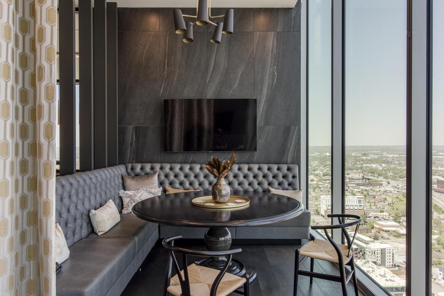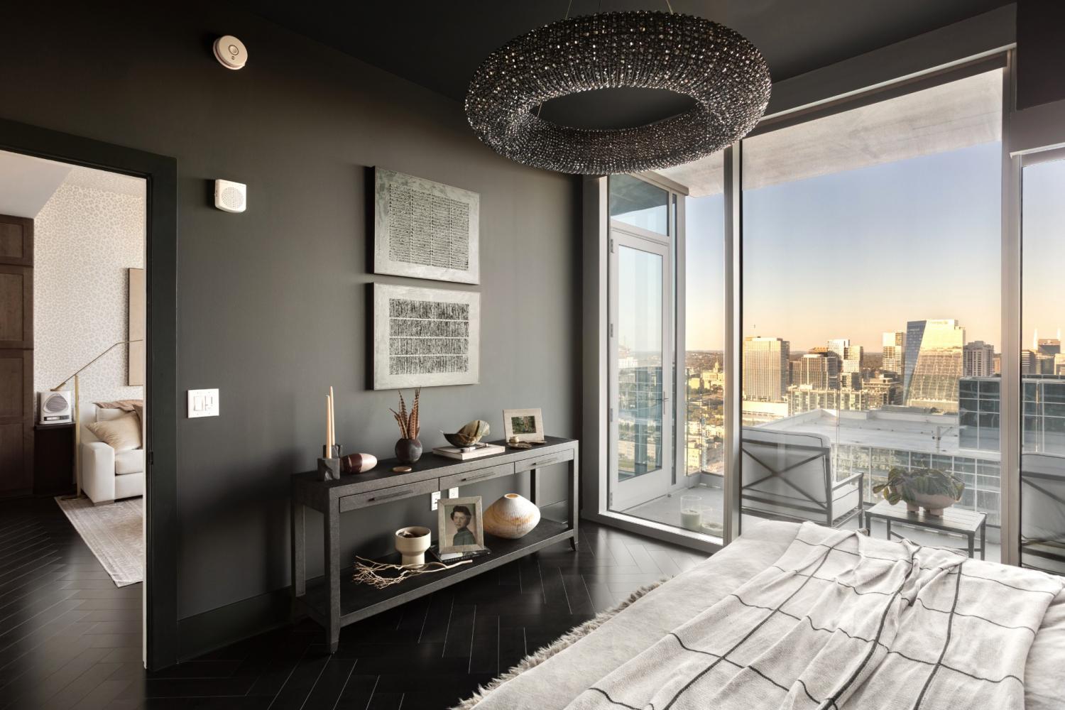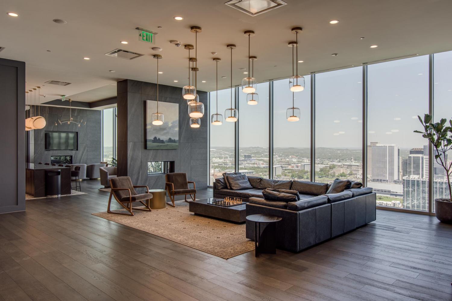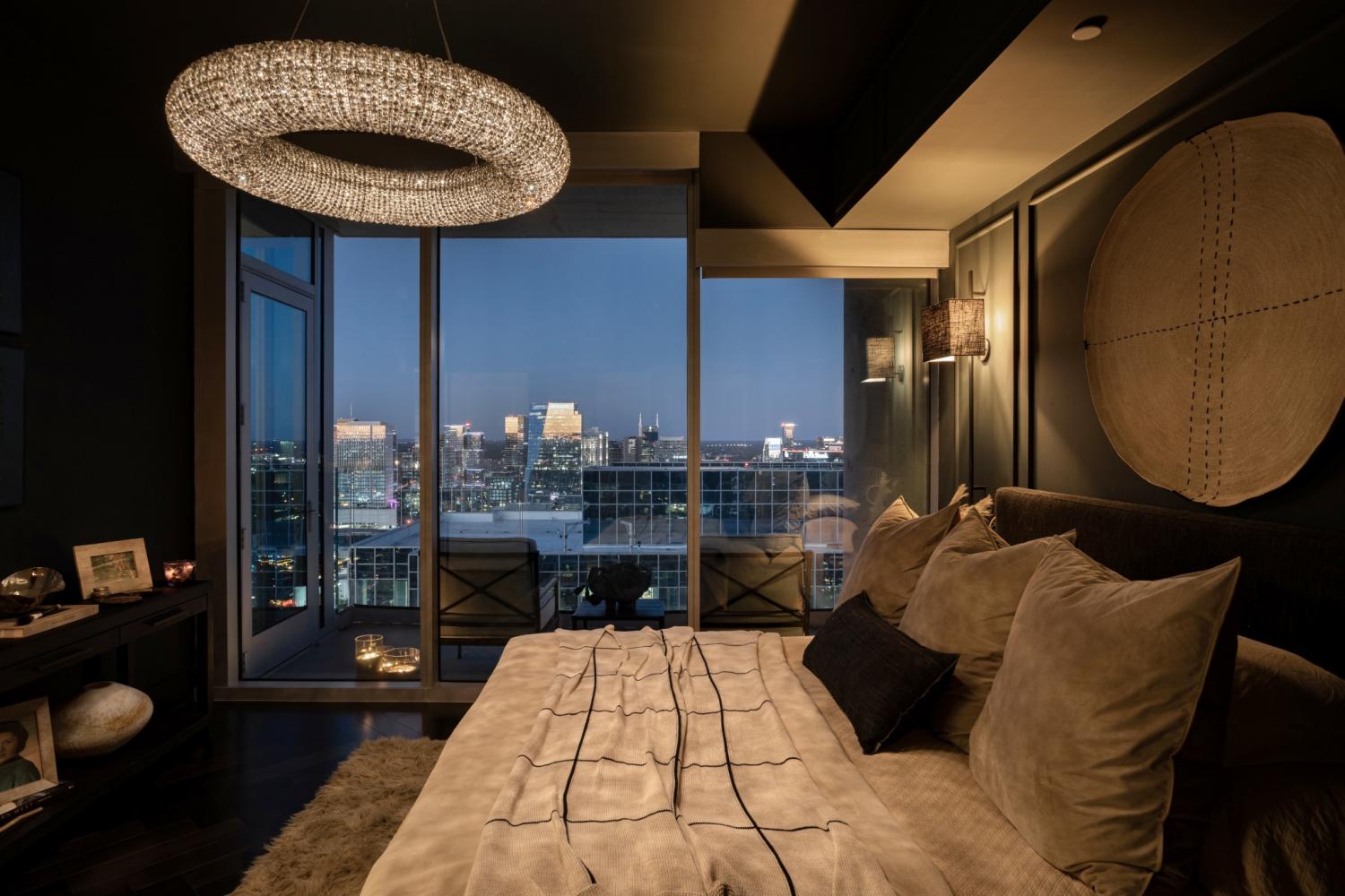 This unit features rare uninterrupted views of the downtown skyline, a view available to one of 3 one-bedroom units at Broadwest, with this specific unit at the highest residential floor, just below the penthouses. Exclusive top-floor, private sky residence above the Conrad with sweeping views of Downtown Skyline and access to private owner hotel-level amenities as well as preferred access and discounts to Conrad Hotel services and amenities (see documents in media). Includes two parking spaces, a unique offering for one-bedroom residences and features the highly sought-after 05 floor plan, offering perfectly aligned downtown views, one of the largest kitchen islands at Broadwest, an expansive living area, and a flexible space off the kitchen, which offers space to customize ie: cedar lined wine storage, murphy bed and guest space, professionally designed sauna, etc. Residents enjoy exclusive access to the private 34th-floor owner amenities, including a state-of-the-art fitness center, exercise classes, steam room, sauna, and private dining room. Pet wash and pet run located on P2. This condo features high-end custom finishes throughout, including herringbone hardwood floors, marble countertops, and a chef’s kitchen with Wolf and Sub-Zero appliances. The primary suite includes an ensuite marble clad bath and custom California Closets. Designer wall coverings throughout, designer lighting, Culligan reverse osmosis water filtration and whole home filtration, UV-protective window tinting, electrical in office nook.