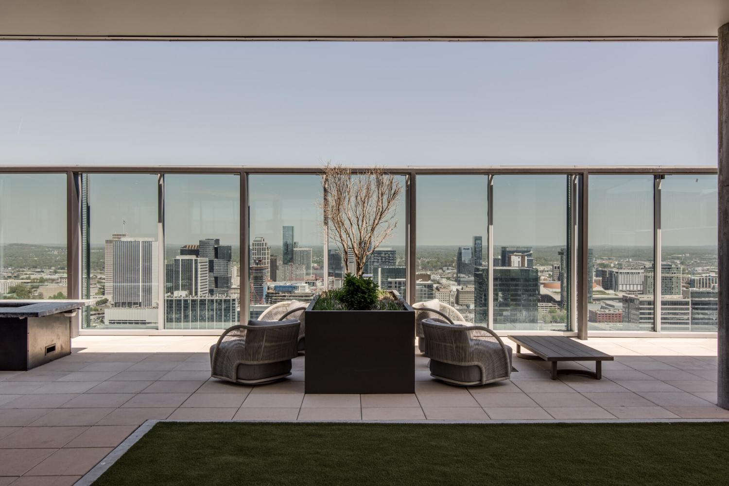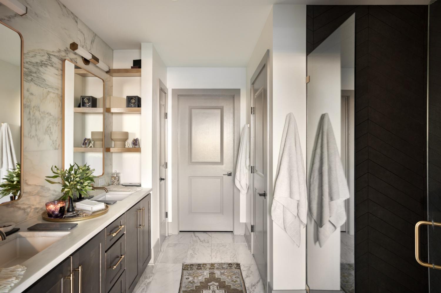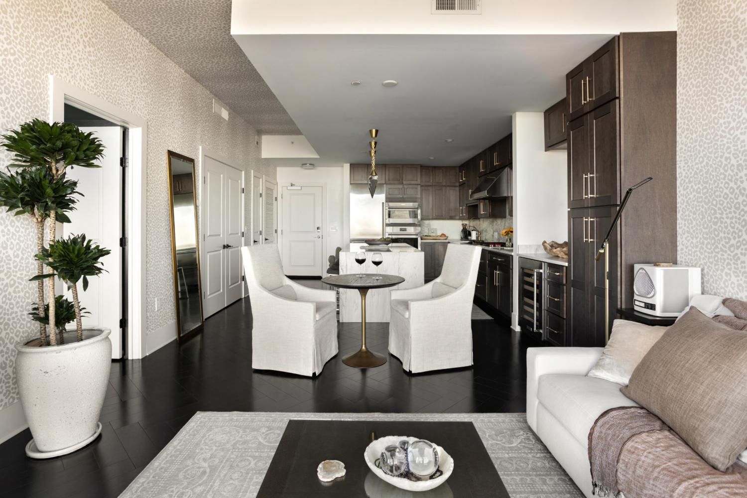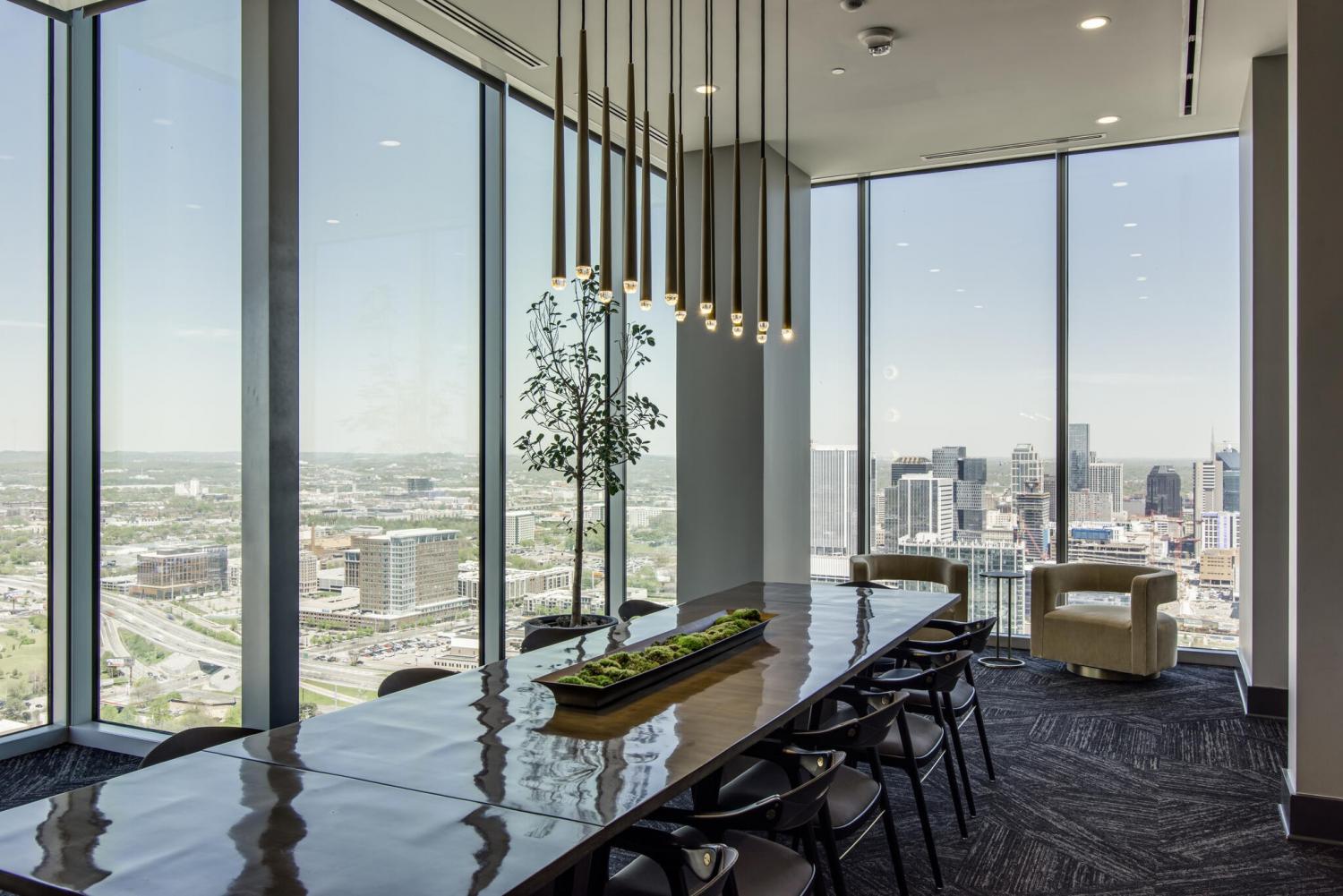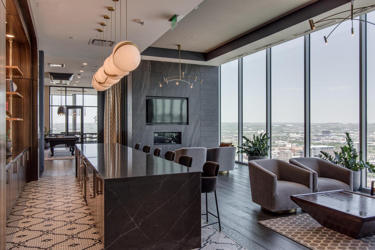 This unit features rare uninterrupted views of the downtown skyline, a view available to one of 3 one-bedroom units at Broadwest, with this specific unit at the highest residential floor, just below the penthouses. Exclusive top-floor, private sky residence above the Conrad with sweeping views of Downtown Skyline and access to private owner hotel-level amenities as well as preferred access and discounts to Conrad Hotel services and amenities (see documents in media). Includes two parking spaces, a unique offering for one-bedroom residences and features the highly sought-after 05 floor plan, offering perfectly aligned downtown views, one of the largest kitchen islands at Broadwest, an expansive living area, and a flexible space off the kitchen, which offers space to customize ie: cedar lined wine storage, murphy bed and guest space, professionally designed sauna, etc. Residents enjoy exclusive access to the private 34th-floor owner amenities, including a state-of-the-art fitness center, exercise classes, steam room, sauna, and private dining room. Pet wash and pet run located on P2. This condo features high-end custom finishes throughout, including herringbone hardwood floors, marble countertops, and a chef’s kitchen with Wolf and Sub-Zero appliances. The primary suite includes an ensuite marble clad bath and custom California Closets. Designer wall coverings throughout, designer lighting, Culligan reverse osmosis water filtration and whole home filtration, UV-protective window tinting, electrical in office nook.