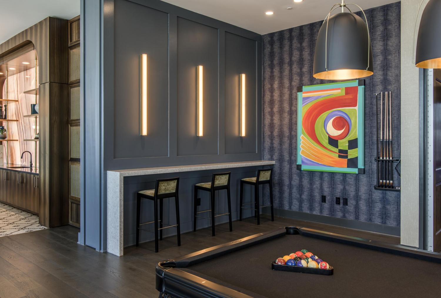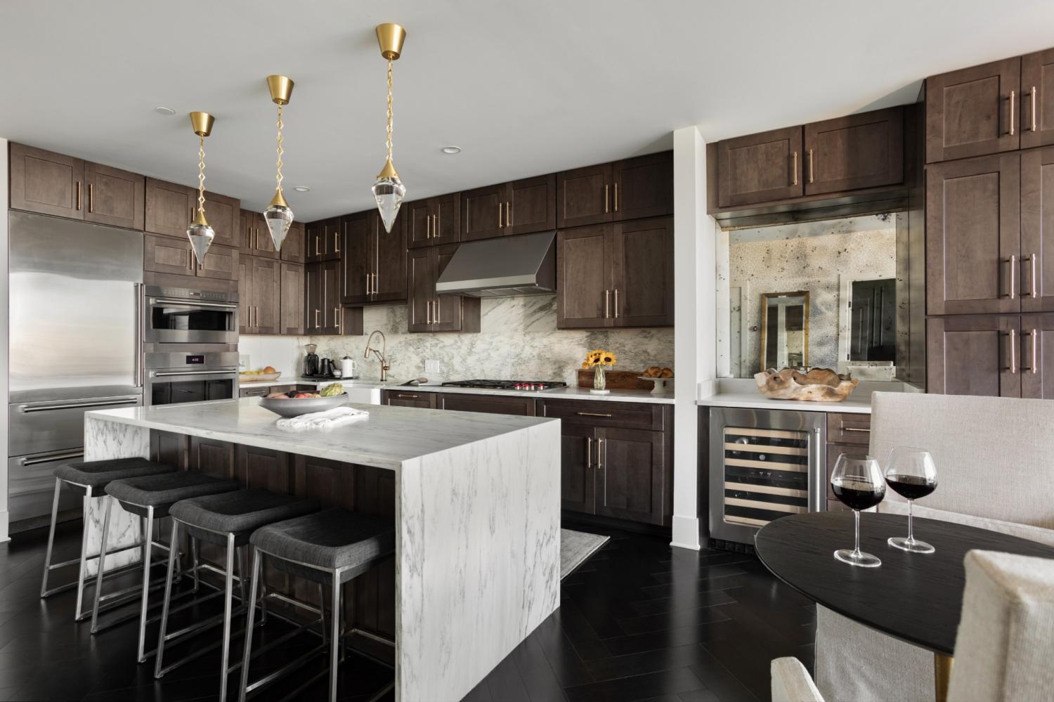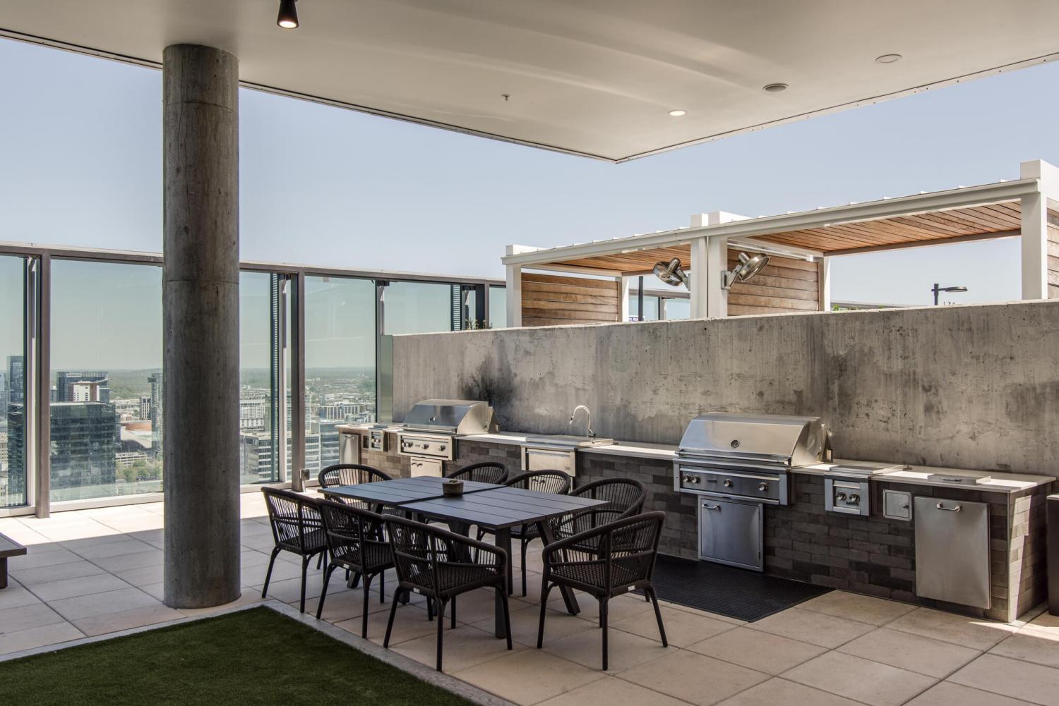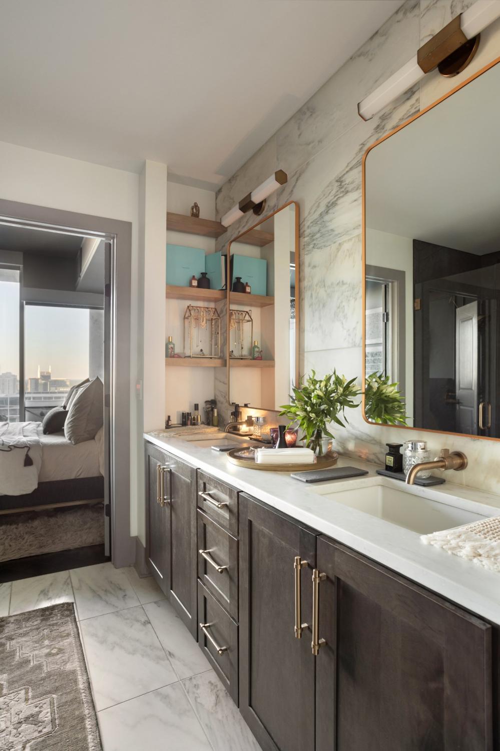This unit features rare uninterrupted views of the downtown skyline, a view available to one of 3 one-bedroom units at Broadwest, with this specific unit at the highest residential floor, just below the penthouses. Exclusive top-floor, private sky residence above the Conrad with sweeping views of Downtown Skyline and access to private owner hotel-level amenities as well as preferred access and discounts to Conrad Hotel services and amenities (see documents in media). Includes two parking spaces, a unique offering for one-bedroom residences and features the highly sought-after 05 floor plan, offering perfectly aligned downtown views, one of the largest kitchen islands at Broadwest, an expansive living area, and a flexible space off the kitchen, which offers space to customize ie: cedar lined wine storage, murphy bed and guest space, professionally designed sauna, etc. Residents enjoy exclusive access to the private 34th-floor owner amenities, including a state-of-the-art fitness center, exercise classes, steam room, sauna, and private dining room. Pet wash and pet run located on P2. This condo features high-end custom finishes throughout, including herringbone hardwood floors, marble countertops, and a chef’s kitchen with Wolf and Sub-Zero appliances. The primary suite includes an ensuite marble clad bath and custom California Closets. Designer wall coverings throughout, designer lighting, Culligan reverse osmosis water filtration and whole home filtration, UV-protective window tinting, electrical in office nook.