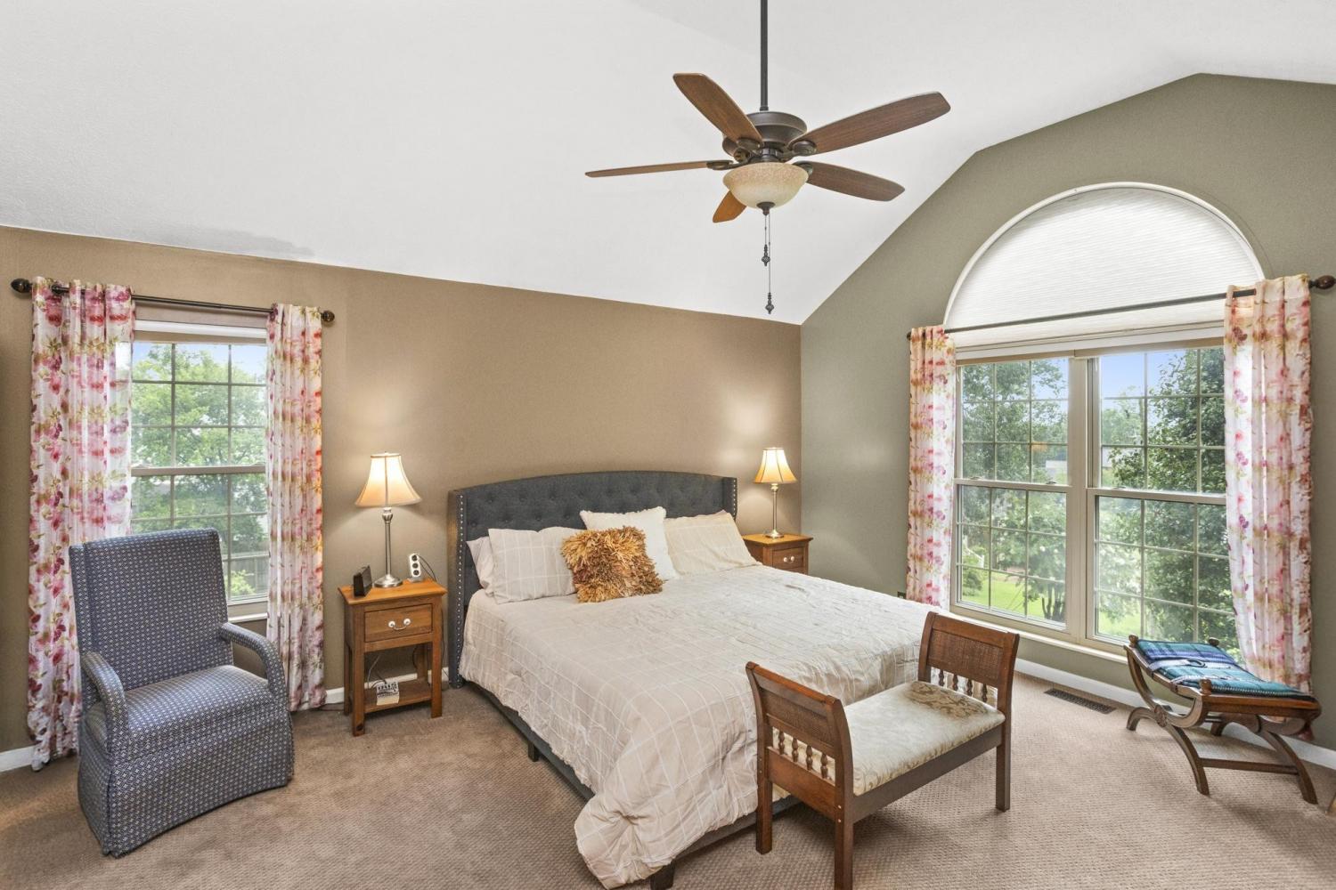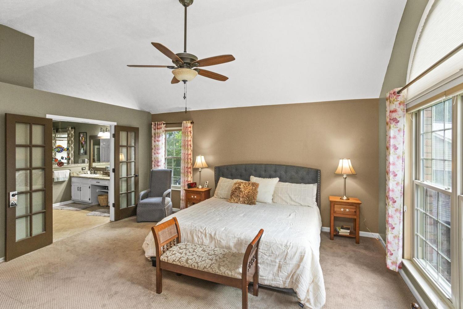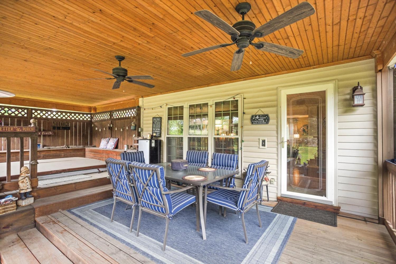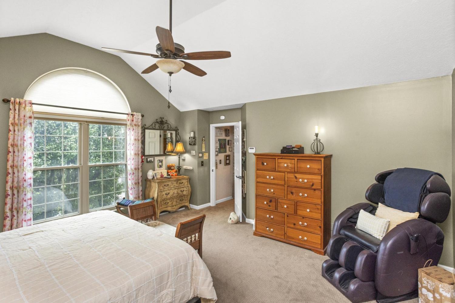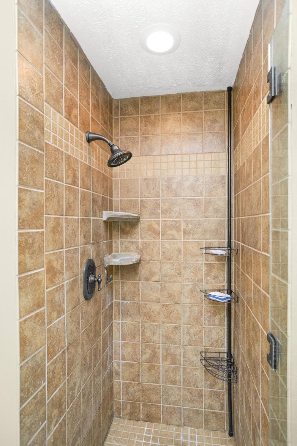 Private retreat located on a quiet cul-de-sac with an expansive covered deck featuring a stone fireplace, hot tub, and complete privacy. Interior highlights include a kitchen with granite countertops and stainless steel appliances, an oversized family room, and a spacious primary suite with walk-in closet, soaking tub, and heated tile floors. Oversized attached garage with additional storage plus two backyard sheds.
