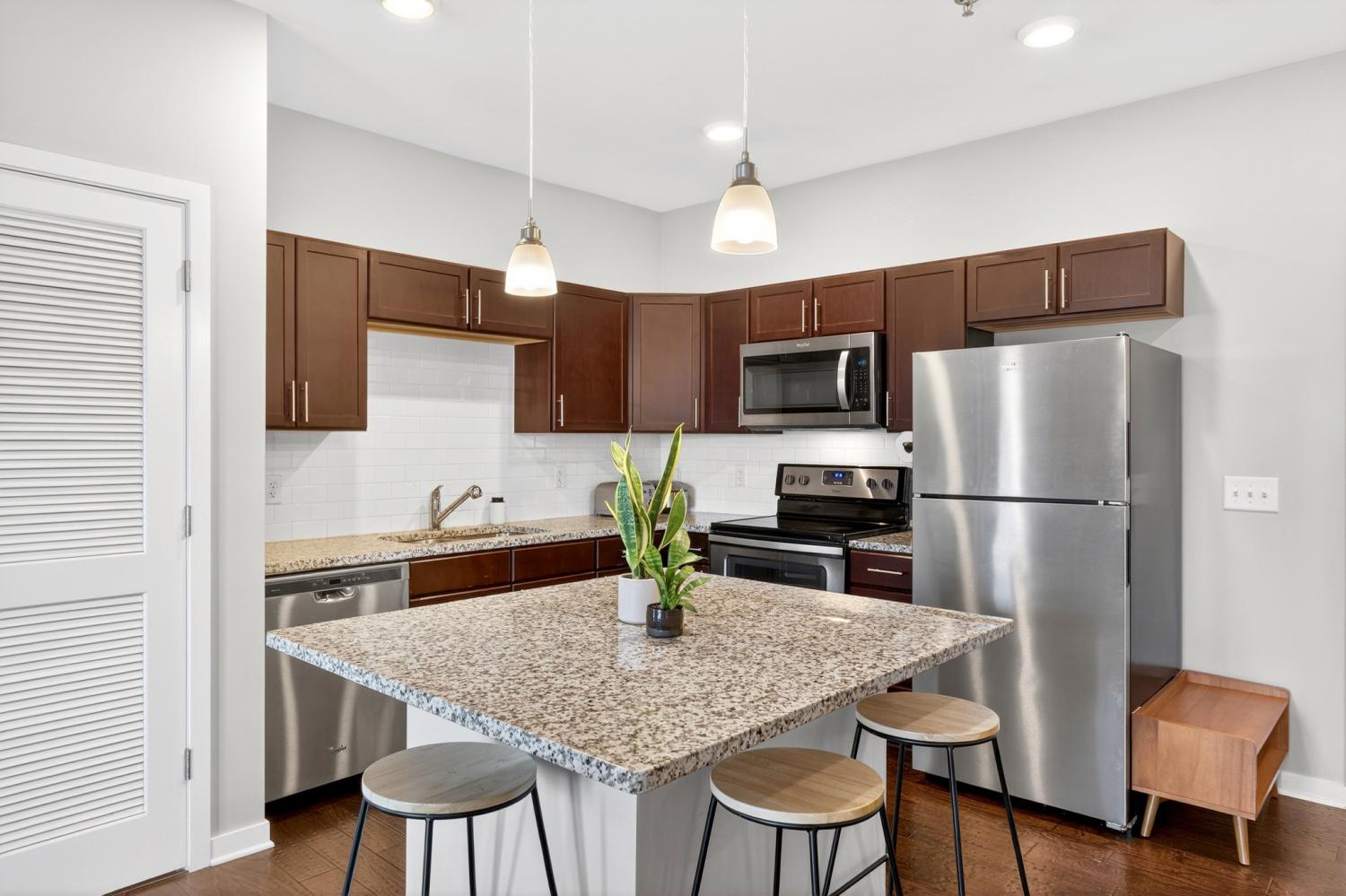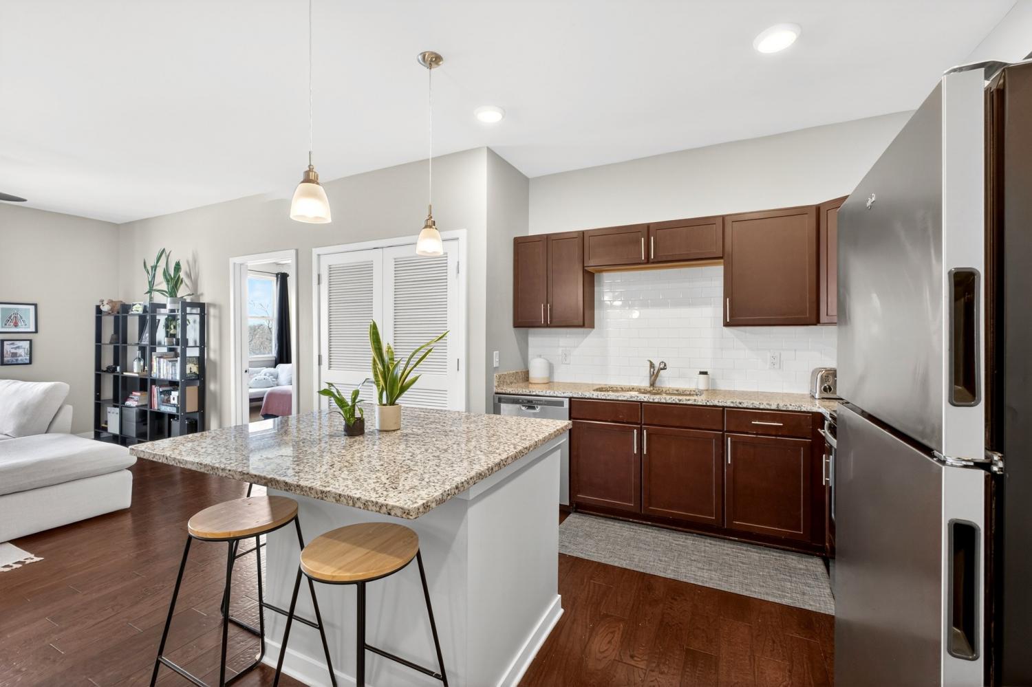 Live in the heart of it all at a FANTASTIC value! Literal steps from some of East Nashville's most treasured spots sits this pristine condo located in the well-managed Solo East development. This particular top floor, end unit is extra quiet given it only shares a wall w/ one neighbor while also being situated in an ideal location in the complex furthest from the main roads of Gallatin Pike & Litton Ave. The condo is positioned right beside the back stairwell to the building providing easy access to the gated parking lot, grill, & trash. The spacious, 2 bedroom, 2 bath layout wastes ZERO space w/ an open-concept living area filled w/ natural sunlight from the large, sliding glass doors out to a private balcony overlooking the gated parking area w/ tree-lined property buffer beyond. The kitchen is anchored by a large island w/ room to dine, granite countertops, stainless appliances, & ample cabinet storage. Speaking of storage, prepare yourself for the closets in this place! Walk-in closets in both bedrooms plus additional storage closets in the main living area ensure PLENTY of room for all your belongings. Add the generous bathrooms w/ tile flooring, & a primary suite w/ double vanities to the list of perks. All kitchen appliances AND the washer & dryer remain. The community includes secure entrance w/ guest call box, Amazon hub, pet waste stations, gated parking (2 passes for this unit), EV charging area, guest parking spaces, communal grill, & water. Outdoor recreation is mere minutes away w/ quick access to Cornelia Fort Airpark & Shelby Bottoms Greenway. A great opportunity to enjoy a relaxed, connected lifestyle in one of East Nashville’s most convenient condo communities!