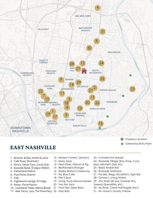 From Downtown Nashville & I 65 follow Gallatin Pike into East Nashville, just past the YMCA, take a right on Litton Avenue. The development will be on the right. The building is on the left when you turn in. Free Guest Parking.