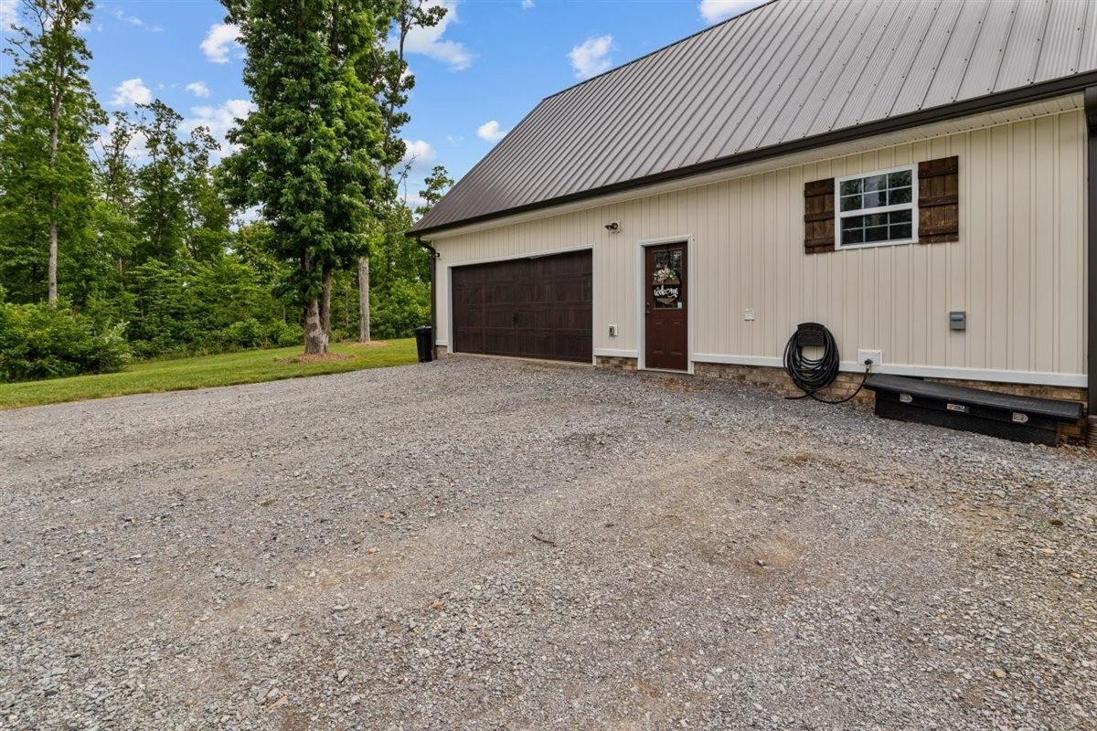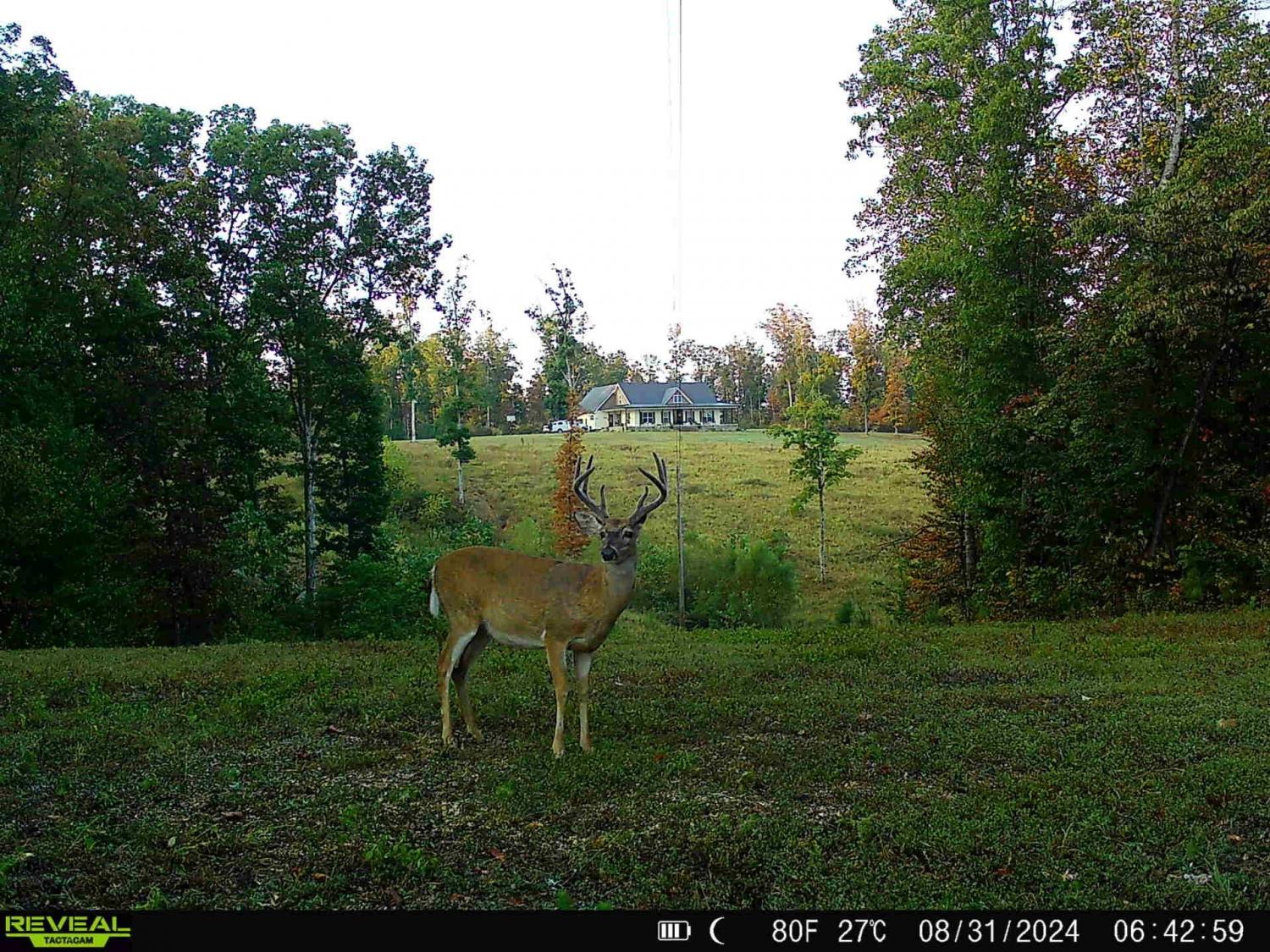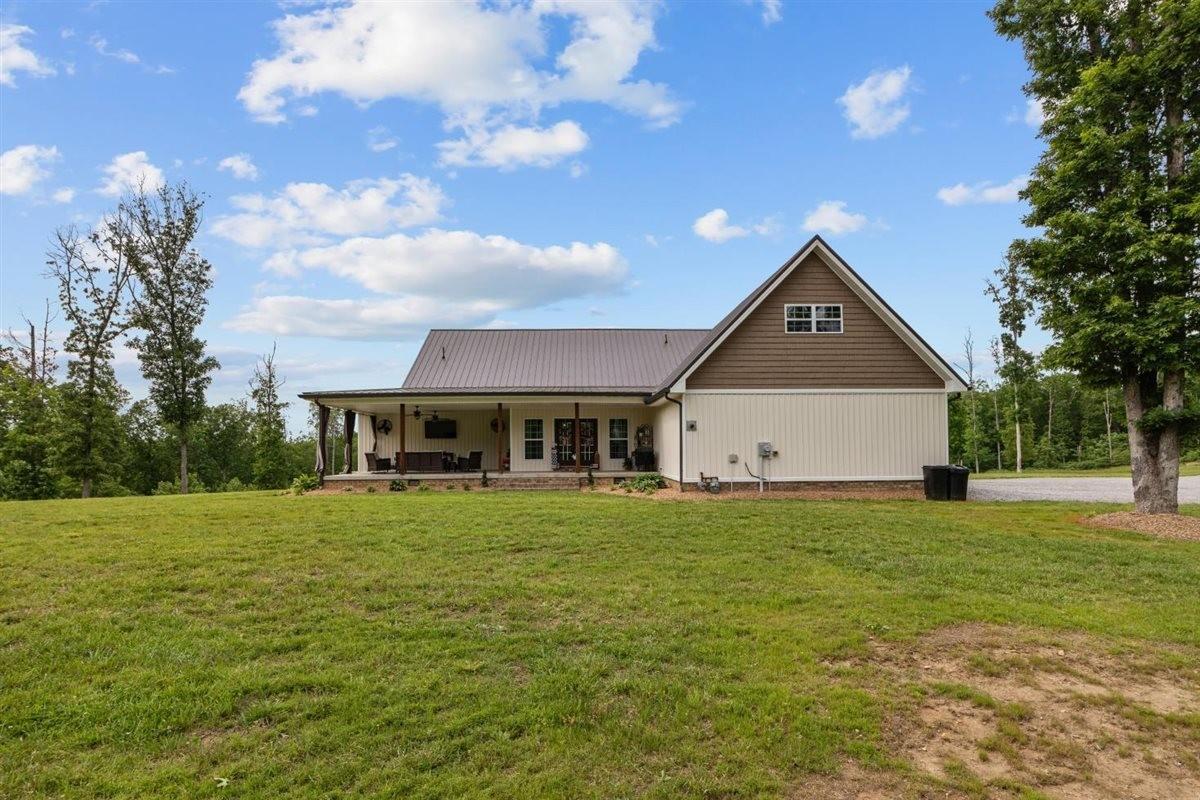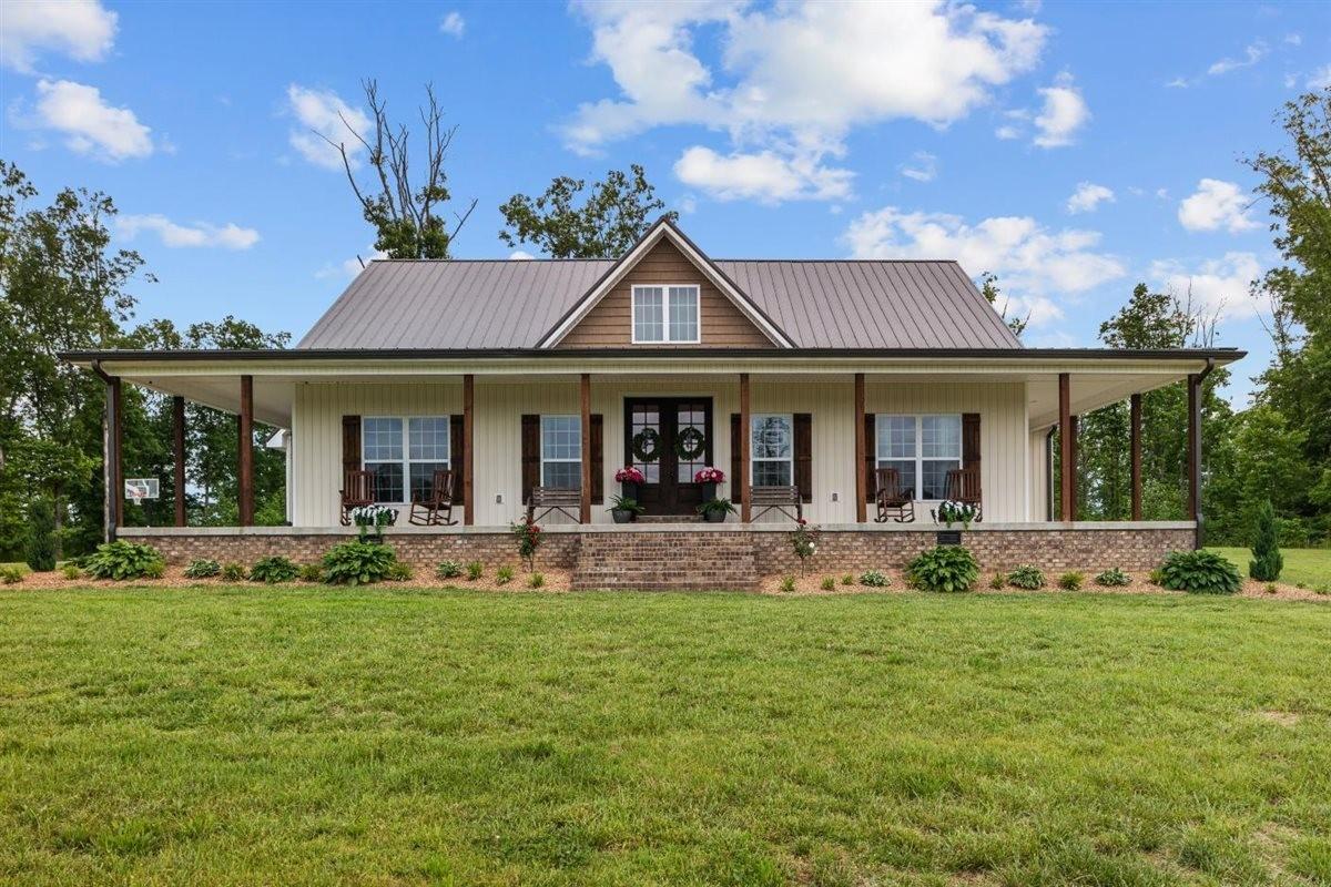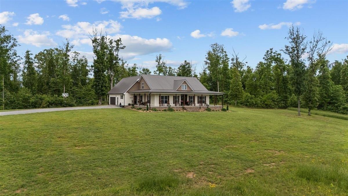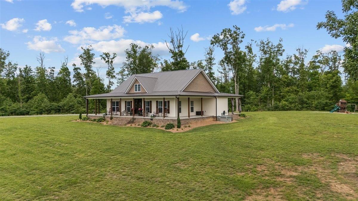 This stunning custom home is ideally situated as the centerpiece of 103.99 acres and is priced to sell. Inside, you will find a spacious 3,038 sq. ft. layout featuring 3 BD and 3.5 BA. Notably, the upper level includes two large rooms—one currently used as an additional bedroom which includes a full bath and the other as a playroom—with an office and closet area in between the two. The home boasts custom cabinets, granite countertops, and a walk-in pantry. The living room is enhanced by a vaulted ceiling and a gas fireplace, while tile and luxury vinyl plank flooring are featured throughout. There’s also a two-car attached garage and spray foam insulation for energy efficiency. With over 1,900 sq. ft. of covered porches, the front porch offers picturesque views of the front pasture, while the back porch is perfectly designed for entertaining guests. The privacy this property provides is unparalleled, and the house is only five years old! The land is comprised of approximately 90 acres of timber, with the remainder consisting of open fields. Numerous trails throughout the property allow easy access to all areas. The property has been well-managed for wildlife, boasting an abundance of deer and turkey, making it an excellent hunting oasis. Several food plots and deer stands are situated on the property, and the rolling timbered ridges descend into a large flat area featuring open food plots and a year-round spring creek. There is ample room to add a barn or shop, making this property ideal for agricultural use. It offers limitless potential for personalization. Conveniently located just 19 miles from Kentucky Lake, the property is also 1 hour and 15 minutes West of Nashville, 20 minutes West of Dickson, 1 hour South of Clarksville, and 1.5 hours East of Jackson. The property comes with well water, gas, electricity, and fiber internet. Property is enrolled in Greenbelt Program and has a VA assumable loan w/ low interest rate. Video of Property linked below.