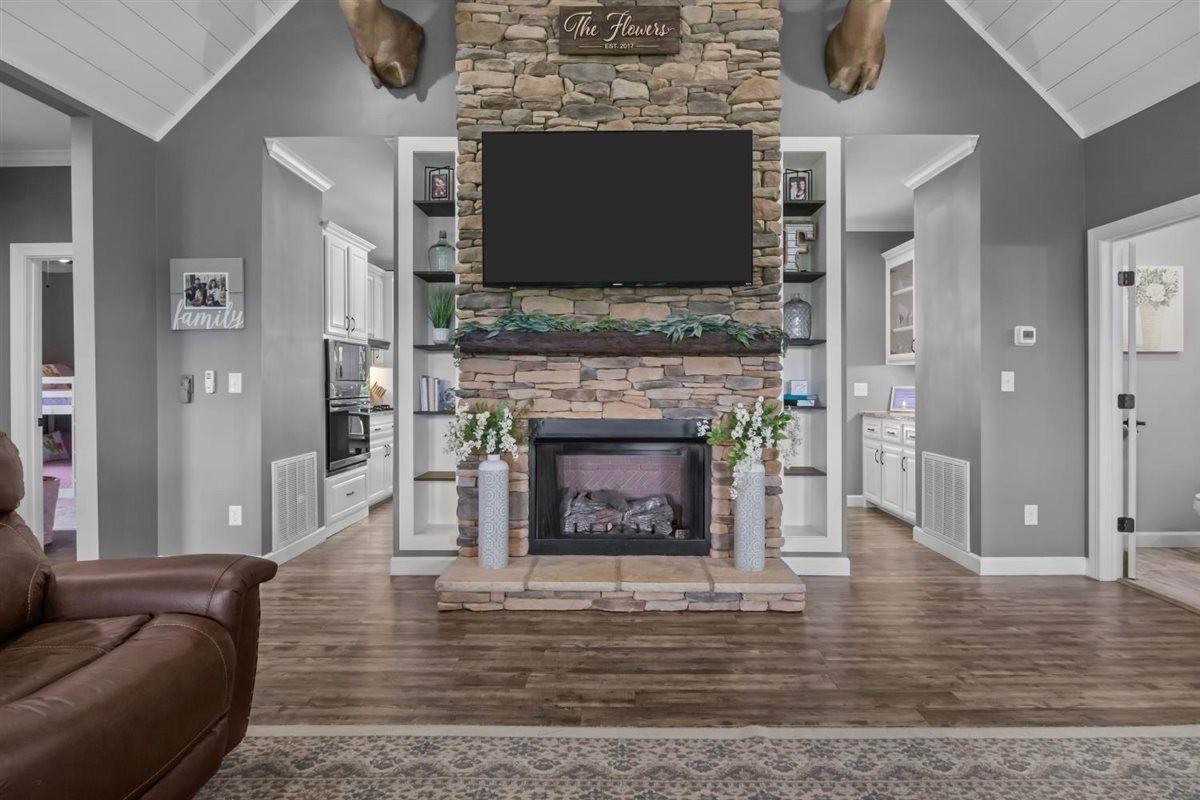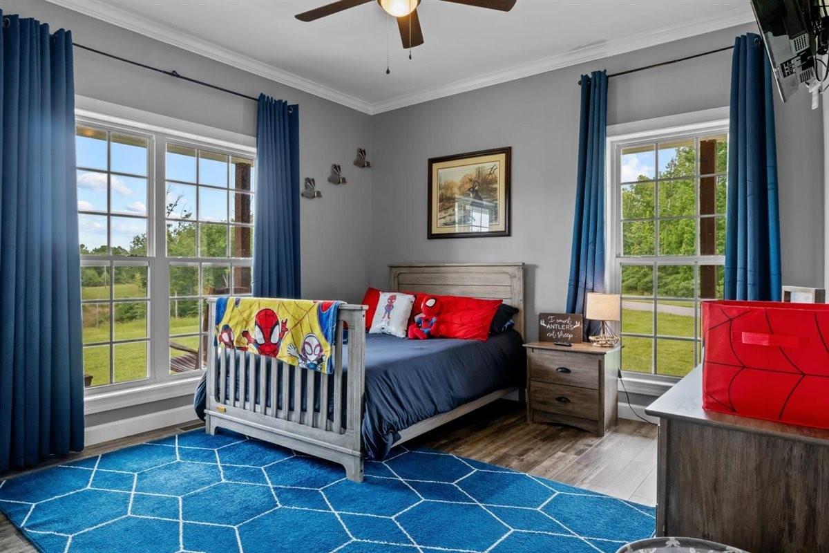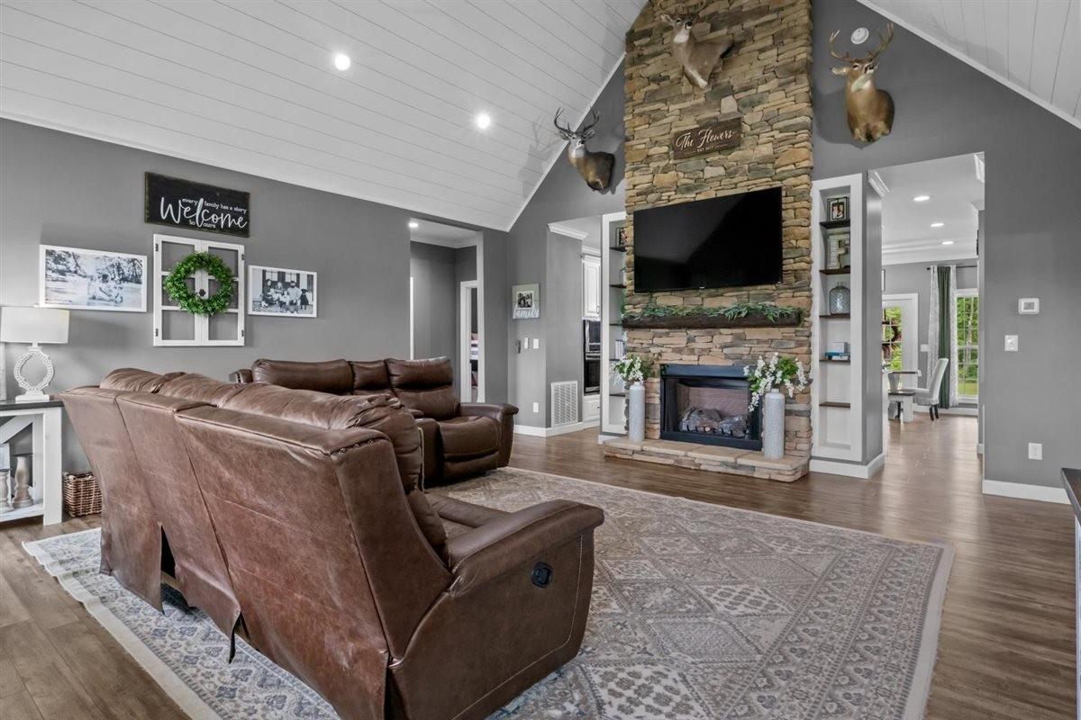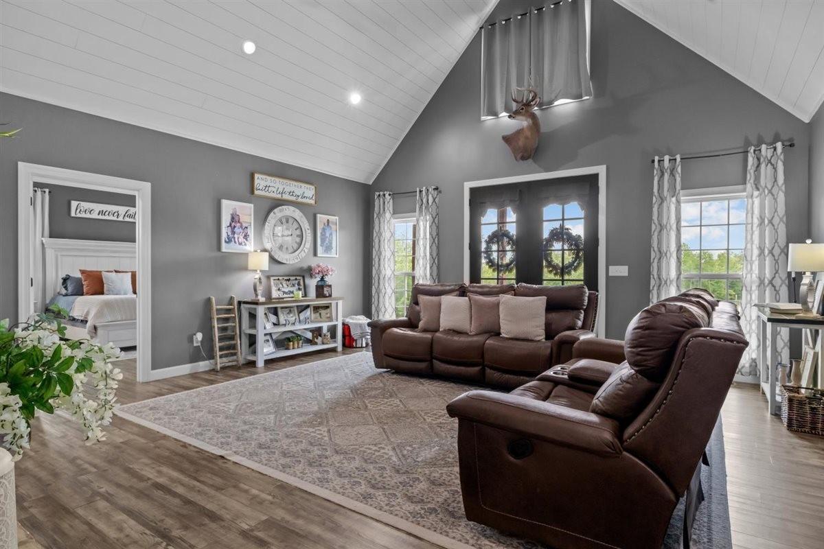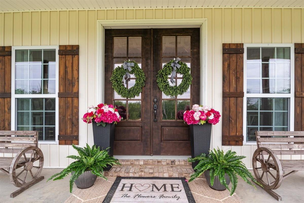This stunning custom home is ideally situated as the centerpiece of 103.99 acres and is priced to sell. Inside, you will find a spacious 3,038 sq. ft. layout featuring 3 BD and 3.5 BA. Notably, the upper level includes two large rooms—one currently used as an additional bedroom which includes a full bath and the other as a playroom—with an office and closet area in between the two. The home boasts custom cabinets, granite countertops, and a walk-in pantry. The living room is enhanced by a vaulted ceiling and a gas fireplace, while tile and luxury vinyl plank flooring are featured throughout. There’s also a two-car attached garage and spray foam insulation for energy efficiency. With over 1,900 sq. ft. of covered porches, the front porch offers picturesque views of the front pasture, while the back porch is perfectly designed for entertaining guests. The privacy this property provides is unparalleled, and the house is only five years old! The land is comprised of approximately 90 acres of timber, with the remainder consisting of open fields. Numerous trails throughout the property allow easy access to all areas. The property has been well-managed for wildlife, boasting an abundance of deer and turkey, making it an excellent hunting oasis. Several food plots and deer stands are situated on the property, and the rolling timbered ridges descend into a large flat area featuring open food plots and a year-round spring creek. There is ample room to add a barn or shop, making this property ideal for agricultural use. It offers limitless potential for personalization. Conveniently located just 19 miles from Kentucky Lake, the property is also 1 hour and 15 minutes West of Nashville, 20 minutes West of Dickson, 1 hour South of Clarksville, and 1.5 hours East of Jackson. The property comes with well water, gas, electricity, and fiber internet. Property is enrolled in Greenbelt Program and has a VA assumable loan w/ low interest rate. Video of Property linked below.