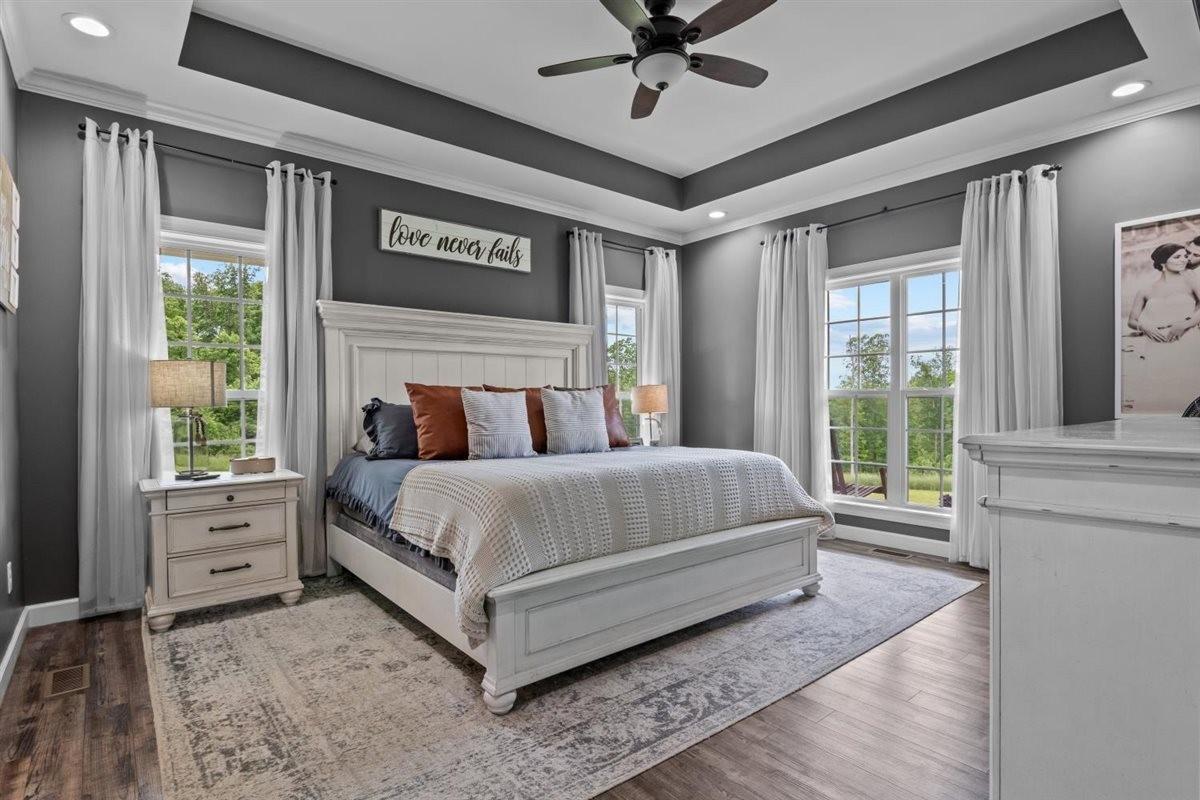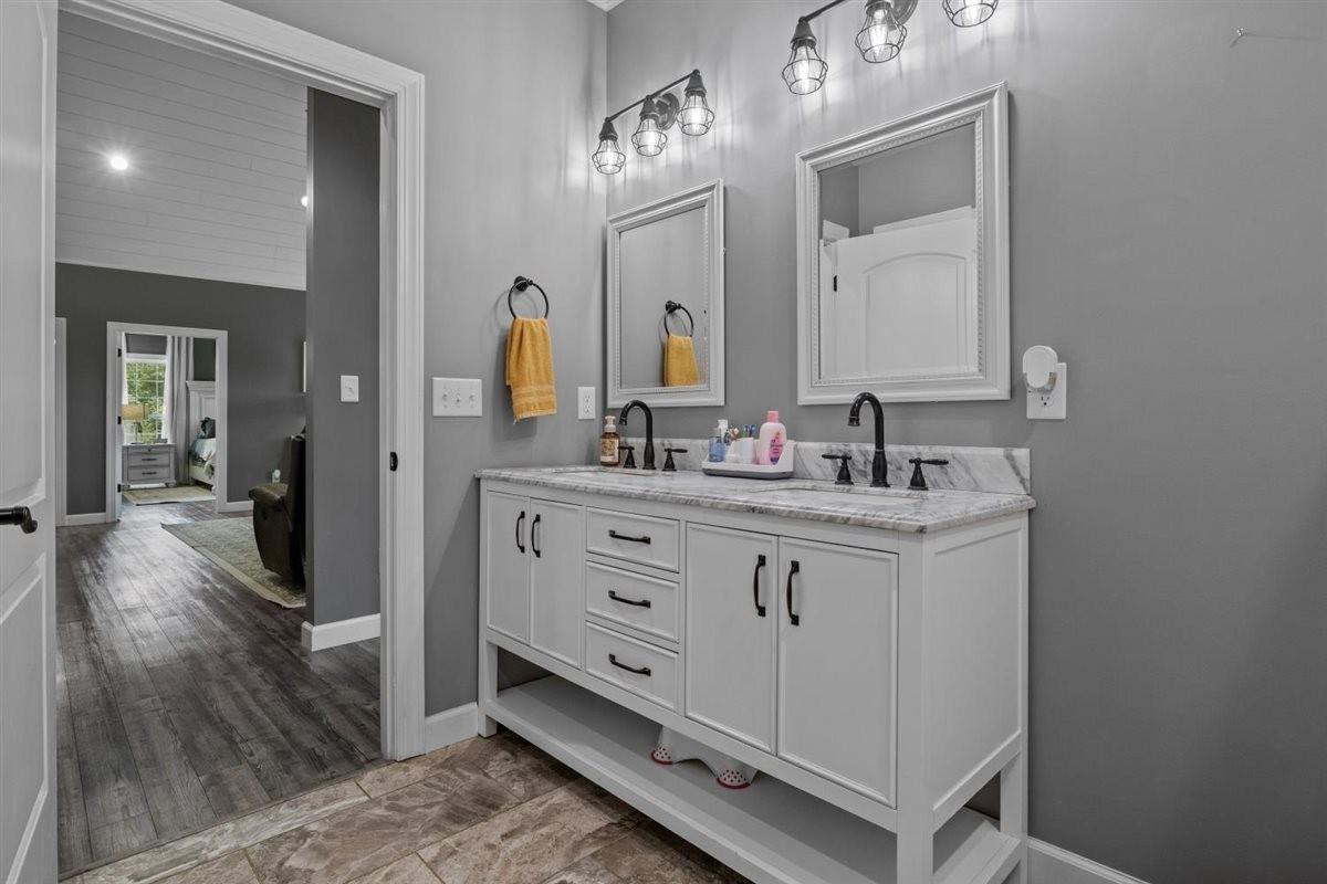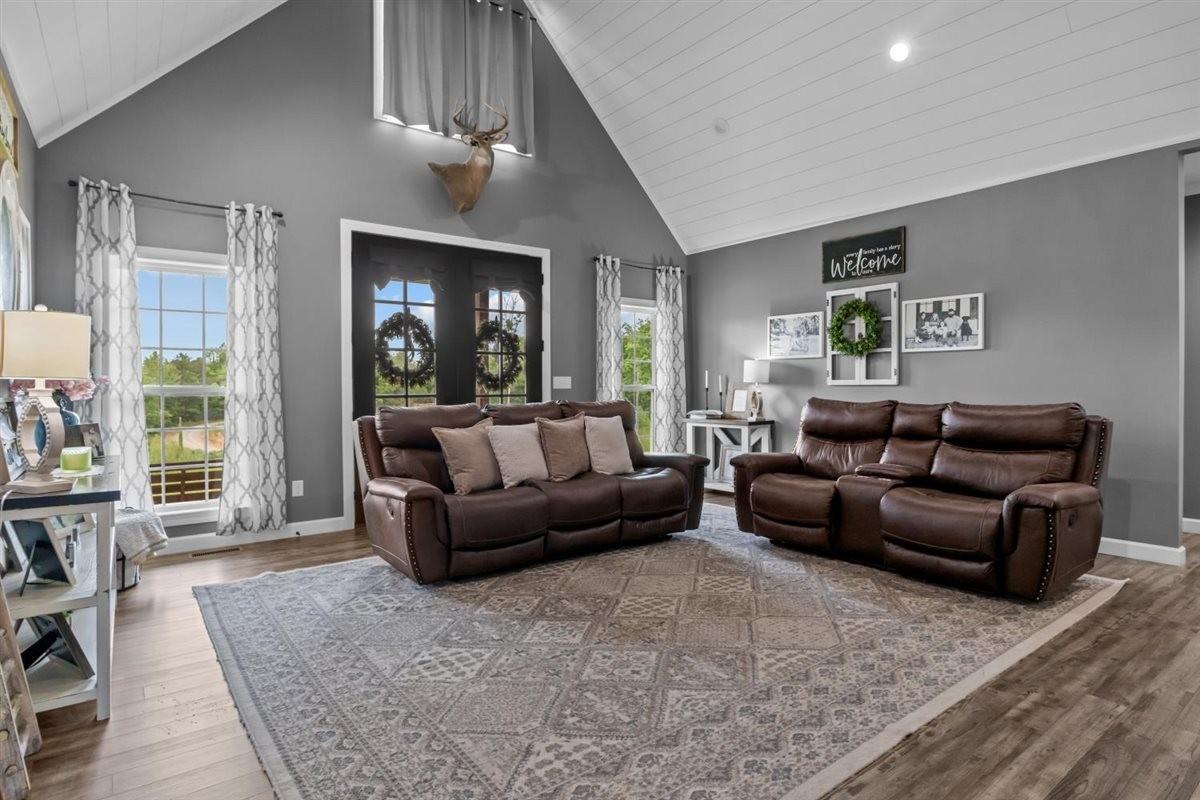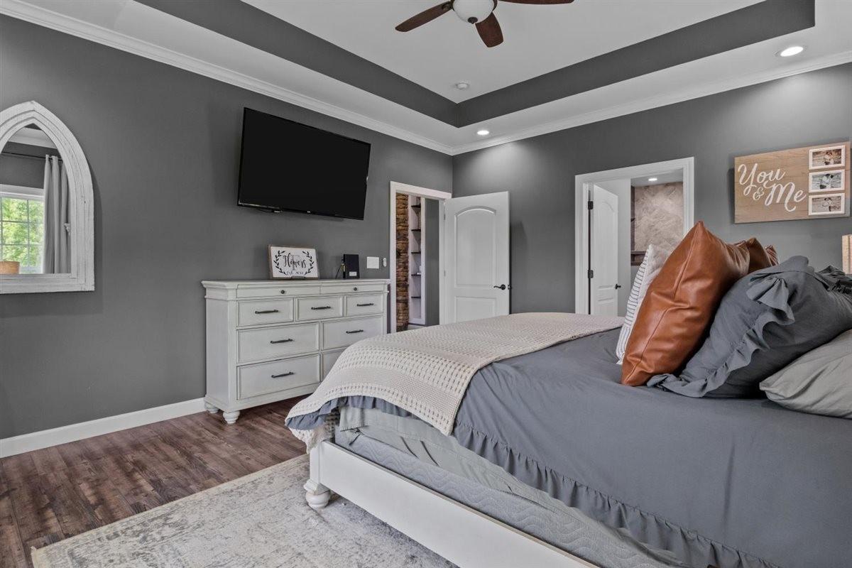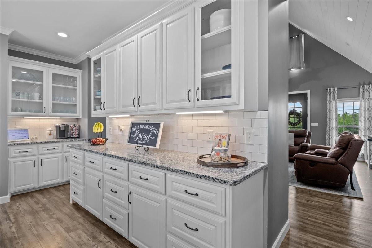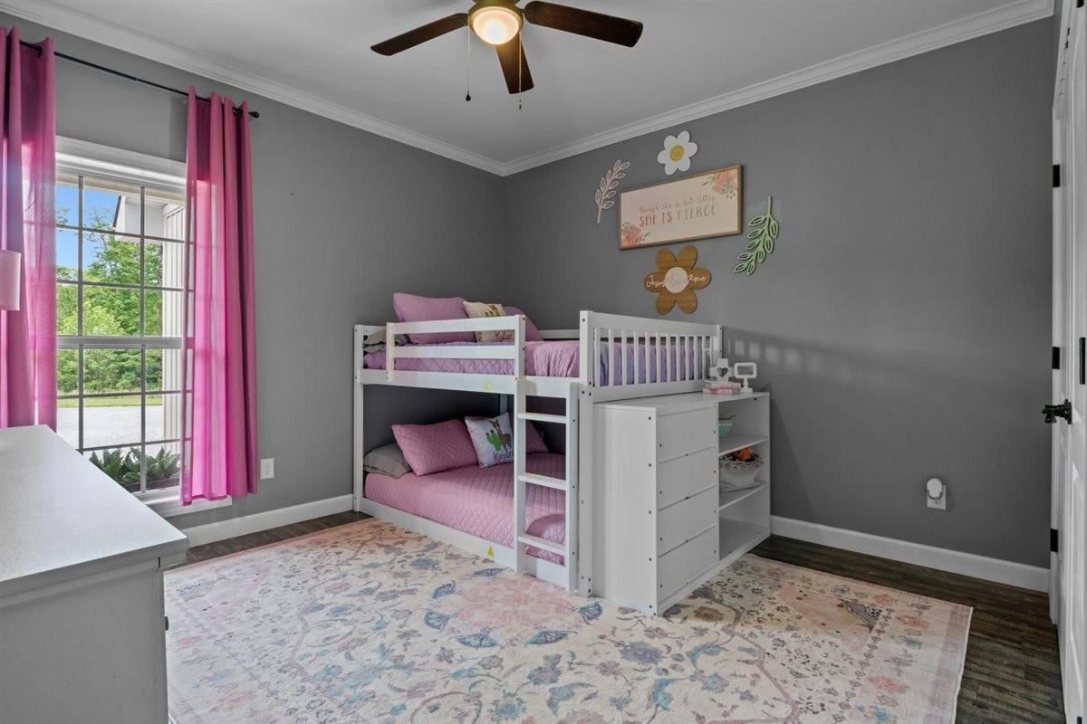 This stunning custom home is ideally situated as the centerpiece of 103.99 acres and is priced to sell. Inside, you will find a spacious 3,038 sq. ft. layout featuring 3 BD and 3.5 BA. Notably, the upper level includes two large rooms—one currently used as an additional bedroom which includes a full bath and the other as a playroom—with an office and closet area in between the two. The home boasts custom cabinets, granite countertops, and a walk-in pantry. The living room is enhanced by a vaulted ceiling and a gas fireplace, while tile and luxury vinyl plank flooring are featured throughout. There’s also a two-car attached garage and spray foam insulation for energy efficiency. With over 1,900 sq. ft. of covered porches, the front porch offers picturesque views of the front pasture, while the back porch is perfectly designed for entertaining guests. The privacy this property provides is unparalleled, and the house is only five years old! The land is comprised of approximately 90 acres of timber, with the remainder consisting of open fields. Numerous trails throughout the property allow easy access to all areas. The property has been well-managed for wildlife, boasting an abundance of deer and turkey, making it an excellent hunting oasis. Several food plots and deer stands are situated on the property, and the rolling timbered ridges descend into a large flat area featuring open food plots and a year-round spring creek. There is ample room to add a barn or shop, making this property ideal for agricultural use. It offers limitless potential for personalization. Conveniently located just 19 miles from Kentucky Lake, the property is also 1 hour and 15 minutes West of Nashville, 20 minutes West of Dickson, 1 hour South of Clarksville, and 1.5 hours East of Jackson. The property comes with well water, gas, electricity, and fiber internet. Property is enrolled in Greenbelt Program and has a VA assumable loan w/ low interest rate. Video of Property linked below.