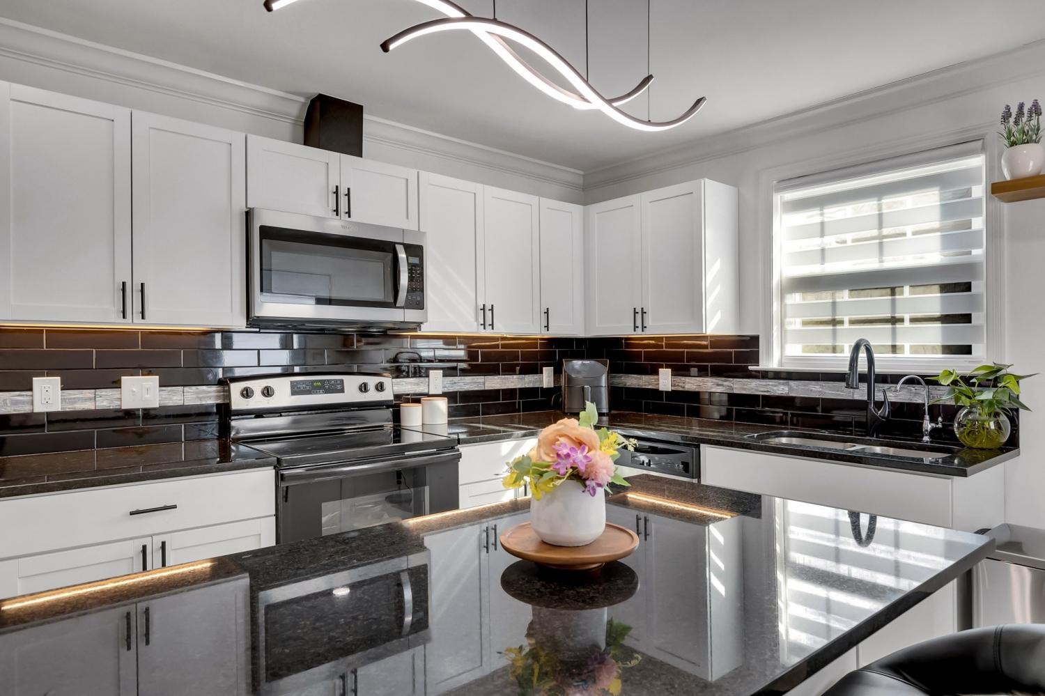 Welcome to this beautifully renovated, versatile property situated on a spacious, fully fenced corner lot. Offering exceptional value and flexibility, the main residence features 2 bedrooms and 2 modern bathrooms with an open, inviting layout and stylish finishes throughout. Extensive updates provide true peace of mind, including a new roof and fence installed in 2023, fully renovated bathrooms, flooring, kitchen, and attached apartment completed in 2024, and a newly updated laundry area in 2025—making this home truly move-in ready. Attached to the home is a private 1-bedroom, 1-bathroom apartment, ideal for rental income to offset your mortgage or for multi-generational living, guests, or a home office. The expansive fenced corner lot offers added privacy, strong curb appeal, and ample outdoor space—perfect for entertaining, gardening, or future enhancements. Whether you’re an owner-occupant seeking supplemental income or an investor looking for a smart opportunity, this property delivers modern living with built-in income potential.
