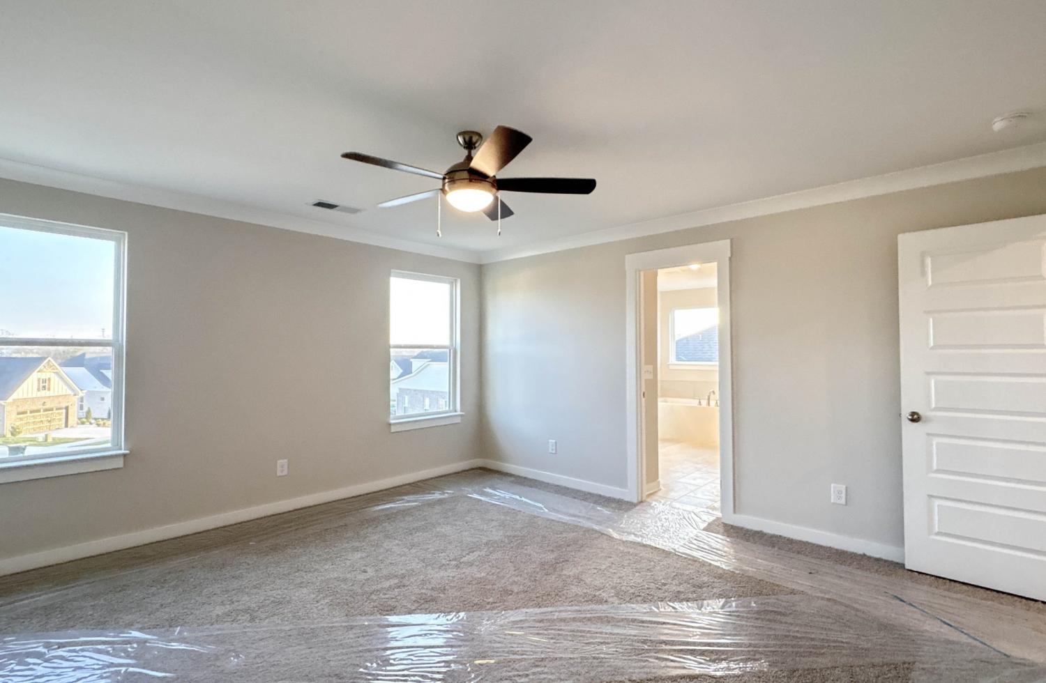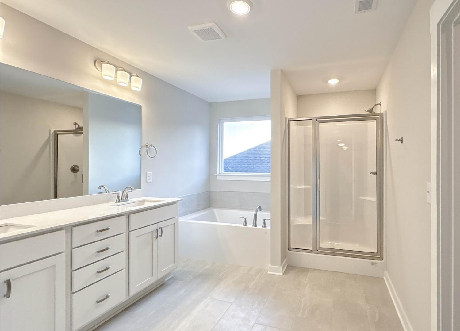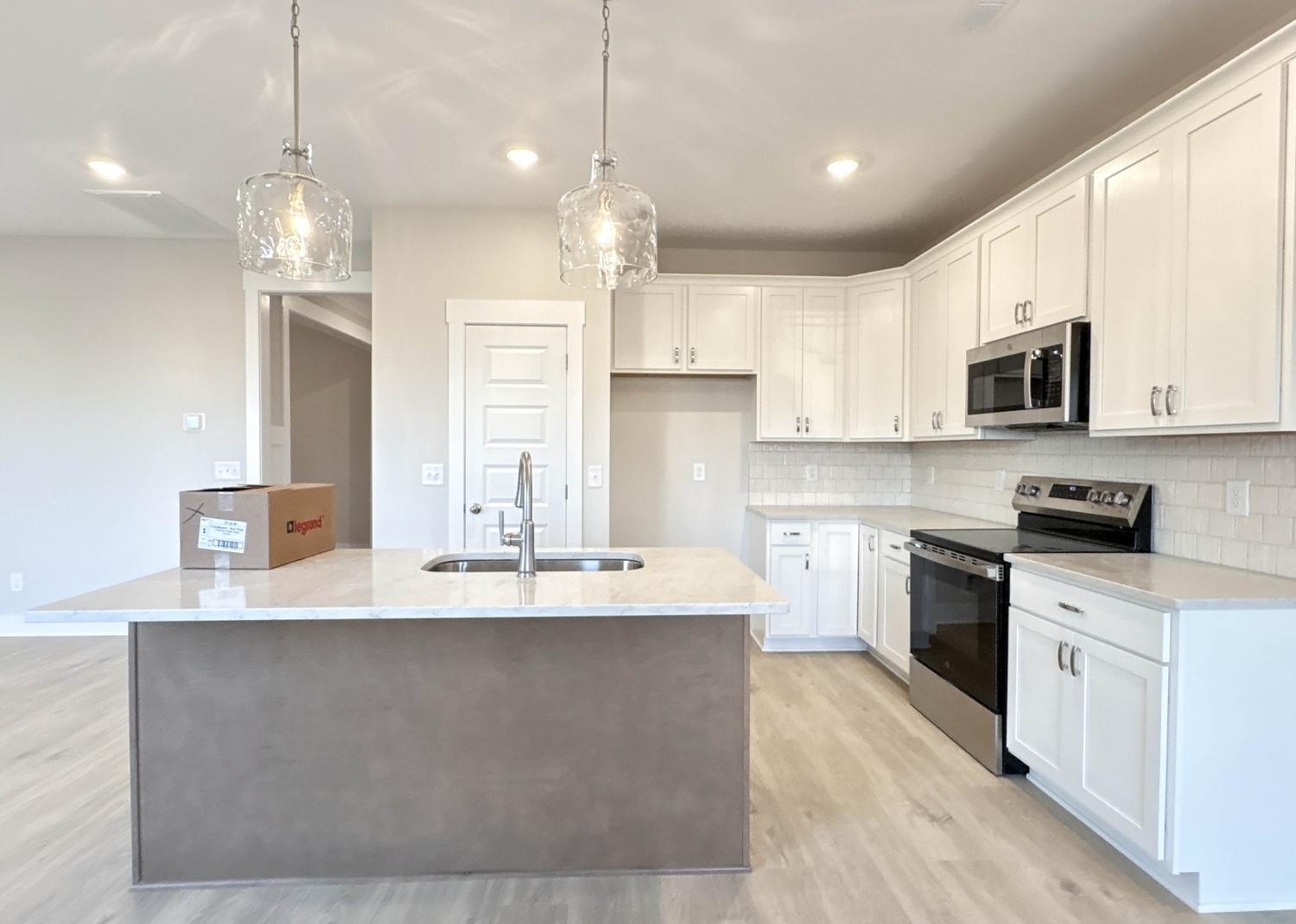 Modern style meets comfort in this 3-bed, 2.5-bath, 2,167 sq ft all-brick home in Westfield Ph 2A. The open-concept main level includes a spacious living room with a gas fireplace and a kitchen featuring quartz countertops, upgraded cabinetry, a designer tile backsplash, and stainless appliances. Durable laminate flooring enhances the main living spaces, while plush carpet adds comfort upstairs and tile accents each bath. The primary suite offers a soaking tub, tiled shower, and dual vanities, while two additional bedrooms provide flexibility. A convenient main-level half bath, neutral interior paint, upgraded finishes, and a 2-car front-entry garage complete the design. Westfield offers a community pool and easy access to Station Camp schools, shopping, and major commuter routes. Ask about our builder incentives!