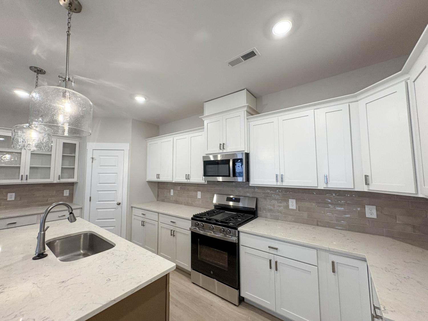 Enjoy one-level living in this 3-bed, 3-bath, 1,896 sq ft all-brick home in The Paddock at Kennesaw Farms. The kitchen features quartz countertops, upgraded cabinetry, a designer tile backsplash, and stainless appliances, opening to the dining and living areas. Durable laminate flooring enhances the main living spaces, while tile accents the baths and plush carpet adds comfort to bedrooms. The primary suite offers a tiled shower and dual vanities, while two additional bedrooms each include their own full bath, providing comfort and privacy. Neutral designer paint, upgraded finishes, and a 2-car front-entry garage complete the design. The Paddock community provides green space, walkability, and convenience to Station Camp schools, shopping, and major commuter routes. HOA includes lawn maintenance and irrigation for easy living. Ask about our builder incentives!