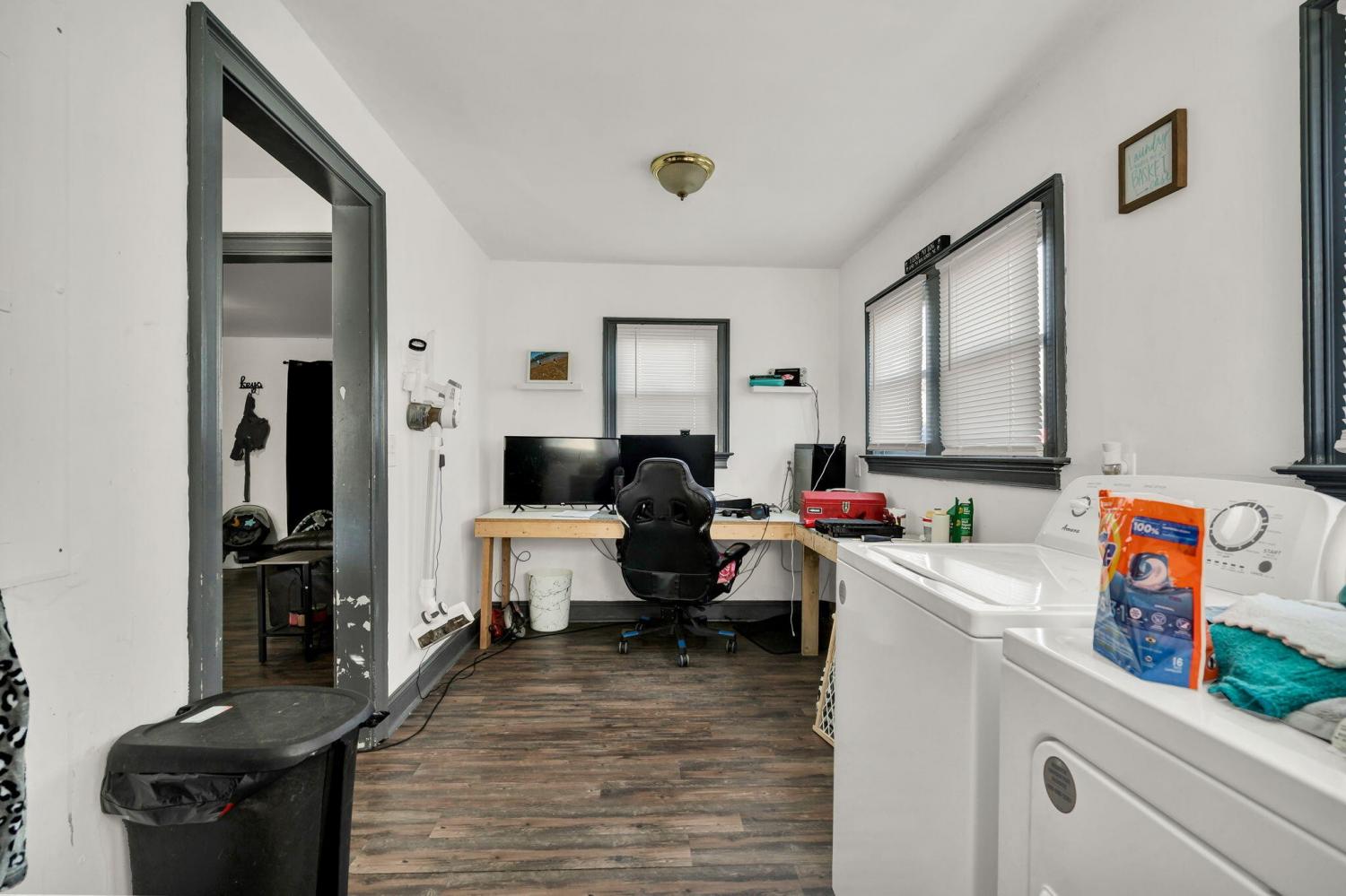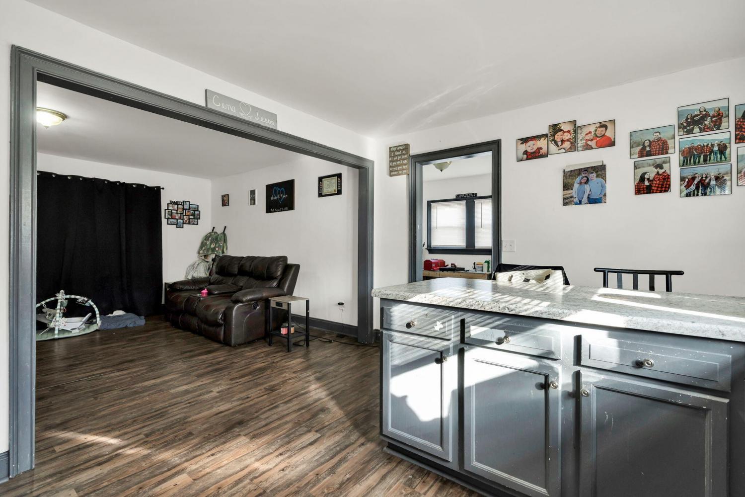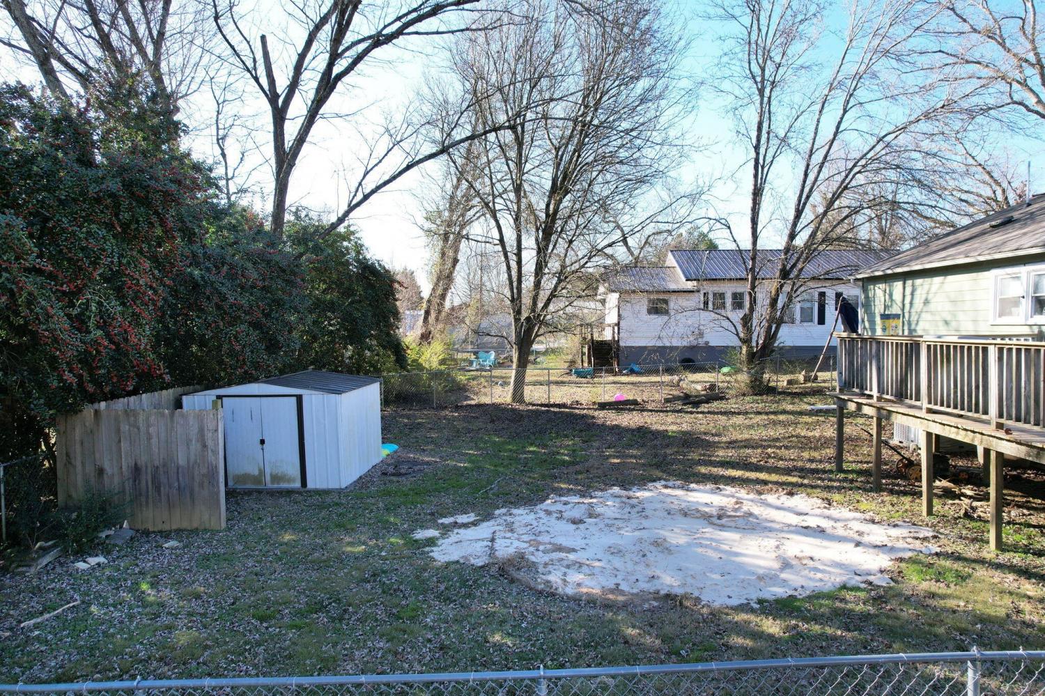This inviting single level home offers 933 square feet of efficiently designed living space with two bedrooms and one full bathroom. The layout is thoughtfully arranged to maximize functionality while maintaining a comfortable and welcoming atmosphere. The eat in kitchen serves as the heart of the home, providing ample space for daily living and casual gatherings. A center island with a breakfast bar adds valuable prep space and additional seating, enhancing both convenience and usability. A spacious utility and mud room offers excellent storage and organization, helping keep the main living areas clutter free. Outdoor features add to the home's appeal and usability. A classic rocking chair front porch creates a charming place to relax and enjoy the surroundings. The fully fenced backyard offers privacy and flexibility, making it ideal for entertaining, gardening, or everyday outdoor enjoyment. A storage building provides convenient space for lawn equipment, tools, and seasonal items. Recent updates contribute to the home's move in ready condition. A newly poured concrete driveway improves accessibility and curb appeal, while a recently built deck expands the outdoor living space. A new screened door enhances airflow and comfort during milder seasons. This well maintained property blends practical design with comfortable living and represents an excellent opportunity in today's market. Schedule your private showing today to experience the home's layout, updates, and outdoor spaces firsthand.