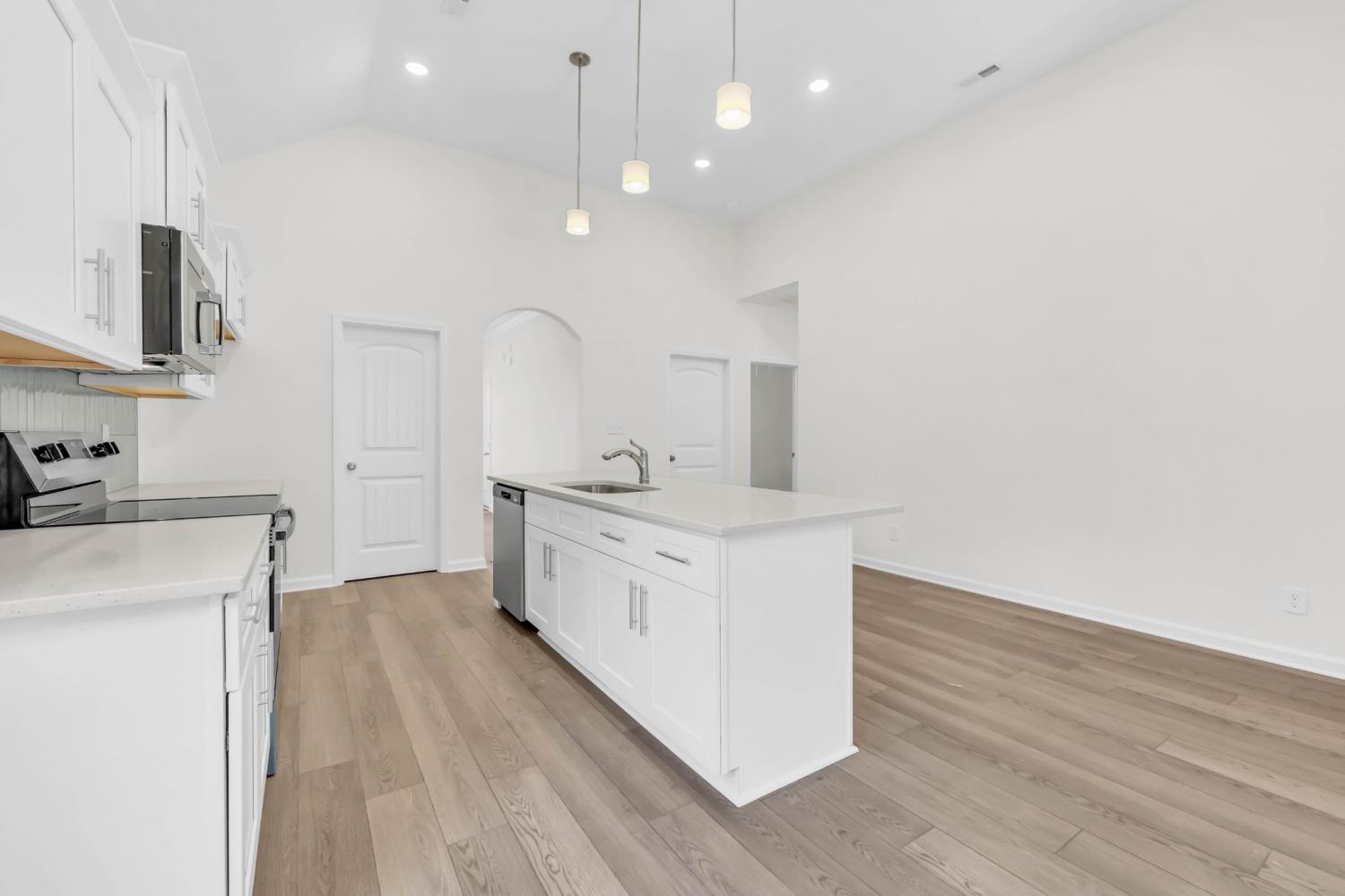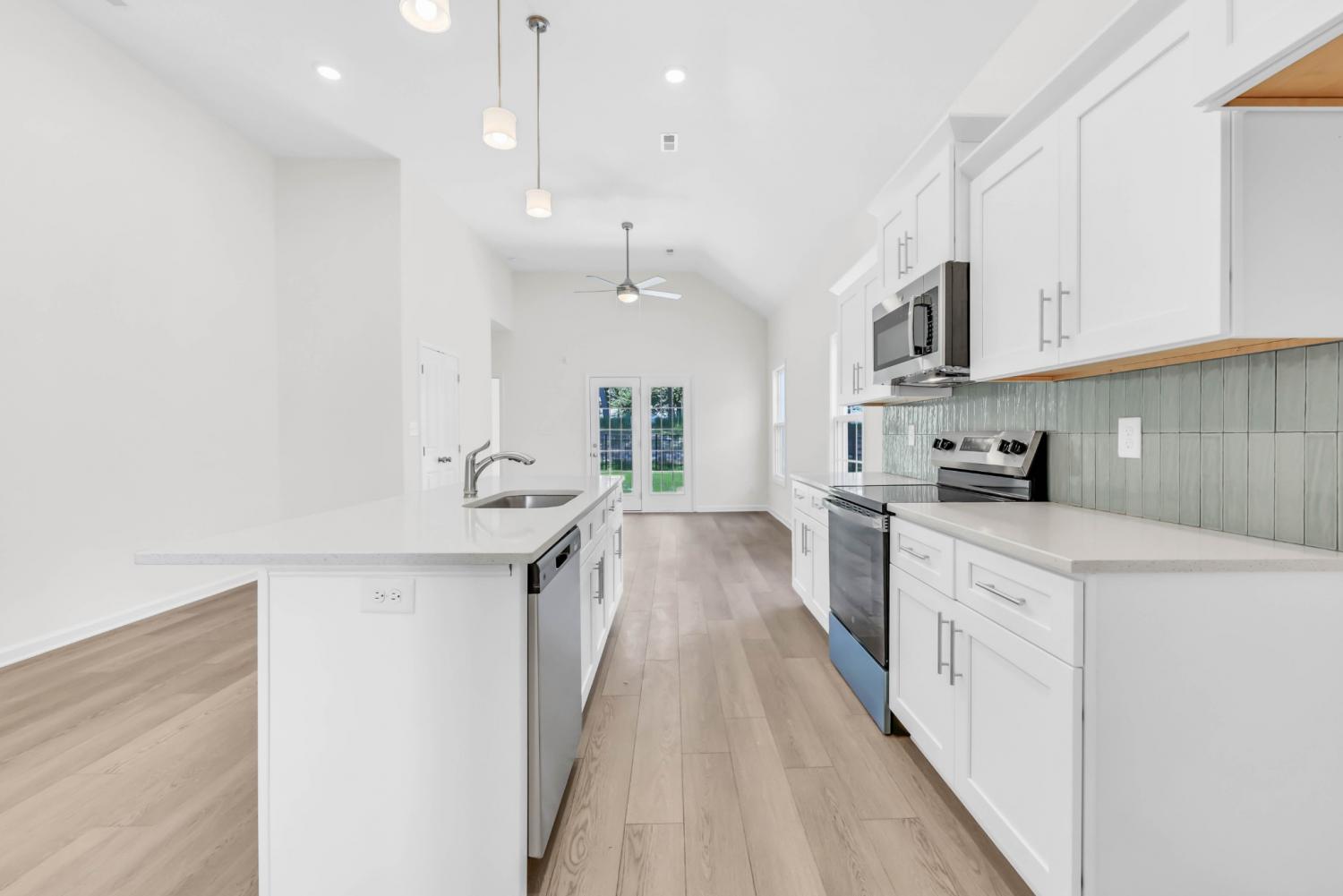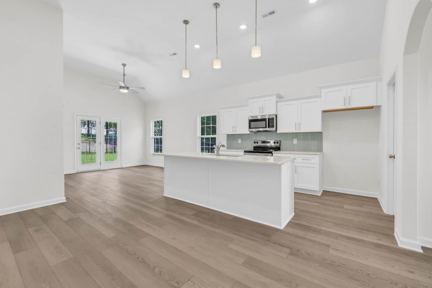 UPGRADES include Smart Home Technology, ceiling fans, custom tiled shower and crown molding and includes a one year builder's warranty. Welcome to the Juniper plan that proves you don't have to sacrifice elegance and granduer for a smaller footprint. Enter through the spacious foyer with 11' ceilings and into the kitchen/dining area featuring a kitchen island and walk-in pantry. The vaulted 12' ceiling in the living room lends an airy openness to the space and the living room opens onto the covered back patio. The grand primary bedroom features a tray ceiling and the primary bathroom offers a large walk-in closet, dual vanities and custom tile shower.