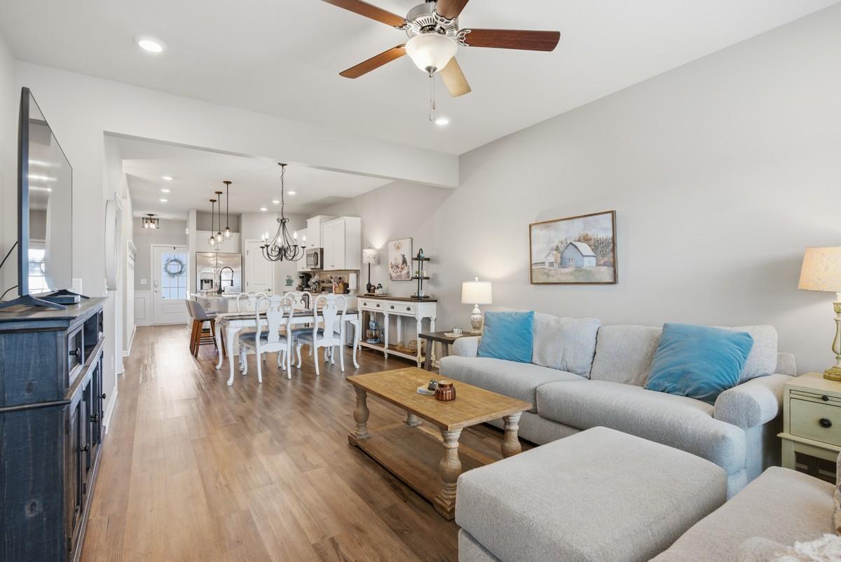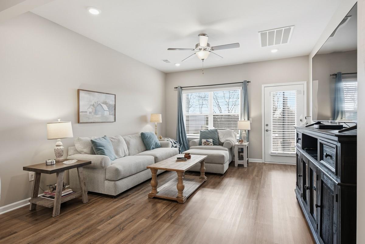PRIME LOCATION with quick access to Gallatin, Hendersonville, and Old Hickory Lake. This well-maintained Foxland Crossing 3-bedroom, 2.5 bath townhome with spacious bonus room, private back yard, 1-car garage with built in overhead storage delivers low-maintenance living and everyday convenience. Bright open entrance with added wainscoting accent wall leading to kitchen. Minutes from shopping, dining, and Old Hickory Lake with nearby marinas. 30mins to Nashville Airport and Downtown. This home offers low-maintenance living with exterior care provided by the HOA. The open-concept main level features durable LVP flooring throughout the main living areas, a spacious kitchen with granite countertops, ample pantry space, and seamless flow into the living and dining areas. The main-level bedroom with full bath and large garden tub is a master suite! Upstairs includes a versatile bonus room and spacious walk in storage. Wired for surround sound in bonus room. Large bathroom with a double vanity and 2 guest bedrooms both with spacious closets. Private large back yard with patio that backs to a mature tree line. Convenient access to grocery stores, restaurants, medical offices, and daily necessities. Dog Park and walking trail with pond within walking distance. Extra temporary guest parking spots right by house.