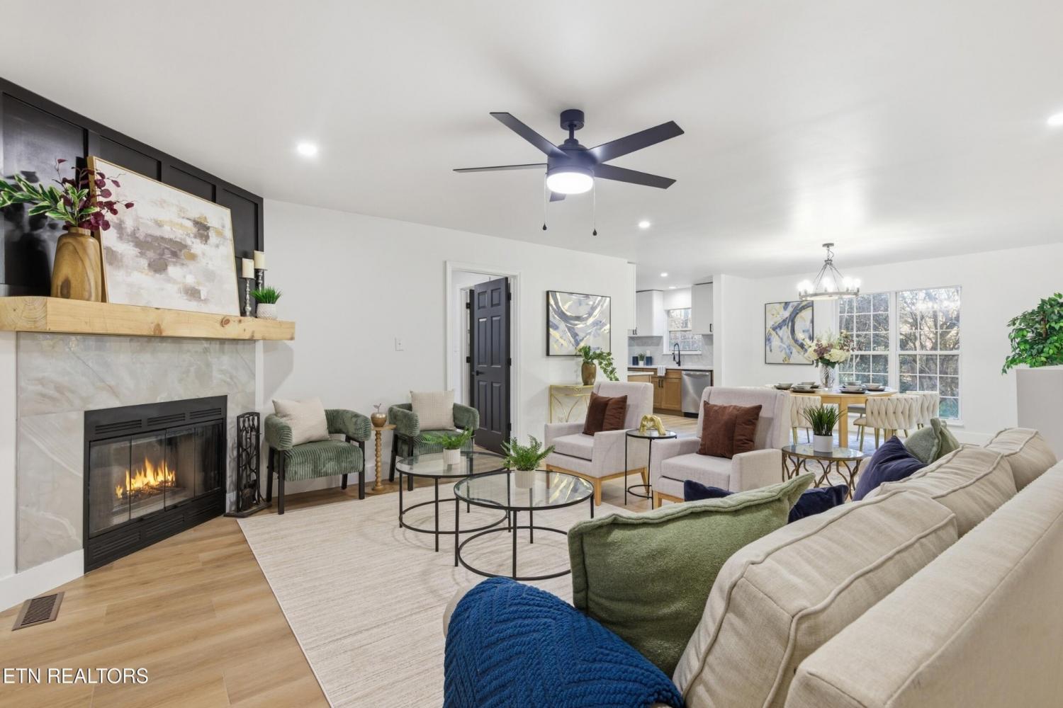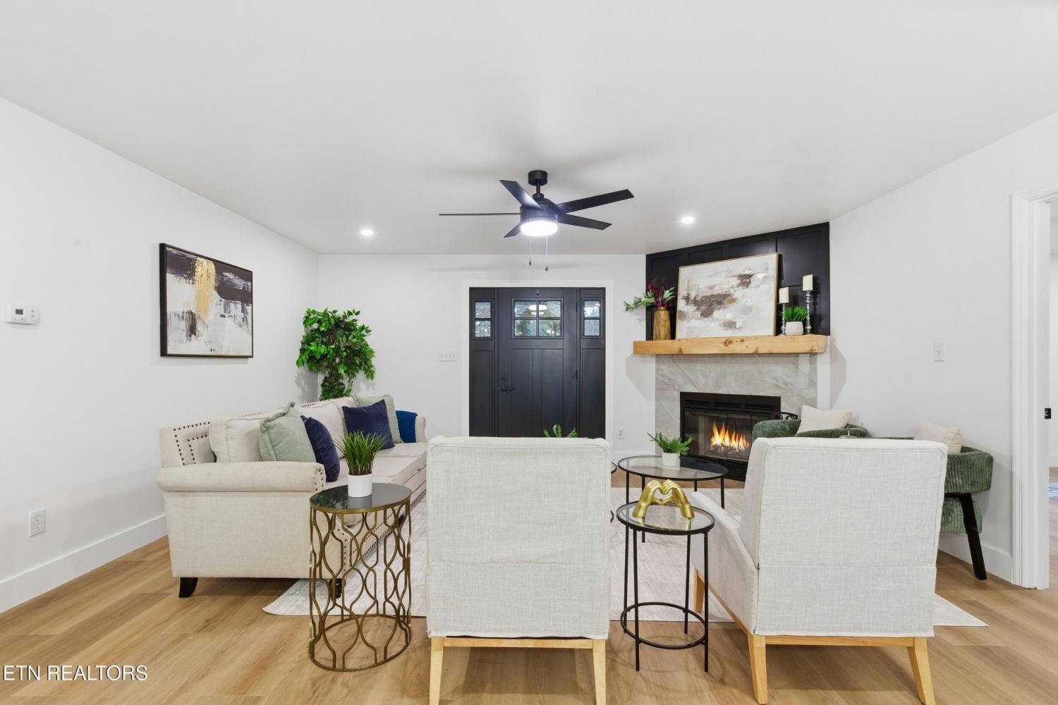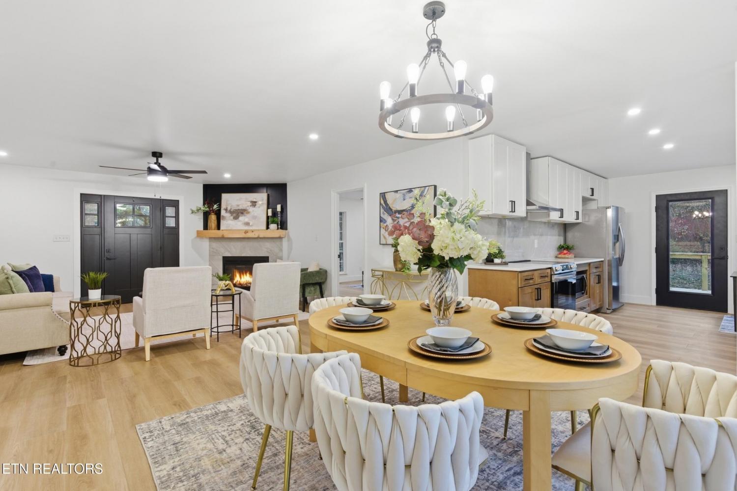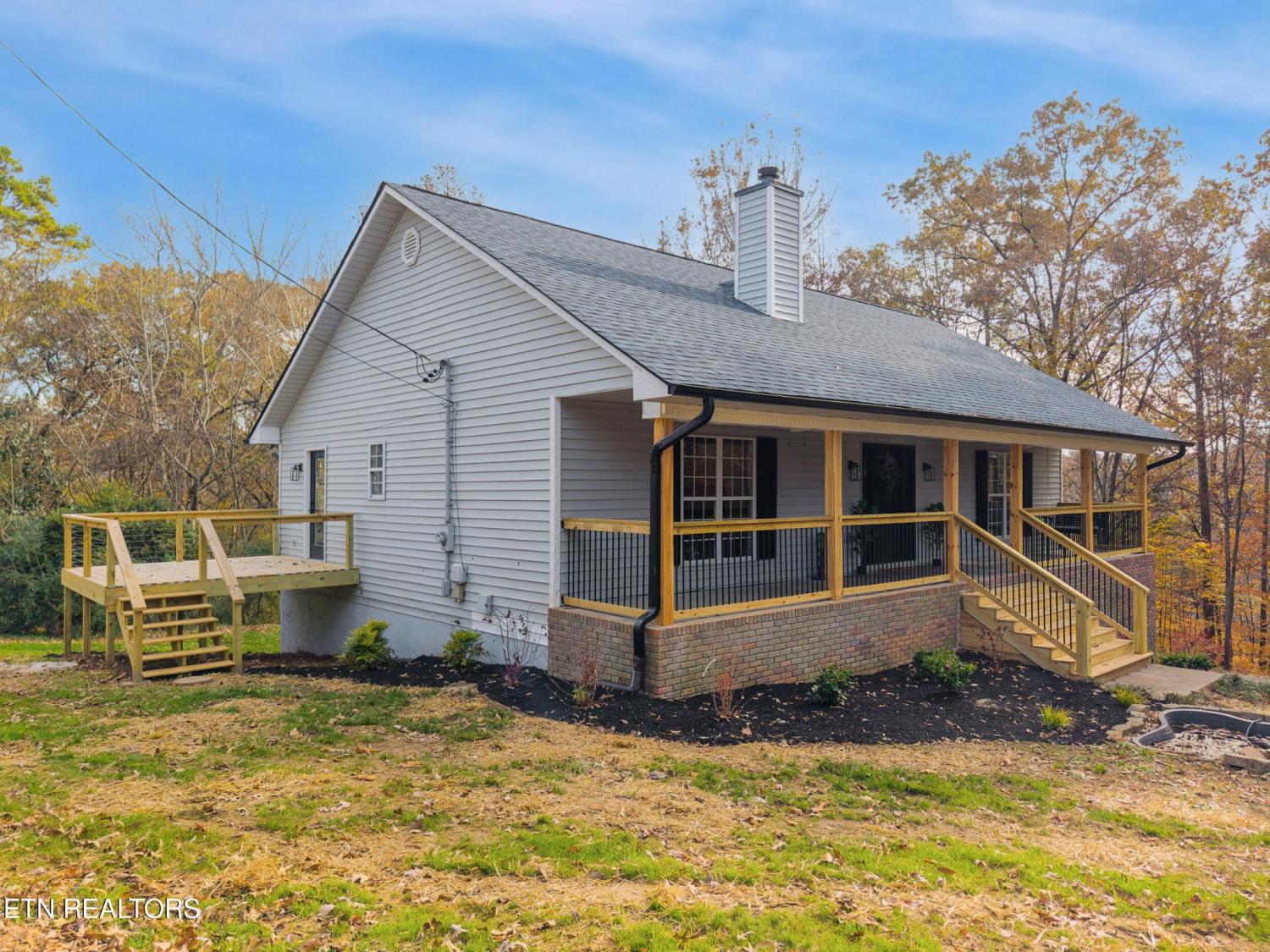 Welcome Home! A fully renovated basement rancher tucked away on 2.04 private acres, where modern comfort meets peaceful East Tennessee country living. From the moment you arrive, you'll fall in love with the long, secluded wrap-around driveway that guides you through mature trees, two charming man-made ponds, and the kind of serene landscape buyers dream about. At the top of the drive, a picture-perfect covered front porch oasis invites you to slow down, sip coffee, and soak in the tranquil views that only country living can provide. Step inside and discover 3 bedrooms, 3 bathrooms, and a spacious open-concept layout designed for both comfort and style. The eat-in kitchen is a true showstopper, featuring custom-built cabinetry, quartz countertops, stainless steel appliances, a porcelain tile backsplash, and a cozy, custom-built breakfast nook perfect for family meals or morning routines. The updates continue with beautifully tiled bathrooms upstairs, offering a fresh and modern feel. The living room showcases a custom wood-burning fireplace framed by gorgeous board-and-batten detailing an inviting centerpiece for those chilly Tennessee evenings. Downstairs, the fully finished basement delivers one massive open area with endless possibilities. Create a media room, game room, home office, gym, or all of the above. The space is yours to imagine. A two-car garage completes the lower level, offering both storage and convenience. Outside, no detail was overlooked. Enjoy brand-new landscaping, fresh steps leading to the entry, new wood posts, and an elegant iron-rod banister that elevates the home's curb appeal from every angle. If you're searching for a beautifully renovated home with privacy, acreage, character, and space to grow 9601 Cannon Lane is the rare East Tennessee gem that checks every box. Book your showing today!