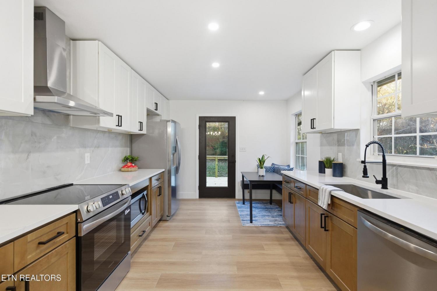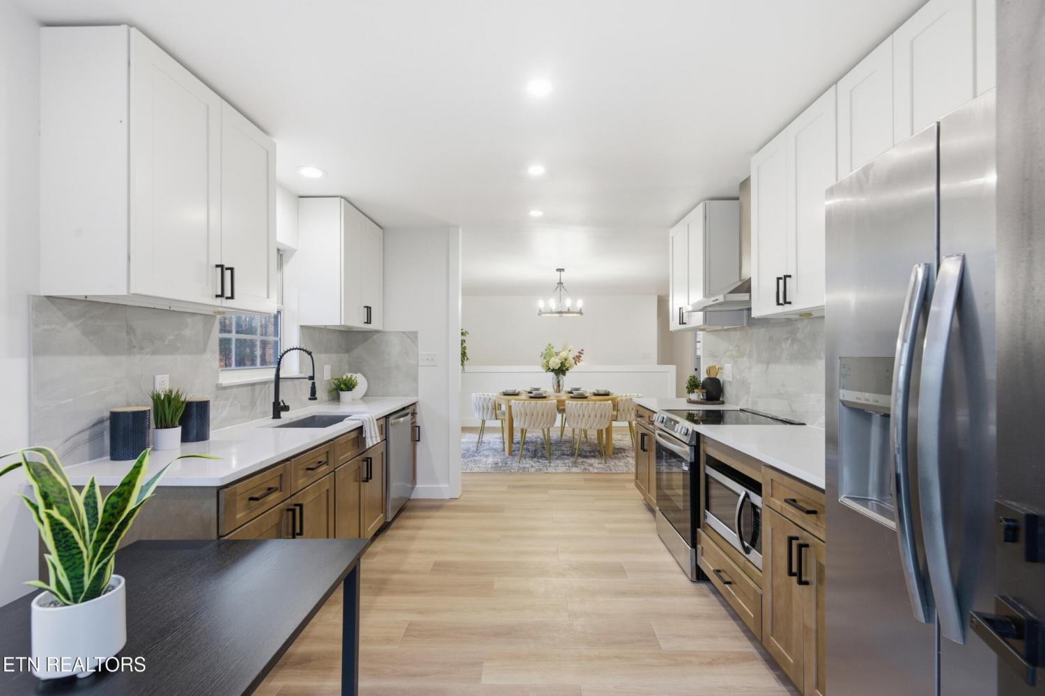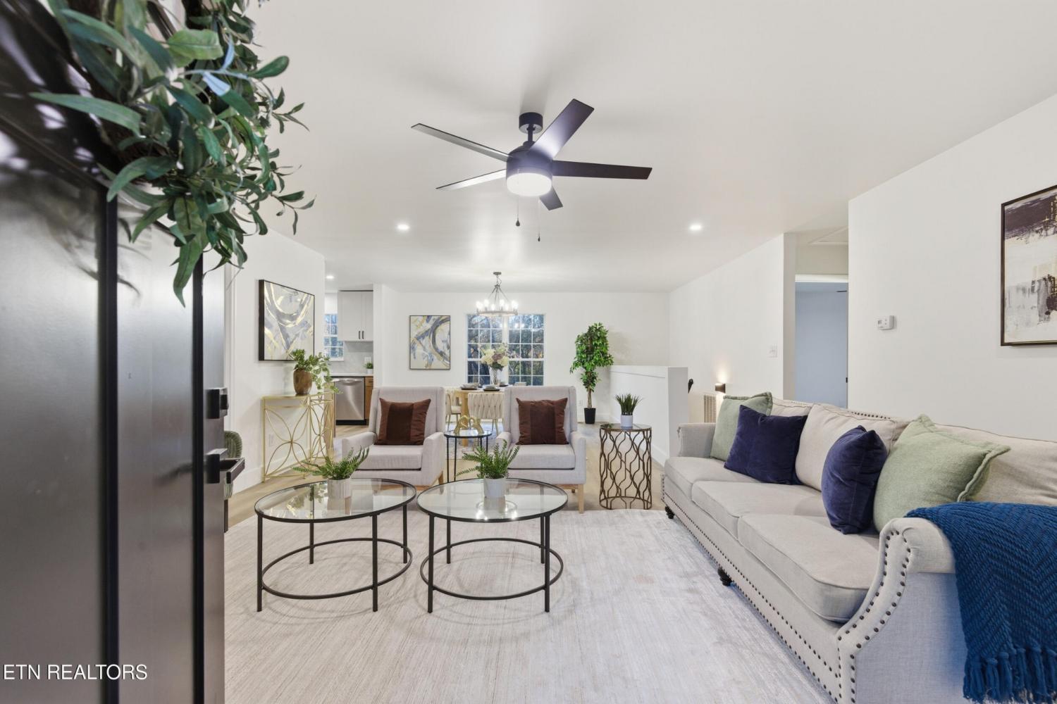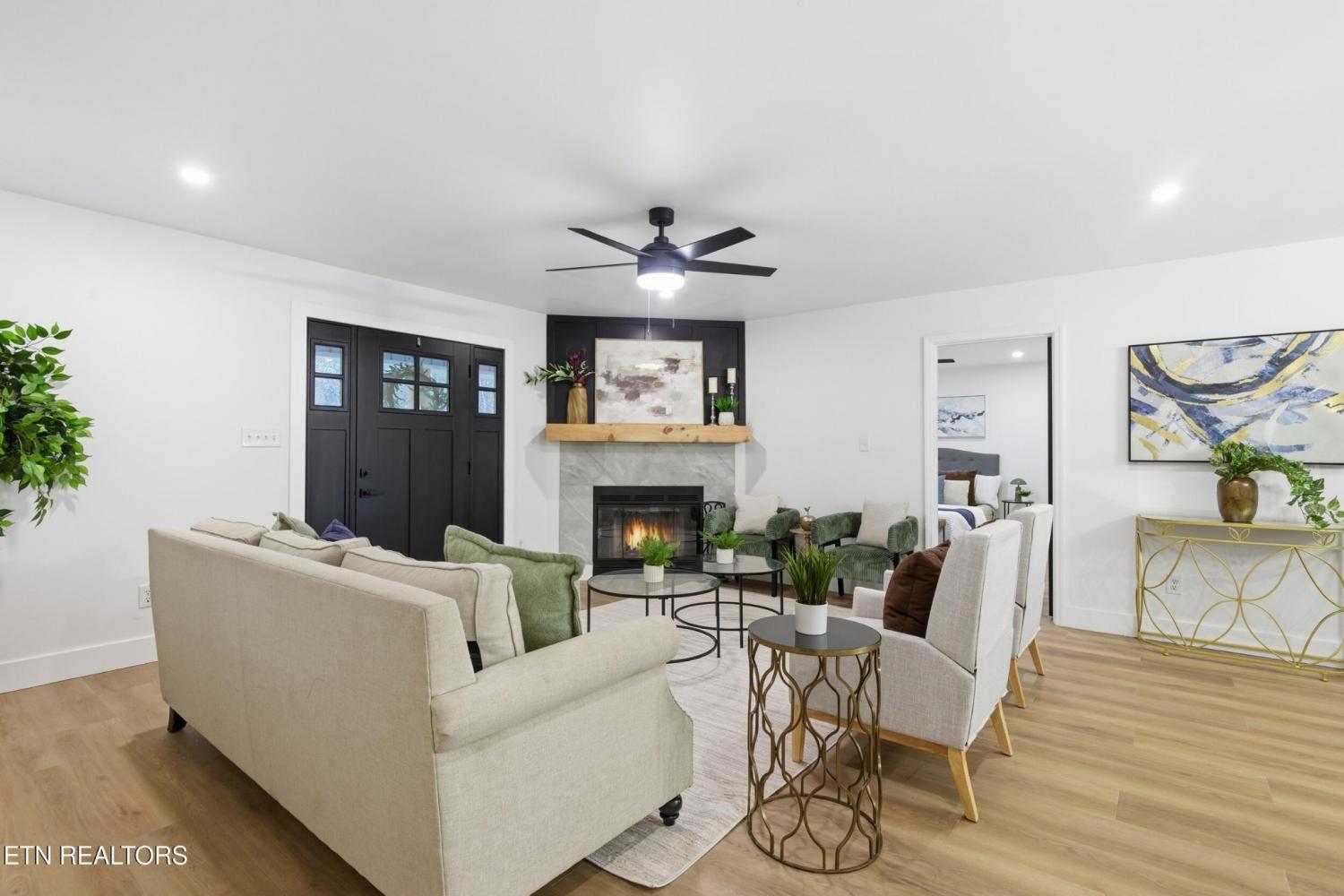 Welcome Home! A fully renovated basement rancher tucked away on 2.04 private acres, where modern comfort meets peaceful East Tennessee country living. From the moment you arrive, you'll fall in love with the long, secluded wrap-around driveway that guides you through mature trees, two charming man-made ponds, and the kind of serene landscape buyers dream about. At the top of the drive, a picture-perfect covered front porch oasis invites you to slow down, sip coffee, and soak in the tranquil views that only country living can provide. Step inside and discover 3 bedrooms, 3 bathrooms, and a spacious open-concept layout designed for both comfort and style. The eat-in kitchen is a true showstopper, featuring custom-built cabinetry, quartz countertops, stainless steel appliances, a porcelain tile backsplash, and a cozy, custom-built breakfast nook perfect for family meals or morning routines. The updates continue with beautifully tiled bathrooms upstairs, offering a fresh and modern feel. The living room showcases a custom wood-burning fireplace framed by gorgeous board-and-batten detailing an inviting centerpiece for those chilly Tennessee evenings. Downstairs, the fully finished basement delivers one massive open area with endless possibilities. Create a media room, game room, home office, gym, or all of the above. The space is yours to imagine. A two-car garage completes the lower level, offering both storage and convenience. Outside, no detail was overlooked. Enjoy brand-new landscaping, fresh steps leading to the entry, new wood posts, and an elegant iron-rod banister that elevates the home's curb appeal from every angle. If you're searching for a beautifully renovated home with privacy, acreage, character, and space to grow 9601 Cannon Lane is the rare East Tennessee gem that checks every box. Book your showing today!