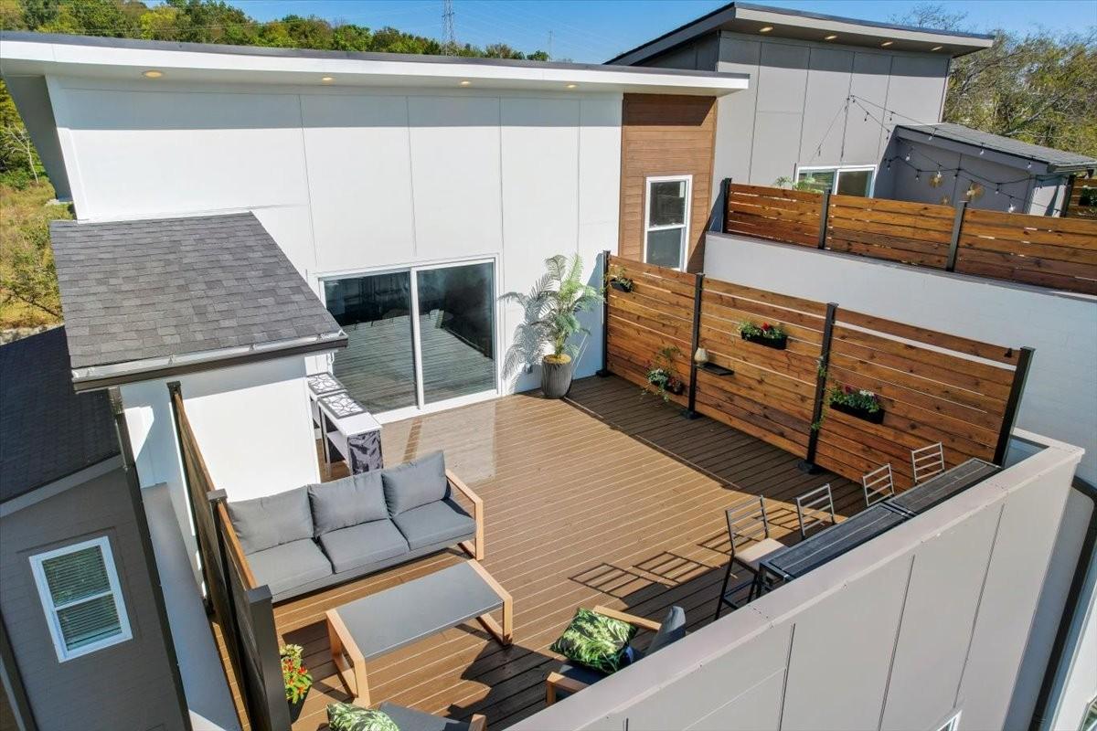 This home is pure Nashville energy — bold, modern, and designed to impress. With skyline views from the front-facing windows and an unforgettable rooftop experience, this property delivers lifestyle, flexibility, and high-end appeal in one powerful package. Walls of windows flood the home with natural light, while the open floor plan creates a space that feels expansive, social, and effortless. Multiple decks and patios elevate everyday living, all leading to the crown jewel: a massive rooftop deck with panoramic views of the Nashville skyline. Whether it’s morning coffee, sunset cocktails, or city lights at night, this rooftop sets the tone for entertaining and enjoying the city from above. Inside, the finishes are clean, elevated, and intentional. Wood flooring spans every level, paired with upgraded touches throughout. The kitchen anchors the main living space with sleek granite countertops, stainless steel appliances, a large center island with additional storage, and two oversized pantries. The living, dining, and kitchen areas flow seamlessly, making the home ideal for hosting, relaxing, and living well. The primary suite features a private deck — perfect for quiet mornings or winding down in the evening. An entertainment level with wet bar opens directly to an approximately 400-square-foot rooftop deck, creating a true indoor-outdoor experience. A flexible fourth room provides space for a home office, creative studio, or guest accommodations. Located just 10 minutes from downtown Nashville and Broadway, this home sits in a fast-growing area surrounded by continued development and investment. An additional opportunity exists to purchase the neighboring property at 1229 N Avondale Cir, offering flexibility for expanded ownership or creative use (buyer to verify all zoning, permits, and use requirements). High-impact design, skyline views, and serious lifestyle appeal — this is Nashville living turned all the way up.