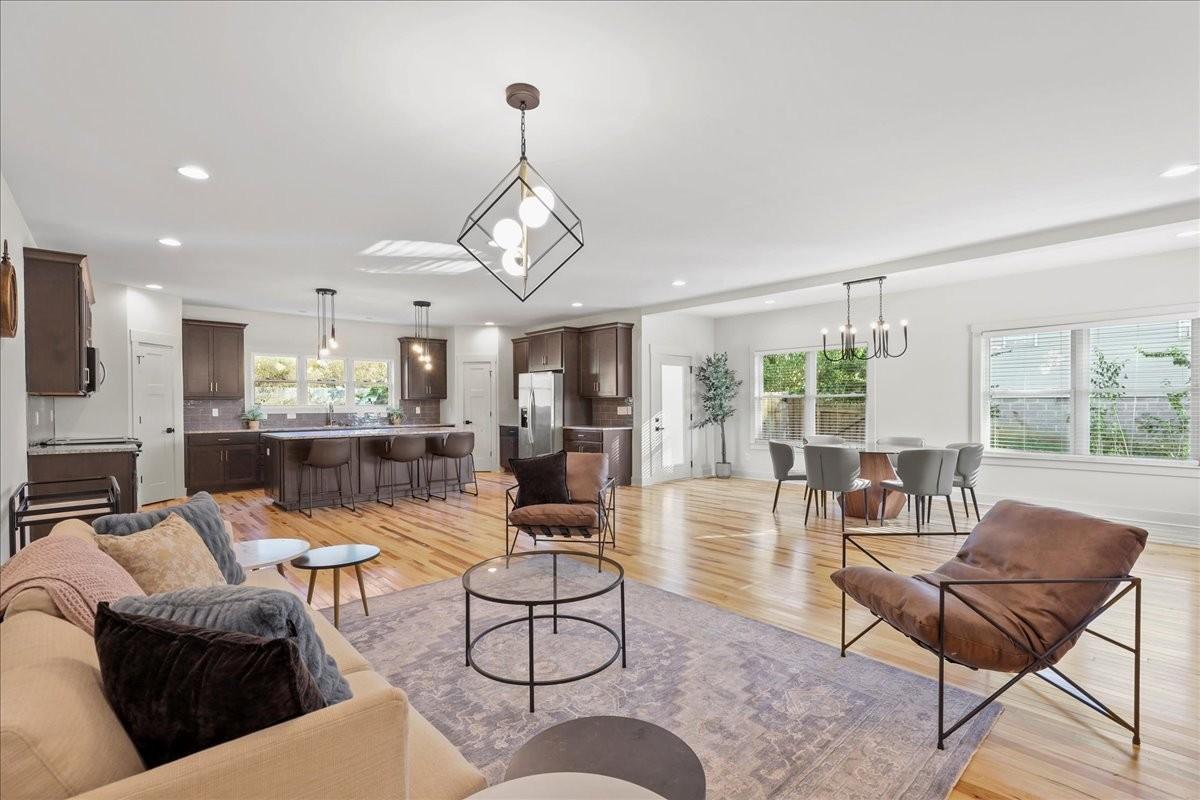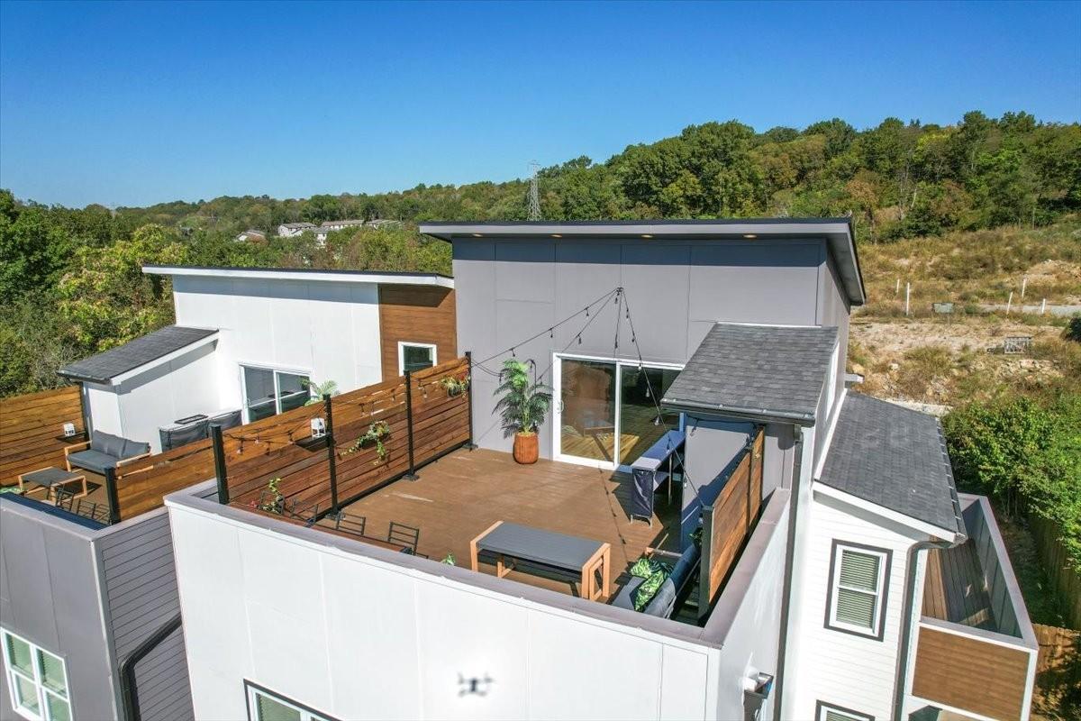 This home delivers the full Nashville experience — bold design, open living, and skyline views that make a statement. Designed for entertaining and elevated everyday living, the layout is bright, open, and filled with natural light from front-facing windows that frame the city beyond. Multiple decks and patios create effortless indoor-outdoor flow, all leading to an incredible rooftop deck with sweeping views of the Nashville skyline. From morning coffee to sunset cocktails and late-night city lights, this rooftop is the ultimate place to gather, unwind, and enjoy the energy of the city. Inside, the open floor plan feels expansive and inviting. Wood flooring runs throughout every level, paired with upgraded finishes and thoughtful design. The kitchen anchors the main living space with sleek granite countertops, stainless steel appliances, a large center island with additional storage, and generous pantry space. The living, dining, and kitchen areas connect seamlessly, creating a home that lives large and feels effortless. The primary suite includes a private deck — perfect for quiet mornings or winding down in the evening. An entertainment level with wet bar opens directly to an approximately 400-square-foot rooftop deck, creating a true indoor-outdoor experience. A flexible additional room provides space for a home office, creative studio, or guest accommodations. Located just 10 minutes from downtown Nashville and Broadway, this home sits in a fast-growing corridor surrounded by new development and continued momentum. An additional opportunity exists to purchase the neighboring property at 1227 N Avondale Cir, offering flexibility for expanded ownership or creative use (buyer to verify all zoning, permits, and use requirements). High-energy, skyline-view living — this is Nashville turned all the way up.