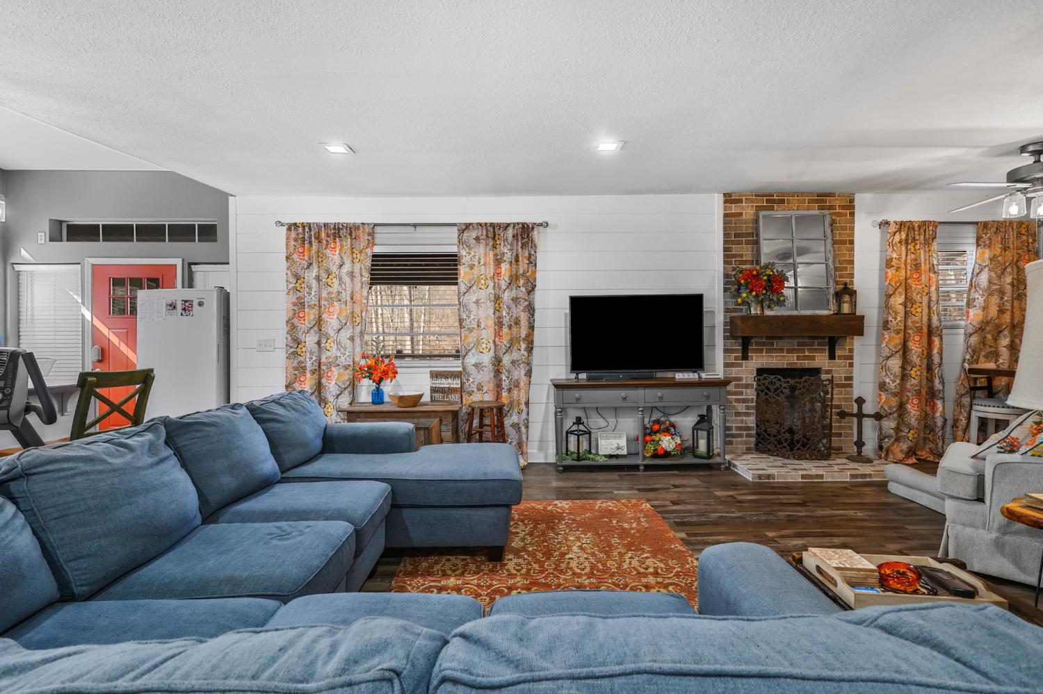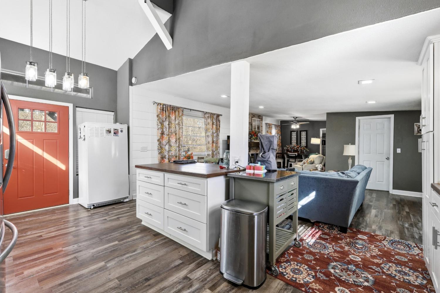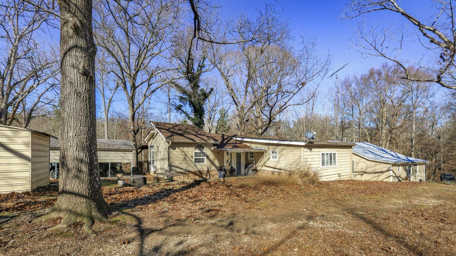Beautifully updated home near Kentucky Lake! Open-concept living with vaulted kitchen ceilings, center island, and propane fireplace. New roof and gutters in 2020. Covered front deck, rear patio, paved drive with room for garage. Includes 24x20 carport, 10x20 & 8x10 storage buildings. Located on 3 lots with county water. Both bedrooms have walk-in closets. Perfect weekend retreat or permanent residence!