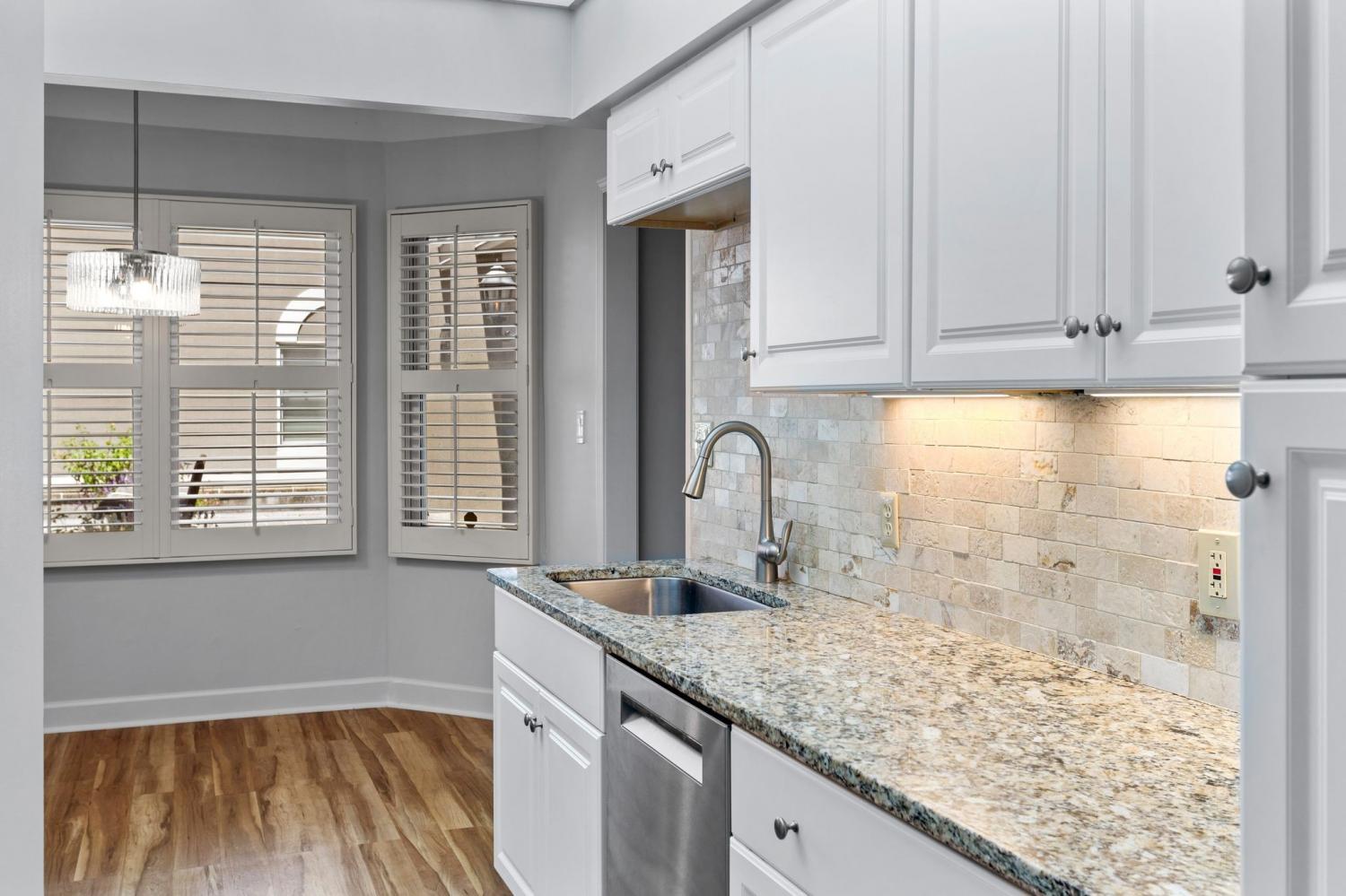 Beautiful updated spacious condo. Large open living/dining with wet bar, bookshelves and gas fireplace. Balcony located off living room. Updated kitchen with breakfast nook. Two updated baths with ceramic tile. Primary suite with two closets. 3rd bedroom/office with two built in desks, cabinets and shelves (perfect for working at home). Two dedicated parking spaces in secure garage. Must be sold as Primary Residence--Rentals not currently allowed.