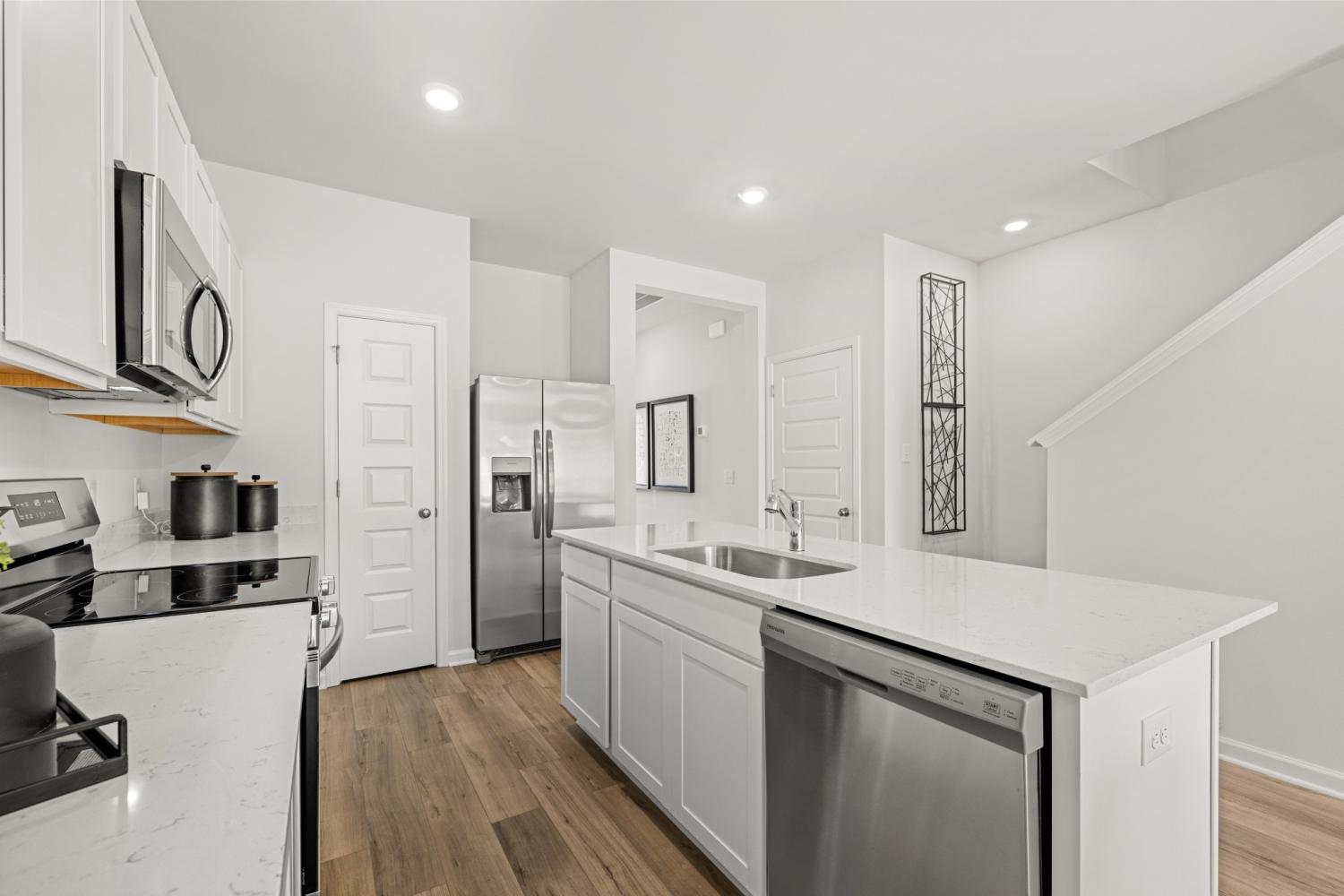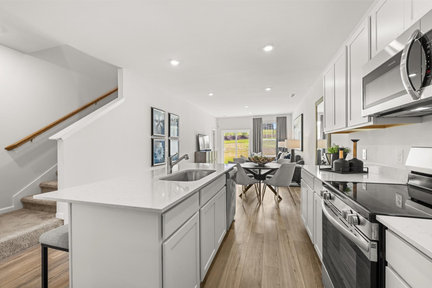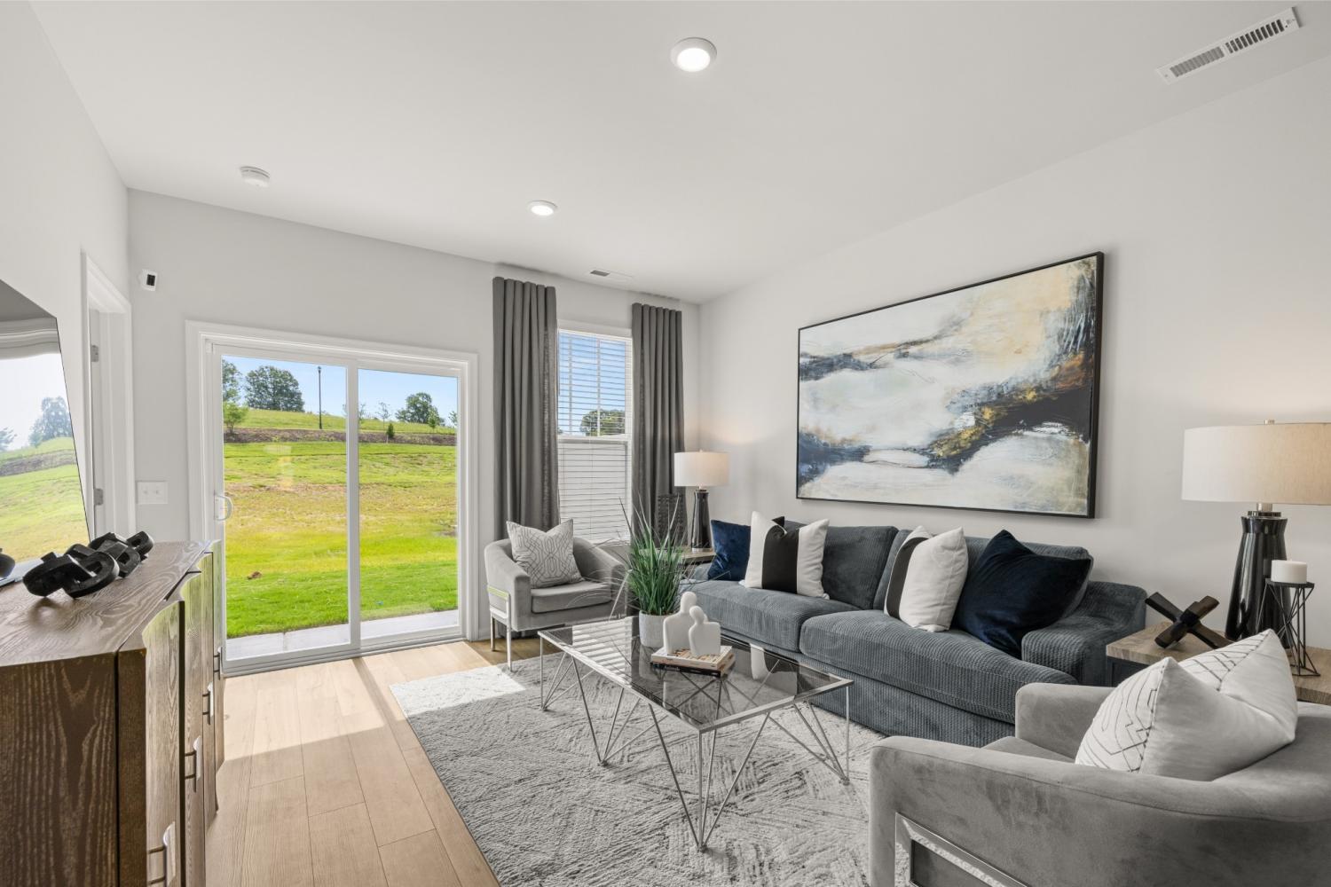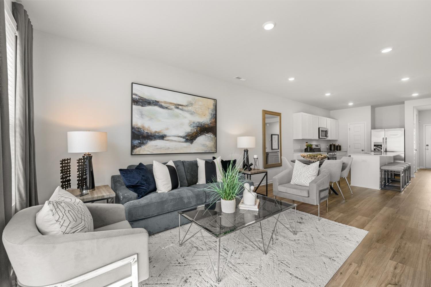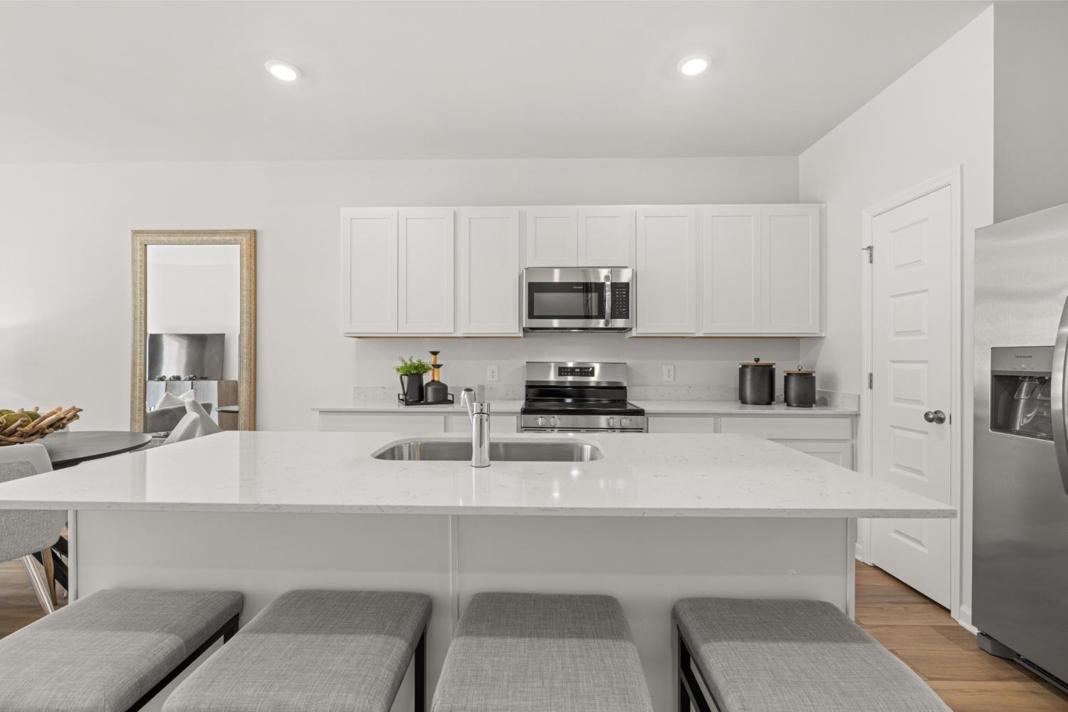 The first level of this two-story townhome is host to a generous open floorplan, shared between the Great Room, kitchen and dining room, while the luxurious owner’s suite is accessed at the back. A loft and two more bedrooms occupy the second floor. *Images from a furnished model of this home. Actual configuration and features may vary.