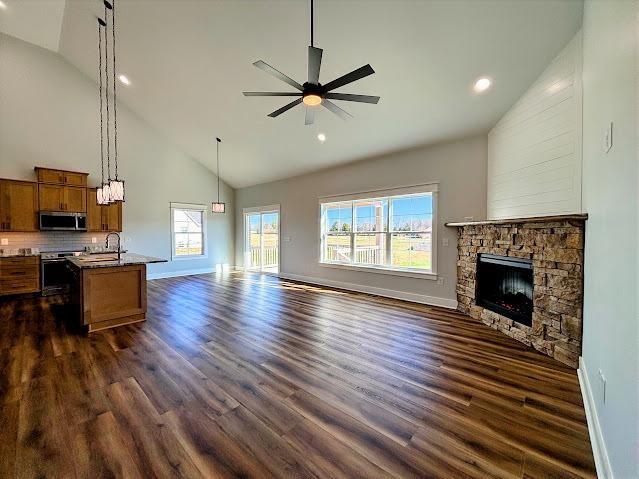 Stunning New Construction Craftsman-Style Home with Premium Finishes This exquisite 1 1/2-story all-brick home seamlessly blends timeless craftsmanship with modern luxury. Ideally located just 2 minutes from Woods Reservoir and minutes from US Hwy 24, it boasts high-end finishes throughout, creating a sophisticated yet warm and inviting atmosphere. Key Features: Spacious & Thoughtful Layout: Offering 2 full-suite bedrooms plus a versatile 2nd-floor bonus room (or 3rd bedroom), this home is designed for ultimate comfort and flexibility. Luxurious Bathrooms: Enjoy 2.5 beautifully appointed bathrooms, including a spa-like primary suite with dual vanities, a tiled walk-in shower with dual showerheads, and spacious walk-in closets in both suites. Impressive Living Areas: The great room, kitchen, and dining area feature 18-foot vaulted ceilings, perfect for both entertaining and relaxing. A cozy fireplace with a custom red oak mantle adds warmth and character to the heart of the home. Gourmet Kitchen: Culinary enthusiasts will love the large granite island, solid wood cabinetry, under-cabinet lighting, and Frigidaire Gallery stainless steel appliances. A walk-in pantry provides ample storage for all your kitchen essentials. Charming Touches: Red oak stairways lead to the bonus/3rd bedroom, while the shake dormer and 9-foot ceilings throughout add architectural elegance and style. Outdoor Enjoyment: Step out onto the 12x14 covered porch—perfect for morning coffee or evening relaxation—and enjoy the spacious .85-acre lot. Energy-Efficient & Future-Ready: The 2-car garage is equipped with an EV charging plug, and the oversized concrete driveway provides ample parking space and a large turn-around area for added convenience. Durability & Peace of Mind: Built to last, this maintenance-free all-brick home is topped with a 50-year GAF shingle roof warranty, ensuring long-term protection and value. Don’t miss your chance to own this exceptional home!