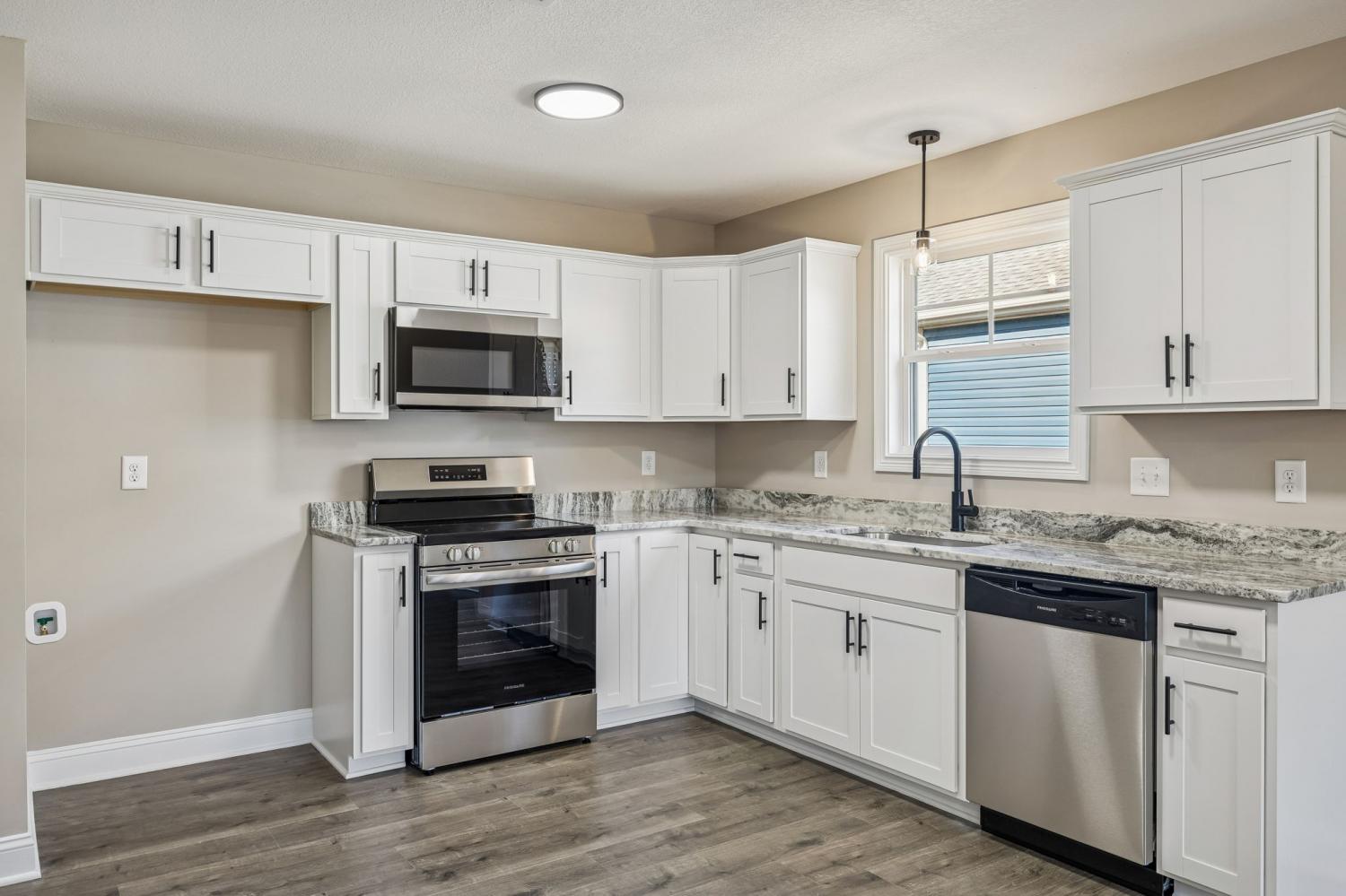 Ready to move in! Holiday Special - $10,000 buyer credit, to use anyway you want! Use for a price reduction, pay closing costs, rate buy down, fence or blinds install or combination of these! Welcome to 165 Arkansas Ave, a brand new charming one level home in Oak Grove, KY. This beautiful new construction home offers three large bedrooms and two bathrooms, including a spacious primary suite with high trey ceiling and spa like bathroom featuring a double vanity and spacious walk in closet. The open floor plan and one level design creates a stylish and inviting interior, complemented by laminate plank flooring throughout the main level and plush carpet in the bedrooms. The kitchen boasts granite or quartz countertops and sleek stainless steel appliances for a modern touch. Outside, you'll find a flat .47 acre lot with sodded front yard, covered front porch and covered back deck perfect for relaxing or entertaining. The one car garage provides ample space for parking and additional storage. Conveniently located just a short distance from shopping, schools, I-24, Oak Grove Casino and Fort Campbell Kentucky. Don't miss out on the opportunity to make this your dream home! The best part, no HOA! Schedule your showing today!