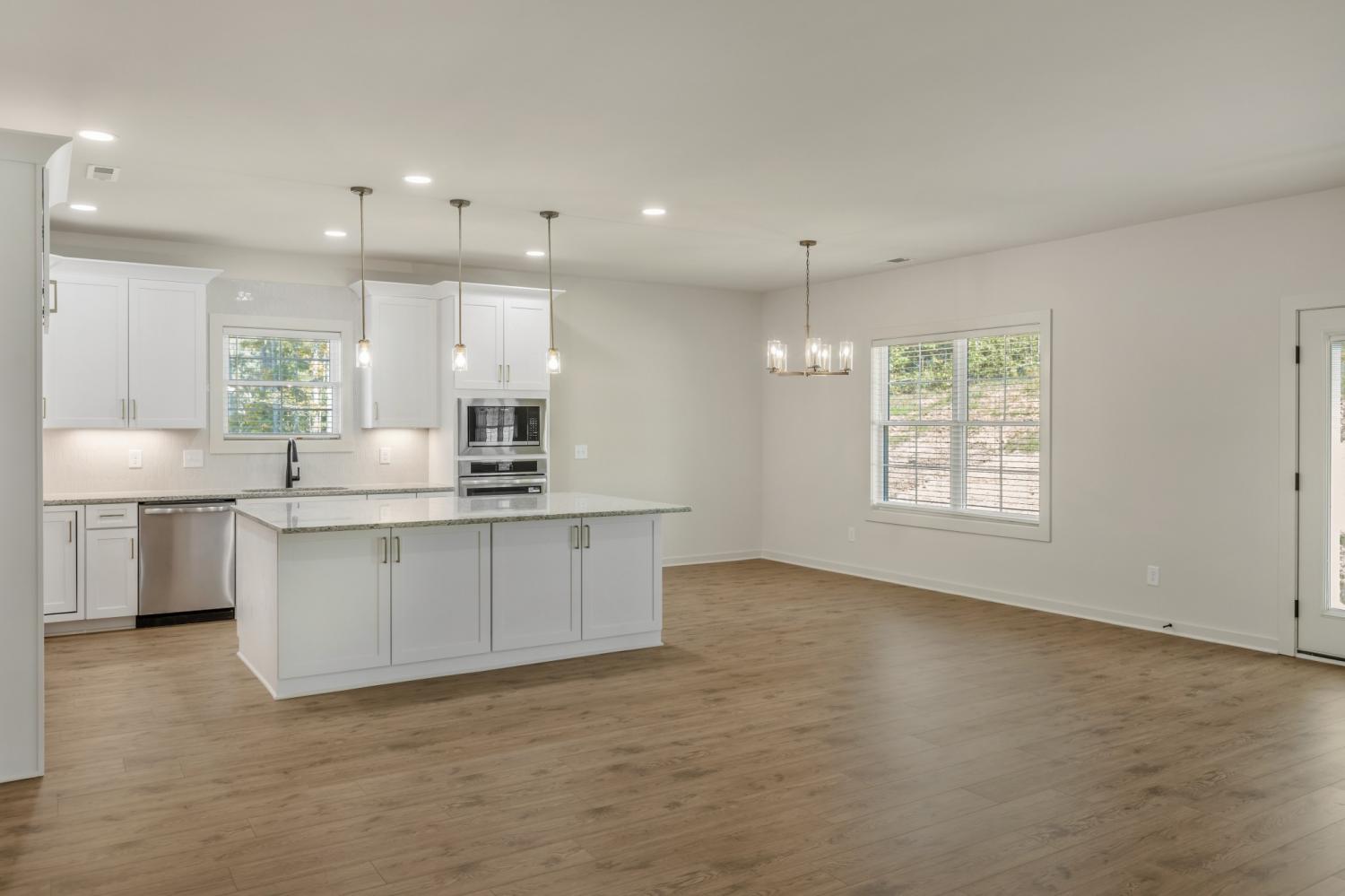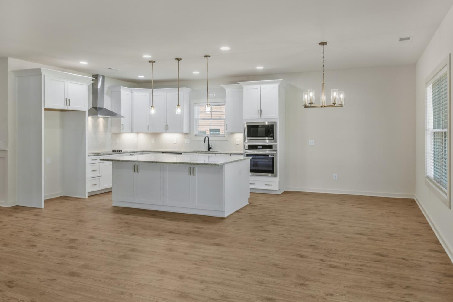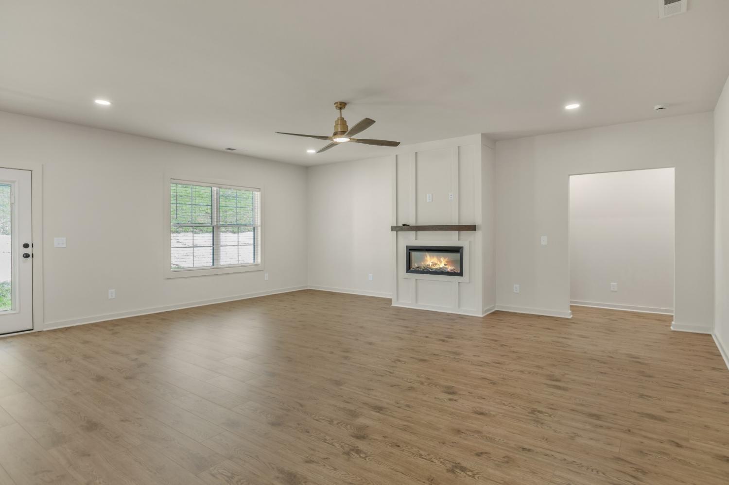 ONE LEVEL: Move-in ready and newly completed in Brush Creek, this home delivers the style everyone wants but is hard to find—true single-level living with a smart split-bedroom design and no stairs. From the side-entry garage and wide driveway to the detailed trim work in the entry hall, the craftsmanship shows the moment you arrive. The heart of the home is an oversized kitchen with a large island, vented range hood, and walk-in pantry with custom shelving, opening seamlessly to the dining area and great room with a sleek electric fireplace for easy everyday living and entertaining. The layout balances openness and privacy, with the primary suite tucked away and featuring a spa-style bath with soaking tub, separate shower, and large walk-in closet; bedrooms 2 and 3 sharing a convenient Jack-and-Jill bath; and bedroom 4 offering its own full bath that works perfectly for guests, in-laws, or a home office. A covered back porch overlooks peaceful wooded views, creating an ideal spot for morning coffee or evening relaxation. Located in Brush Creek, a 45-home community in Fairview, this property combines small-town charm with convenience to Nashville, Franklin, Bowie Nature Park, shopping, dining, and top-rated schools. Your single-level Brush Creek home is ready now—see the 3D tour and neighborhood video and schedule your showing today.
