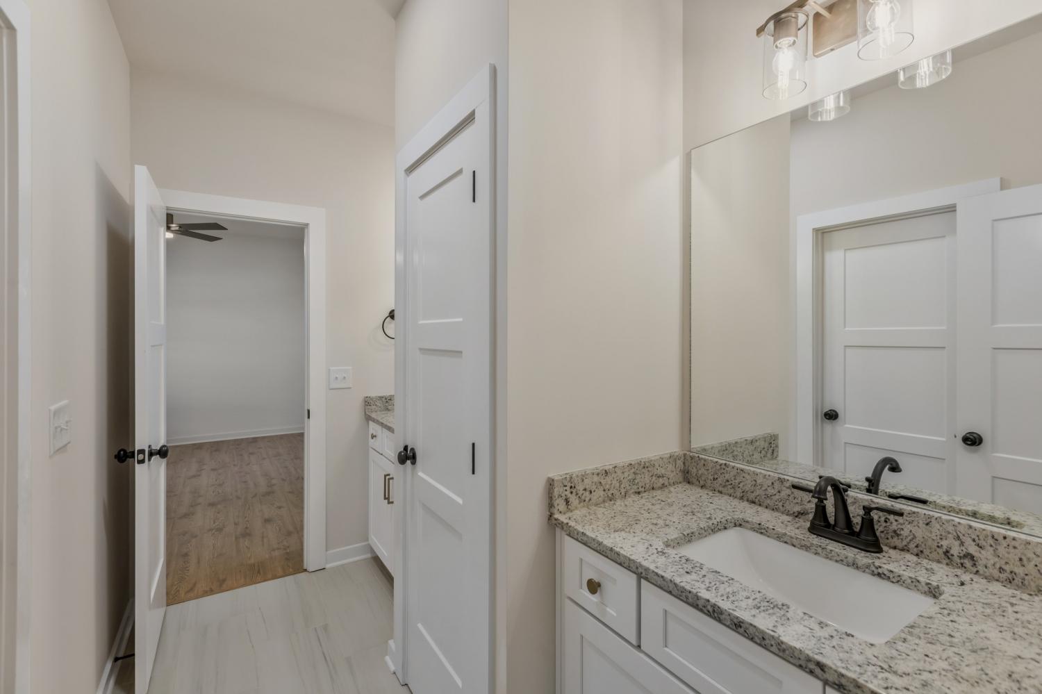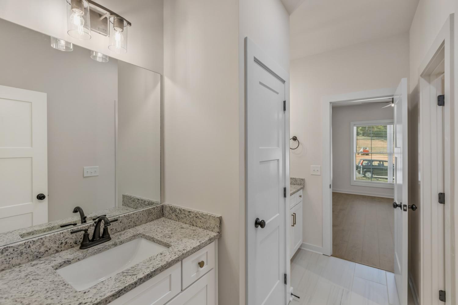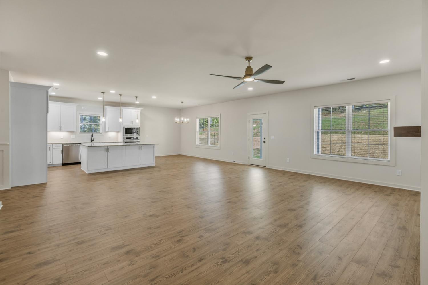 ONE LEVEL: Move-in ready and newly completed in Brush Creek, this home delivers the style everyone wants but is hard to find—true single-level living with a smart split-bedroom design and no stairs. From the side-entry garage and wide driveway to the detailed trim work in the entry hall, the craftsmanship shows the moment you arrive. The heart of the home is an oversized kitchen with a large island, vented range hood, and walk-in pantry with custom shelving, opening seamlessly to the dining area and great room with a sleek electric fireplace for easy everyday living and entertaining. The layout balances openness and privacy, with the primary suite tucked away and featuring a spa-style bath with soaking tub, separate shower, and large walk-in closet; bedrooms 2 and 3 sharing a convenient Jack-and-Jill bath; and bedroom 4 offering its own full bath that works perfectly for guests, in-laws, or a home office. A covered back porch overlooks peaceful wooded views, creating an ideal spot for morning coffee or evening relaxation. Located in Brush Creek, a 45-home community in Fairview, this property combines small-town charm with convenience to Nashville, Franklin, Bowie Nature Park, shopping, dining, and top-rated schools. Your single-level Brush Creek home is ready now—see the 3D tour and neighborhood video and schedule your showing today.