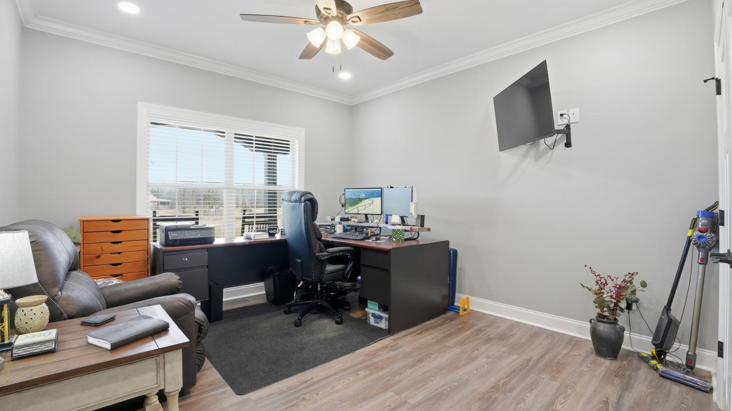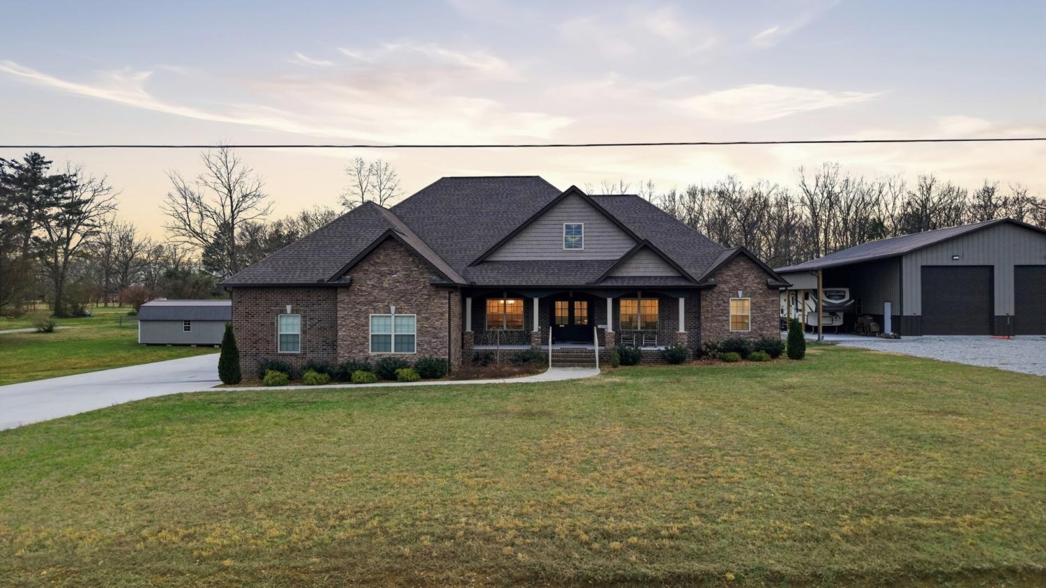 Outdoor living meets custom craftsmanship in this beautiful home situated on 3.48 acres just behind Willowbrook Golf Course. Offering 3,079 sq ft, this custom-built home features 3 bedrooms plus an office or optional 4th bedroom, and 3.5 baths. Enjoy gathering spaces including a formal living room and cozy den, both with gas fireplaces. The heart of the home includes custom cabinets, granite countertops, and a large walk-in pantry perfect for family living and entertaining. Step outside to a spacious covered back patio with TV and hot tub hookups, ideal for relaxing after a day on the course or hosting friends and family. Outdoor enthusiasts will love the fully finished and insulated 56x60 workshop with two 14-ft doors, 50-amp RV hookup, and 16x60 covered RV lean-to. Large concrete driveway with 100-amp hookup at the house. A rare opportunity for space, recreation, and comfort at 667 Pete Sain Rd, Manchester, TN 37355.