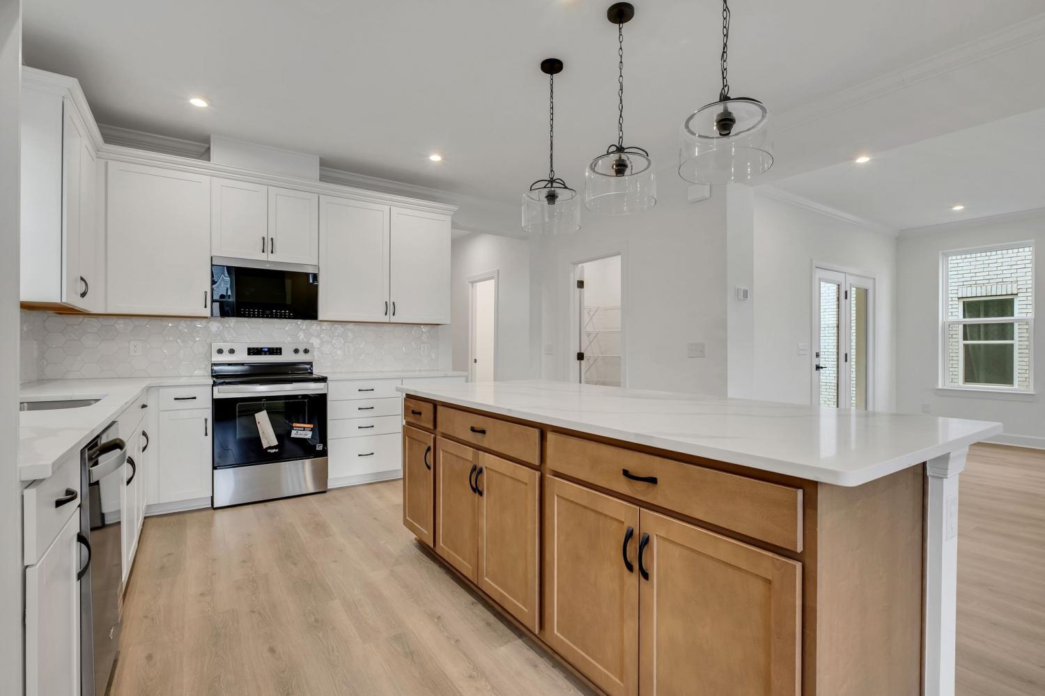 Lot 66-READY NOW! Welcome to The Chadwich plan, one of our most popular model home floor plans, offering spacious rooms and a bright, open living space on the main level. A covered porch provides comfortable outdoor living year-round, complemented by an additional large, uncovered patio off the great room. This home is built with quality in mind, featuring 2x6 exterior walls and 9-foot ceilings both upstairs and downstairs. The interior includes hardwood stairs with iron railing, white soft-close kitchen cabinets, 8-foot first-floor doors, matte black lever door hardware, 5 ¼-inch baseboards, and a painted garage. The mudroom includes a valet bench with hooks and cubbies for extra storage. Upstairs, you’ll find three bedrooms, including the spacious Primary Suite, along with a HUGE media room that can be closed off with doors. Bedrooms 2 and 3 each offer large walk-in closets, and the primary bathroom features a beautifully tiled shower. Location Location Location. So many parks close by and grocery shopping 7 minutes away. We are able to assist with some closing costs! (Homesite 66)