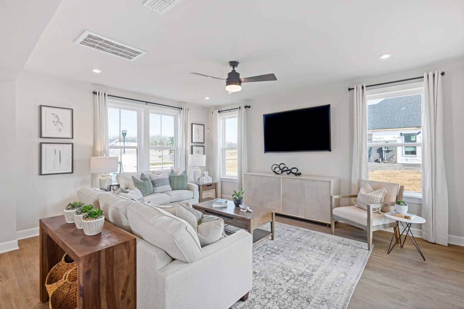 LOT 13 - Ready March! Welcome to The Chadwick, one of our most popular model home floor plans, offering spacious rooms and a bright, open living space on the main level. A covered porch provides comfortable outdoor living year-round, complemented by an additional large, uncovered patio off the great room. This home is built with quality in mind, featuring 2x6 exterior walls and 9-foot ceilings both upstairs and downstairs. The interior includes hardwood stairs with iron railing, Quill soft-close kitchen cabinets, matte black lever door hardware, 5 ¼-inch baseboards, and a painted garage. The mudroom includes a convenient valet bench with hooks and cubbies for extra storage. Upstairs, you’ll find three bedrooms, including the spacious Primary Suite, along with a HUGE media room that can be closed off with doors. Bedrooms 2 and 3 each offer large walk-in closets, and the primary bathroom features a beautifully tiled shower. Ask about our Mortgage Choice options and potential cost savings when purchasing this home. Community amenities will include a clubhouse, pool, splash pad, fitness center, playground, and walking trails connecting to the Greenway. Conveniently located just minutes from the interstate, Costco, and Providence Marketplace, this home places dining, shopping, and commuting within easy reach. Enjoy a $20,000 flex credit when using one of our Mortgage Choice lenders! (Homesite 13)
