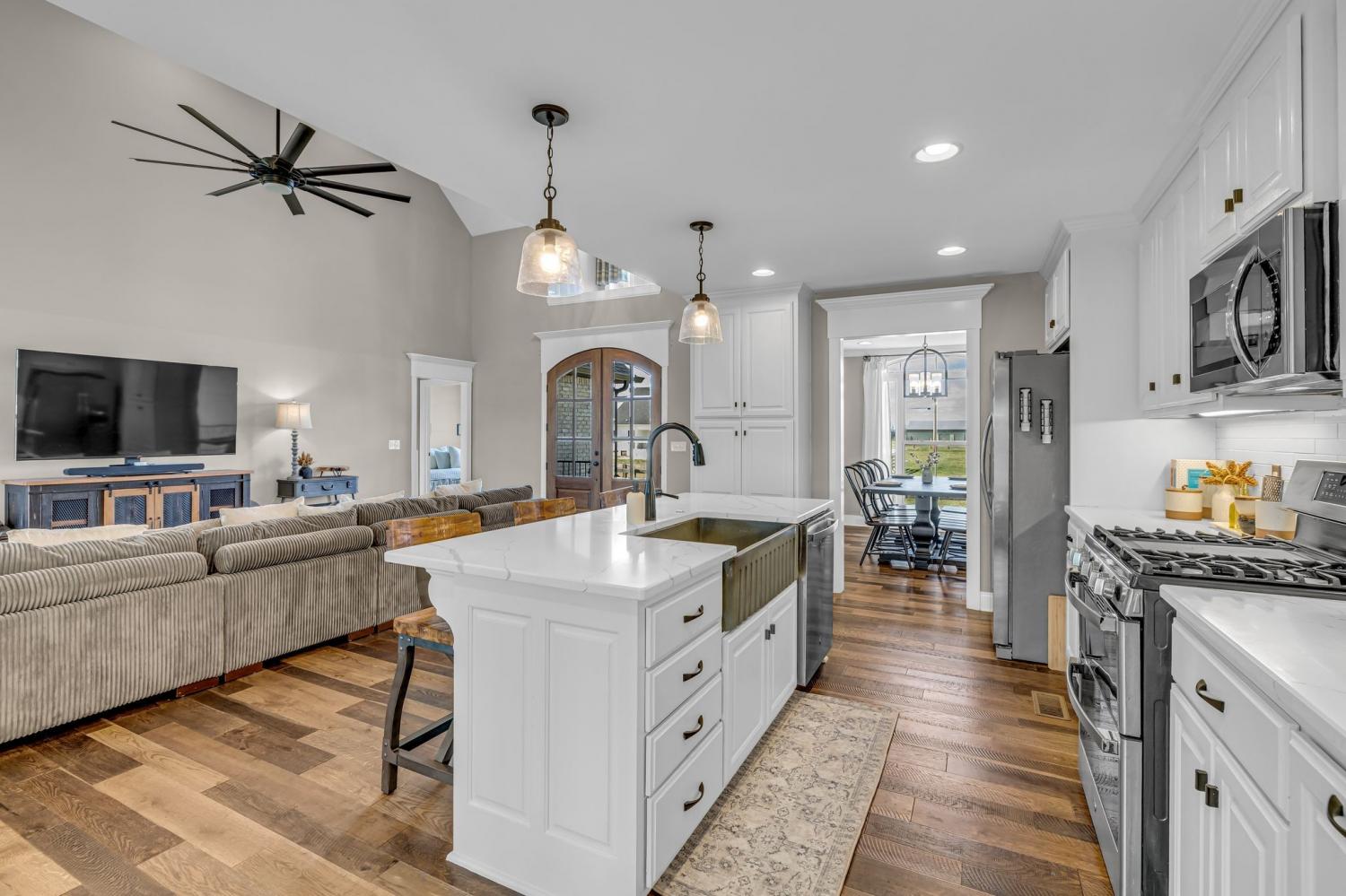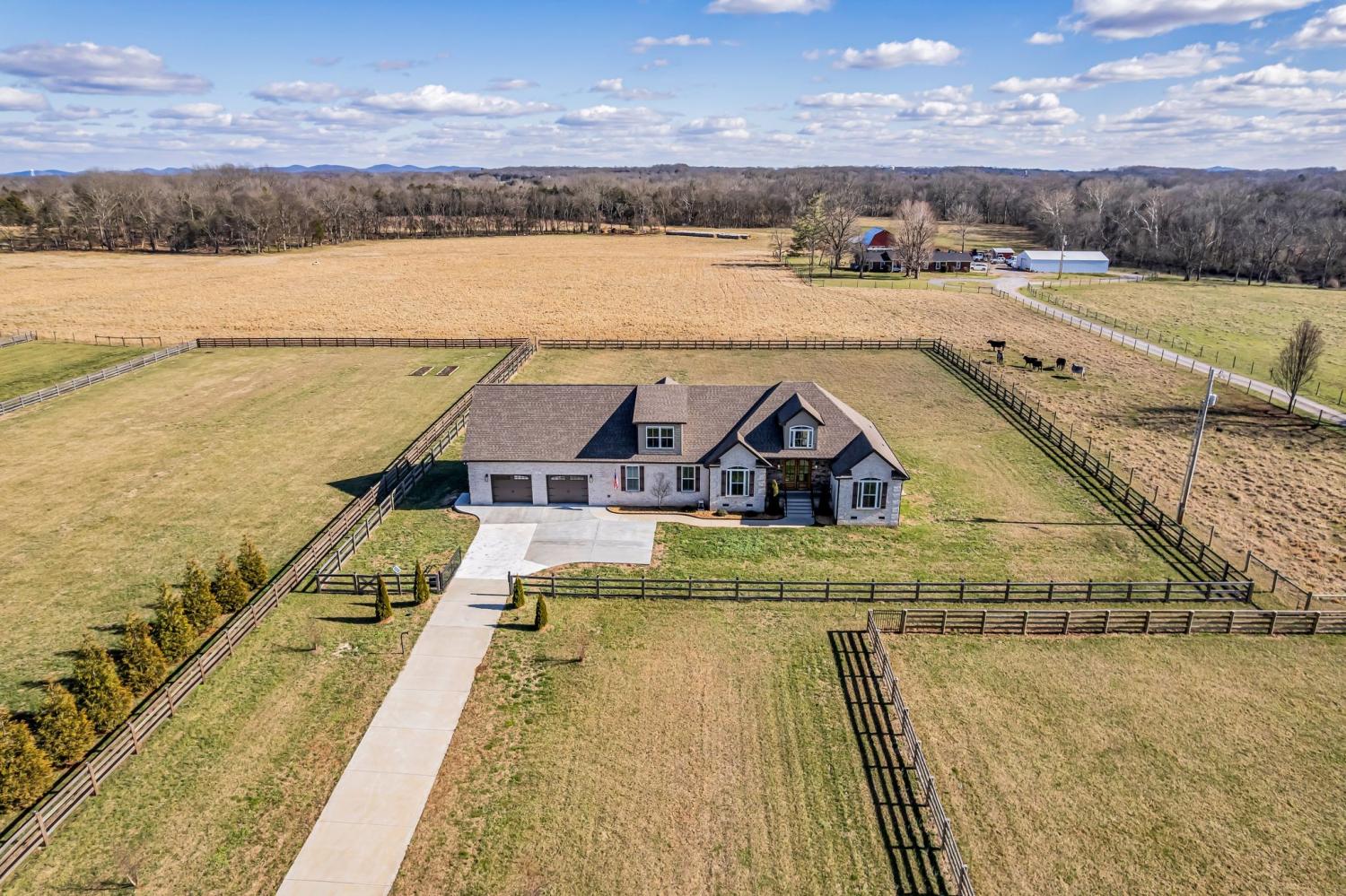 Welcome to 852 Longview Rd, a beautifully updated farmhouse that blends classic Southern charm with modern comfort. Set on 1.6 acres in desirable Shelbyville, this home features 3 bedrooms and 3 full bathroom across 2,814 sq ft of living space. The light-filled open floor plan centers on a spacious farmhouse kitchen with quartz countertops, center island, concrete farmhouse sink, stainless appliances, flowing into a warm dining area and great room with vaulted ceilings. Original character meets thoughtful updates—wide-plank hardwood floors and period details are complemented by contemporary finishes and energy-efficient systems. The primary suite offers a private retreat with fully tiled shower, walk-in closet, while additional bedrooms provide flexible space for family and guest. The room upstairs could be used as a 4th bedroom (Septic is approved for a 3 bedroom). The Home was updated in size in Feb 2025 with an extra large garage (30x31) with a large storage area above that could easily be converted into more living space. The original garage was converted into 2 Home Offices. Convenient to local schools, dining, and downtown Shelbyville, this home delivers peaceful rural living with easy access to town.