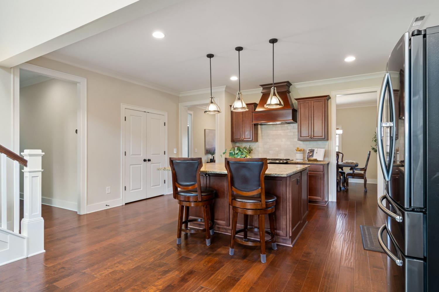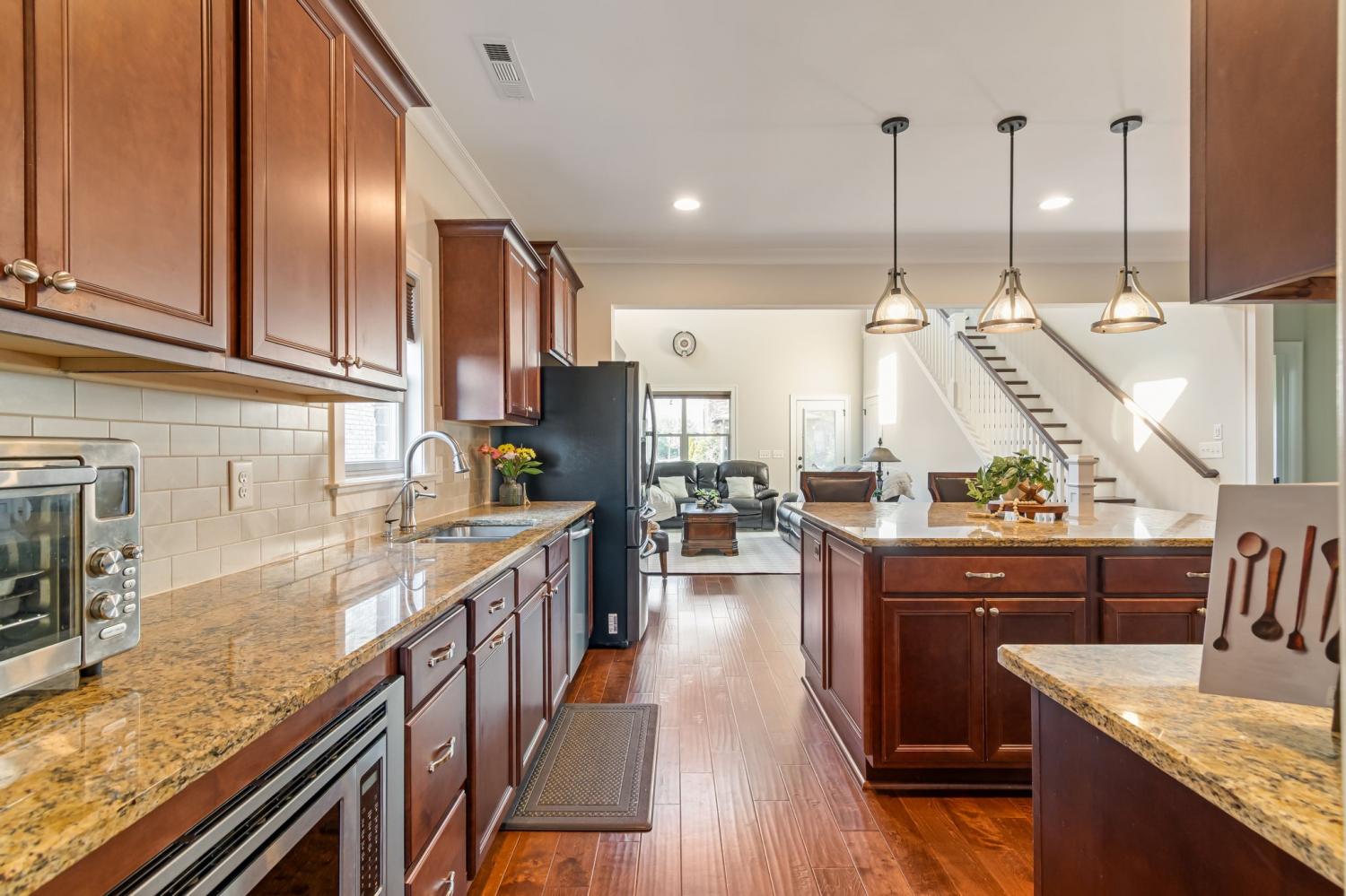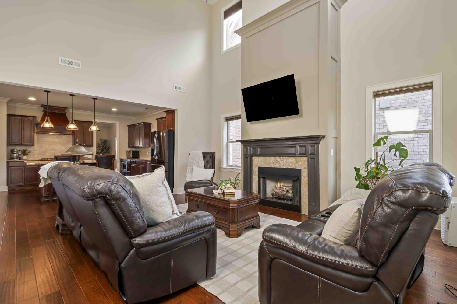 This classic all-brick home offers timeless curb appeal and an exceptional floor plan designed for both everyday living and entertaining. With five bedrooms and four full bathrooms, the layout is thoughtfully arranged with a primary suite on the main level, featuring double vanities, a spa-like en suite, and a TWO large walk-in closets. A secondary bedroom suite downstairs with its own full bath is perfect for guests or multigenerational living. Large laundry and drop zone provide amazing functionality. The heart of the home is the expansive kitchen, showcasing granite countertops, a custom vent hood, and an oversized eat-at island with abundant storage, all open to a stunning two-story den. Natural light pours in, highlighting the cozy fireplace and creating a warm, inviting atmosphere. Upstairs, enjoy a large loft area, a dedicated theater room, a private bedroom with an en suite bath, and two additional bedrooms sharing a large hall bath, offering plenty of space and flexibility. Located in the highly desirable Ladd Park master-planned community, residents enjoy access to two pools, a canoe and kayak launch, a basketball court, and two playgrounds, all just minutes from I-65. Zoned for top-rated schools, this home combines classic elegance, modern comfort, and an unbeatable community lifestyle.