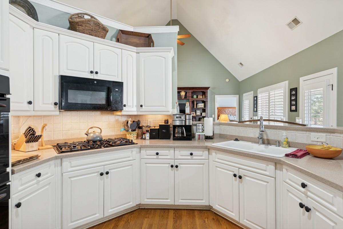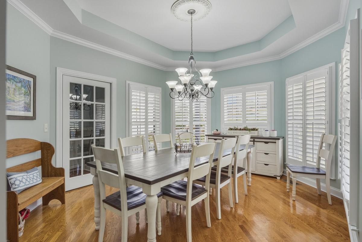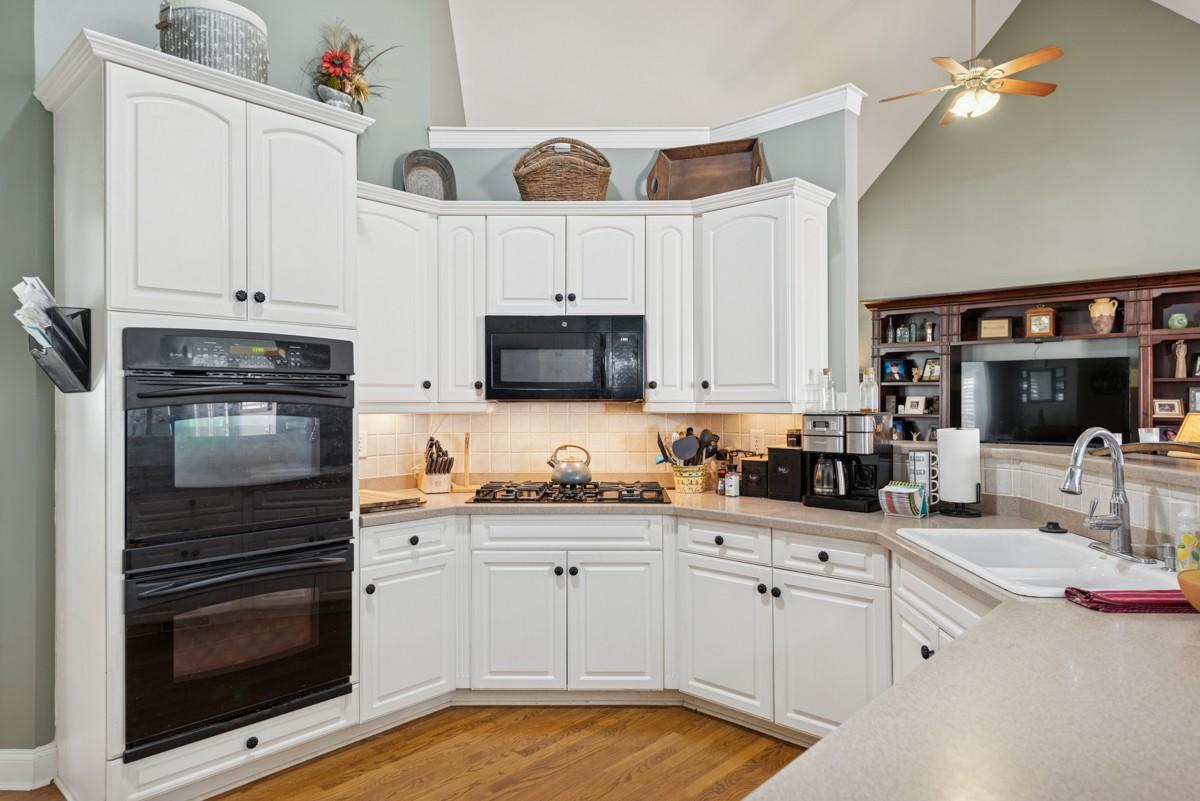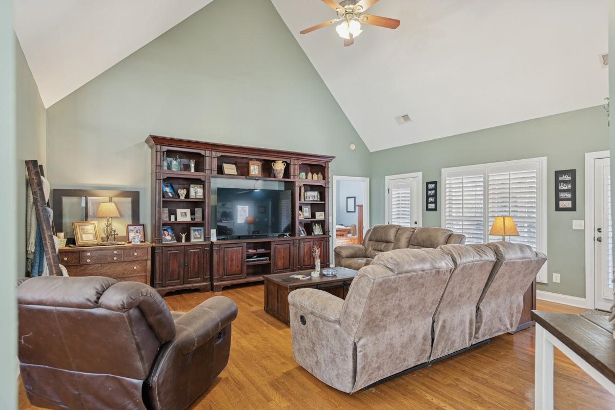 One Level lifestyle with an extra Large Bonus over 2 Car Garage-Open Floor Plan joins the Kitchen, extended Great Room and casual Dining all sporting Genuine Hardwoods, Formal Dining with Bay windows- Plantation Shutters throughout-4 Bedrms, with Private Owner's Suite-Half bath for Guests, Truly low maintenance Landscape and Yard