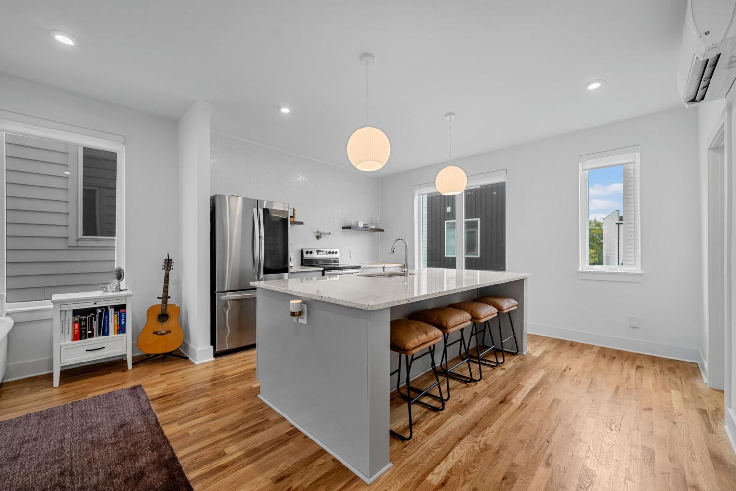 Experience modern city living just minutes from all that downtown Nashville has to offer in this stylish 3-story townhouse with 3 bedrooms, 2.5 baths, and a 1-car garage. The open-concept main level features neutral tones, stainless steel kitchen appliances, a large island, and plentiful natural light, creating an inviting space for both everyday living and entertaining. The second floor provides two spacious bedrooms and a full bath, ideal for guests, family, or a home office. The third floor is a true retreat with a huge primary suite boasting a spa-inspired bath, walk-in closet, and a covered balcony perfect for morning coffee or evening relaxation. Lovely flooring runs throughout the home, while the garage is conveniently tucked away at the back with private access off the street and an over sized garage. With contemporary finishes like custom blinds a bidet toilet, low-maintenance living, and an unbeatable location near the river, top restaurants, vibrant nightlife, and quick I-24 access, this home offers the ultimate blend of comfort, convenience, and city lifestyle. (Potential Monthly Rental Income: $2600 / Estimated AirBnB Nighly Rental Rate: $200-$258)