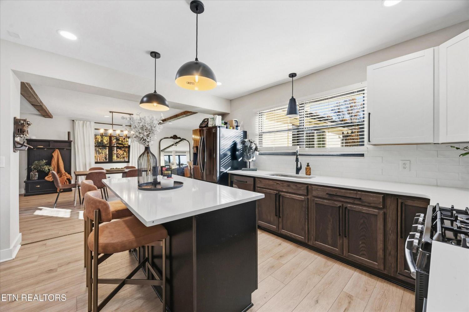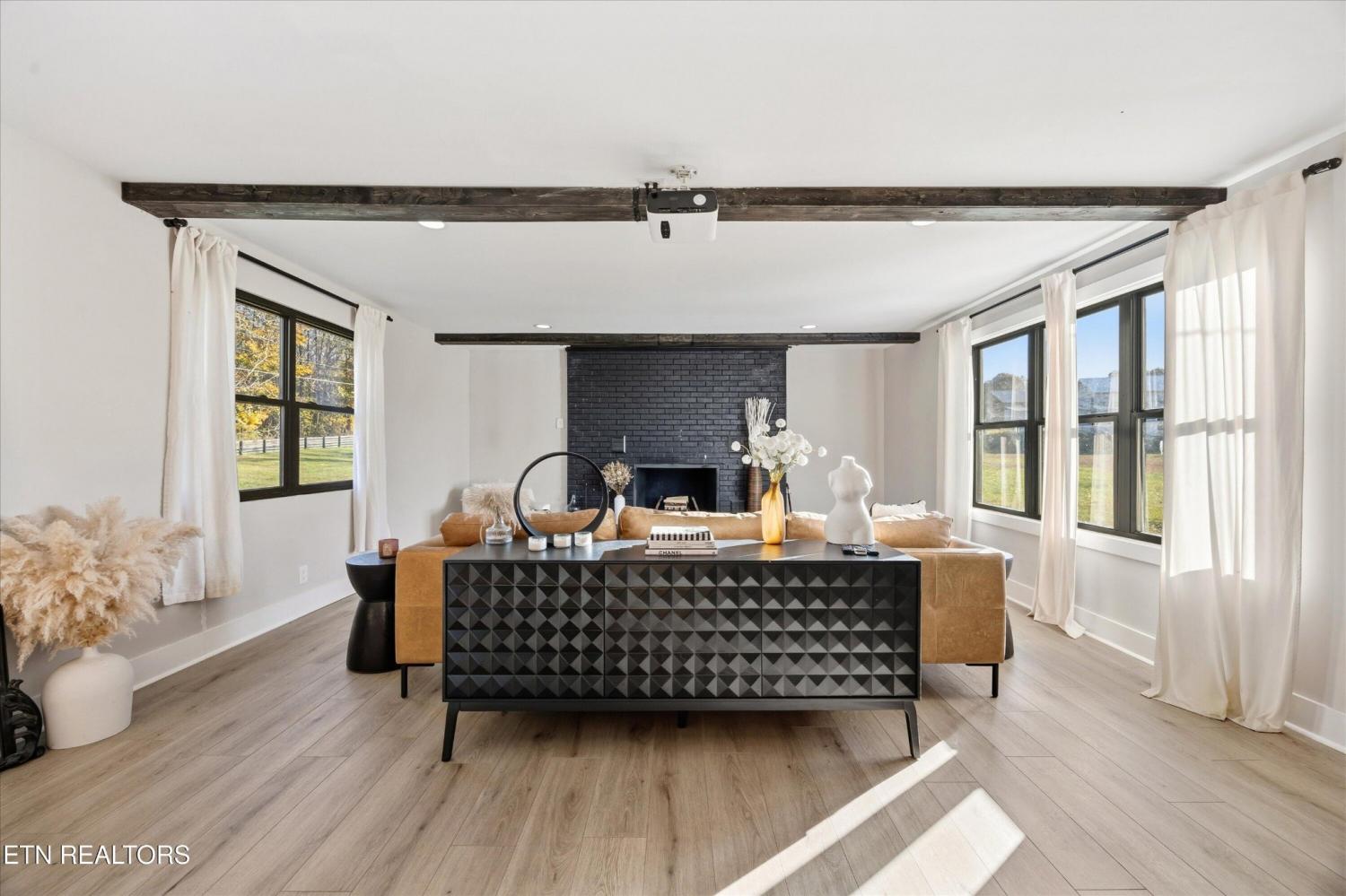 Welcome to this stunning remodeled rancher at 7931 Dry Valley Road — where timeless charm meets modern farmhouse style. Nestled on 5 private acres, this 4-bedroom, 3-bath home perfectly blends traditional and craftsman details with today's design trends. Inside, you'll find beautiful neutral-tone flooring, exposed wood beams, and a cozy living room featuring a black painted brick fireplace that sets the perfect tone for relaxing or entertaining. The modern kitchen boasts a striking island, a stylish mix of dark and light cabinetry, and designer finishes throughout. Each bathroom showcases walk-in showers and sleek, updated fixtures for a spa-like experience. Step outside to enjoy your spacious land complete with a newly built firepit — ideal for gathering under the stars. Built in 1920 and thoughtfully reimagined for modern living, this 1,928 sq ft home also includes a 2-car carport and all the character you've been searching for in a serene country setting, just a short drive from conveniences in Loudon and West Knoxville. You do not want to miss out on seeing this one before it's gone! Schedule your private tour today!***Due to inclement weather predicted, this weekends open house has been canceled.***