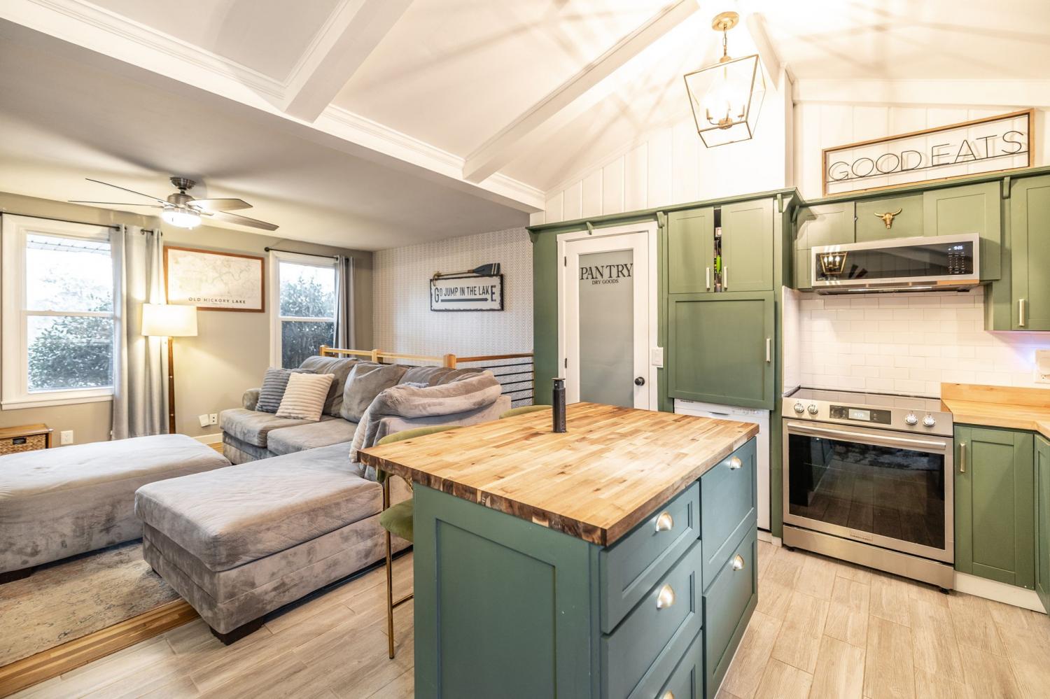 Beautifully renovated all-brick home situated on a spacious lot, offering a finished basement and extensive upgrades throughout! The stunning remodeled kitchen features a vaulted ceiling, farmhouse sink, pantry, stainless steel appliances, and a butcher-block island with a built-in charging station—perfect for today’s lifestyle! Recent updates include all new windows & doors, newer roof and new water heater. The finished basement includes a full bath and generous storage, providing flexible space ideal for a fourth bedroom, guest suite, home office, or recreation room. Finished hardwood floors and tile run throughout the home, with beautifully upgraded tile and finishes in every bathroom. Outdoor living shines with a fully fenced backyard, a brand-new oversized multi-level Trex deck, and a fire pit—ideal for entertaining or unwinding. Parking is plentiful with an attached two-car garage, additional carport, and a freshly paved large driveway. Conveniently located less than minutes from Old Hickory Lake, Drakes Creek Marina, Sanders Ferry Park, Walton Ferry Elementary, and nearby shopping and dining. No HOA. Security cameras convey with the home. A hidden safe room/tornado shelter adds peace of mind. This move-in-ready home seamlessly blends modern updates, flexible living space, and an unbeatable location—truly a must-see!