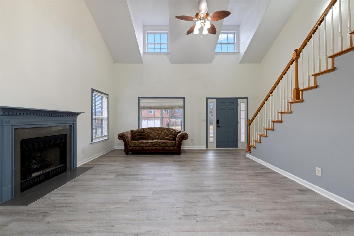 Beautiful 3 BR, 2.5 BA home tucked away on a quiet cul-de-sac in an all-brick community with sidewalks. Step inside to a stunning two-story great room filled with natural light and a cozy gas fireplace. The main-level primary suite offers comfort and convenience, while fresh paint and new LVP flooring flow throughout. Upstairs features nice-sized secondary bedrooms, a spacious bonus room, and a loft area—perfect for work or play. Enjoy outdoor living on the covered front porch or back patio overlooking the privacy-fenced yard. HOA maintains the lawn and landscaping, and the location is ideal—close to schools, medical facilities, and shopping.