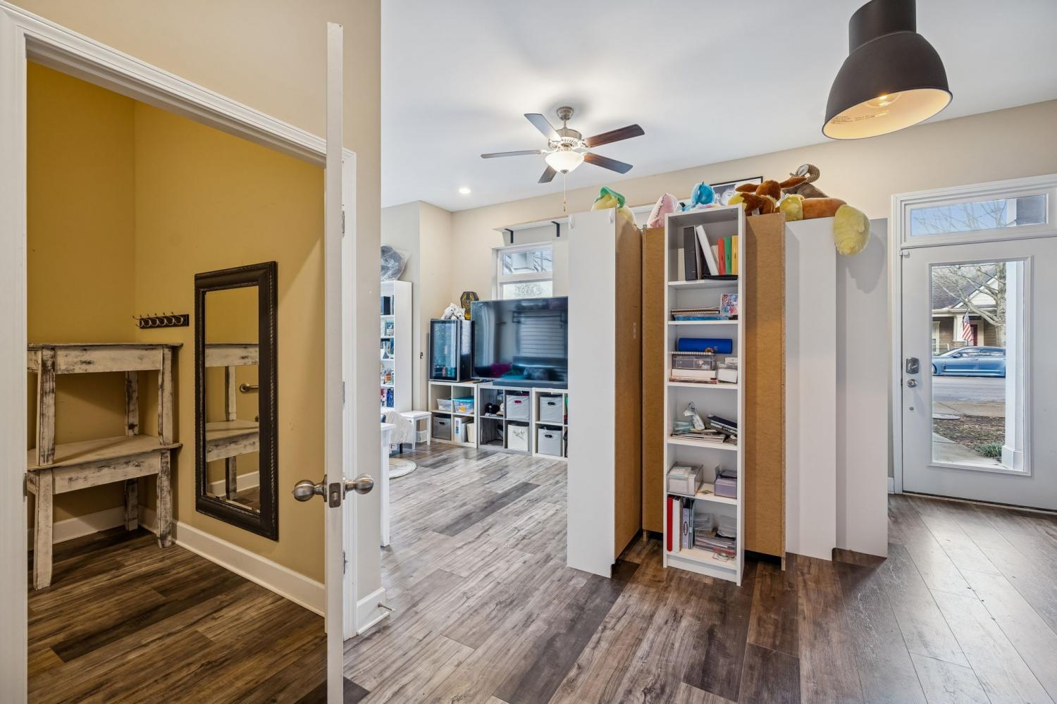 RARE LIVE/WORK TOWNHOME — thoughtfully designed to allow you to operate a business from the first floor while living comfortably on the second and third floors. This is a unique opportunity for an entrepreneur or professional to work from home, eliminate the cost of renting commercial space, and put that money toward your mortgage instead. Welcome to 1035 Avery Park Dr, a 2019 end-unit townhome in the desirable Lenox of Smyrna community. Purpose-built as a live/work residence, the first-floor flex space is ideal for a variety of office or retail uses, while the upper levels function as a spacious, modern home filled with natural light. This 3-bedroom, 2 full bath, 2 half bath townhome offers 2,148 square feet of living space with a super open layout and excellent quality construction — you won’t hear neighboring units. As an end unit, the home features tons of windows and abundant natural light throughout. The second floor showcases an open-concept kitchen, dining, and living area with LVP flooring and ceramic tile throughout (no carpet), granite countertops, and access to three large balconies — one off the kitchen/breakfast nook and two off the living room. Upstairs, the bedrooms are generously sized and well laid out. A sliding barn door separates the first-floor flex space from the main living areas, creating true work-life separation. The semi-finished garage provides bonus square footage not included in the 2,148 sq ft — perfect for additional workspace, storage, or studio space — and can easily be converted back to a traditional garage. Fresh exterior paint, a tree-lined neighborhood entrance, and a quieter interior location enhance the setting. Conveniently located just off I-24, you’re 30 minutes to Nashville or BNA, 5 minutes to the Nissan plant, and 15 minutes to Murfreesboro. With Smyrna’s continued growth, this home offers strong long-term value and an ideal setup to run a small business from home.
