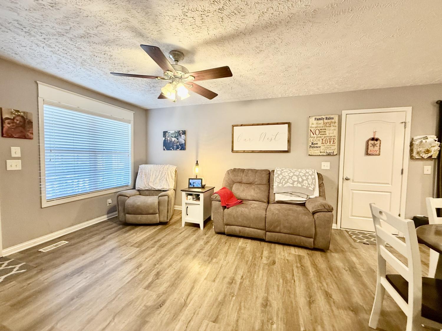 Welcome home to this beautiful one-owner cottage offering 3 bedrooms, 2.5 baths, and a convenient attached one-car garage. The thoughtfully designed main level features a spacious Primary Bedroom with a full bath and walk-in closet, providing easy, everyday living. The inviting Living Room flows seamlessly into the Kitchen and eat-in dining area, highlighted by custom cabinetry, stainless steel appliances, a walk-in pantry, and crown molding throughout. Enjoy added peace of mind with an encapsulated crawl space equipped with a dehumidifier for comfort and efficiency. Roof, HVAC & Water Heater less than 5 years old; Start your mornings with coffee on the covered front porch or unwind in the evenings on the covered patio—perfect for relaxing or entertaining. This charming home blends comfort, quality, and timeless appeal. Ideally located just minutes from I-40 and I-840, Downtown Lebanon, schools, shopping, dining, and Nashville International Airport.
