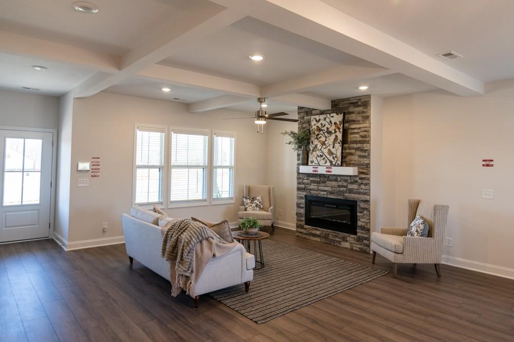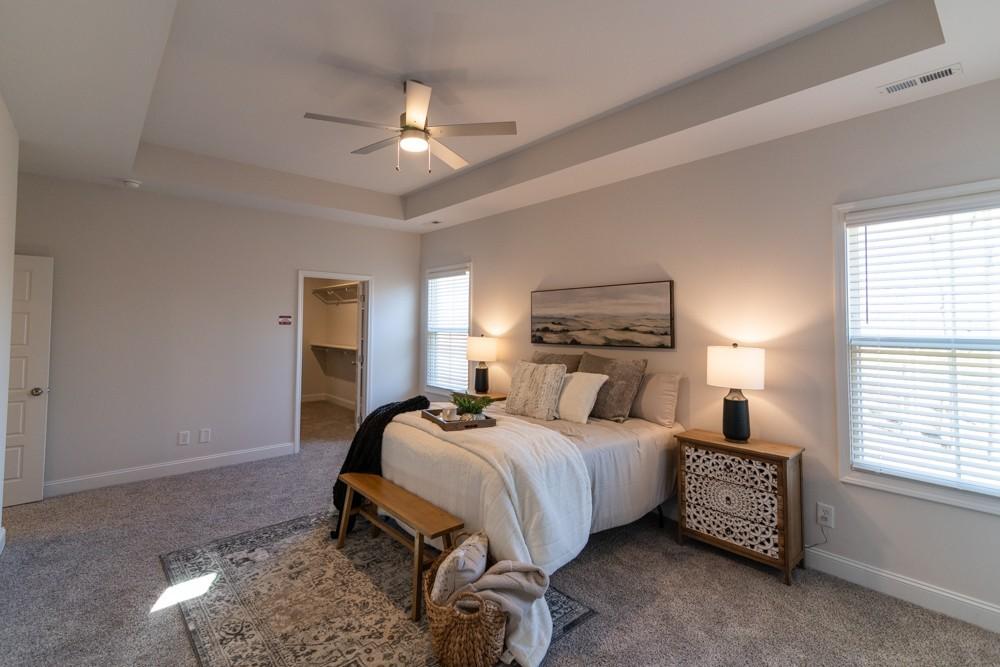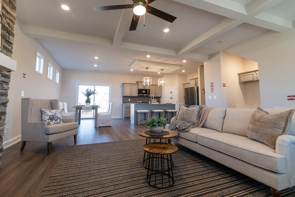 Welcome to the MILER FARM showcase home by Hawkins Homes! Boasting a thoughtful design, the master suite is conveniently located on the main level, complemented by a tiled oversized luxury shower and a vast walk-in closet. Upstairs, discover three additional bedrooms for family or guests. The kitchen is a culinary haven with a tile backsplash, an oversized island, and a seamless flow into the great room adorned with a cozy fireplace. Step outside onto the covered deck, an ideal extension of the eat-in kitchen. This Hawkins homes copyrighted floor plan ensures a unique layout. Your dream home awaits! The home comes with blinds and refrigerator! Homes come with Smart appliances, Smart Electric Fireplaces, Smart Thermostat, Security Systems including a Door Bell and Glass Break Sensor, and Upgraded Primary Closet Shelving. Upgraded Pre-finished Hardie will be utilized on the fronts. Seller is paying up to $25,000 towards buyer closing costs and other buyer needs (rate buy down, blinds, fence, frig etc)
