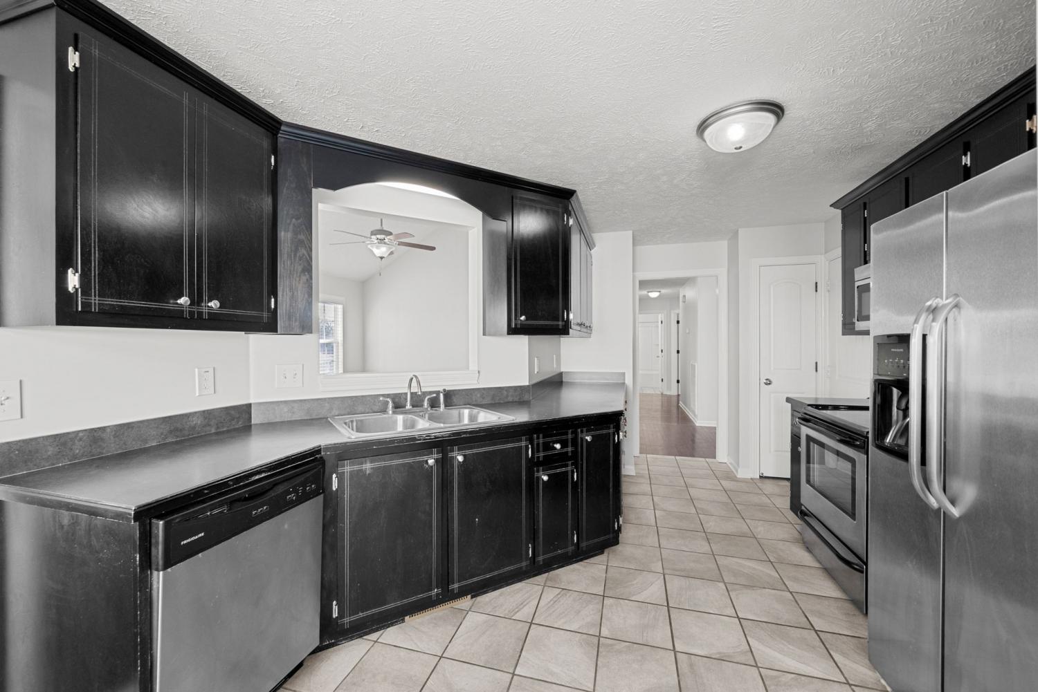 This home boasts three spacious bedrooms and two full bathrooms, offering ample space for comfort and relaxation. The modern kitchen, equipped with an electric stove, dishwasher, and built-in microwave. The home also features a laundry closet with washer/dryer connections for your convenience. The living area is enhanced by a gas log fireplace and a ceiling fan, ensuring a comfortable atmosphere in all seasons. Step outside to a charming patio, enclosed by a rear fence, offering a private outdoor space for relaxation or entertaining. The property also includes a two-car attached garage, providing parking and additional storage.