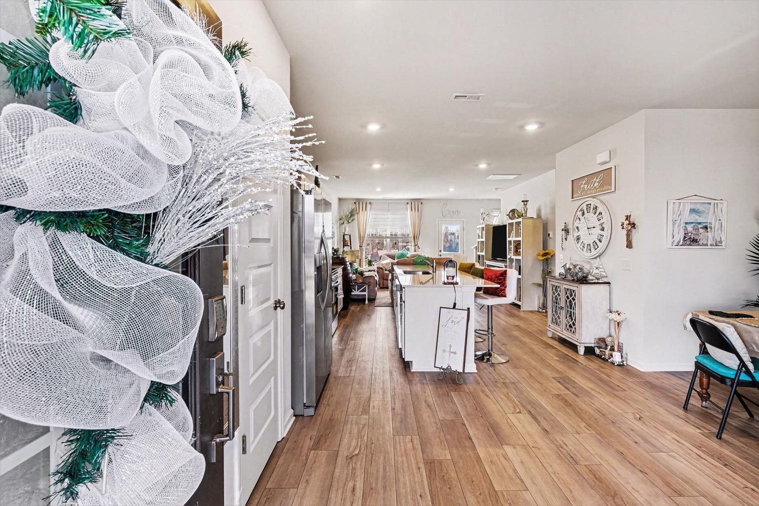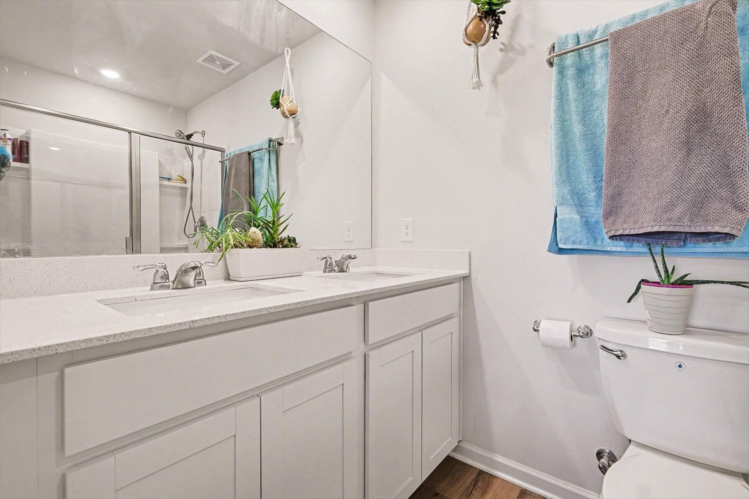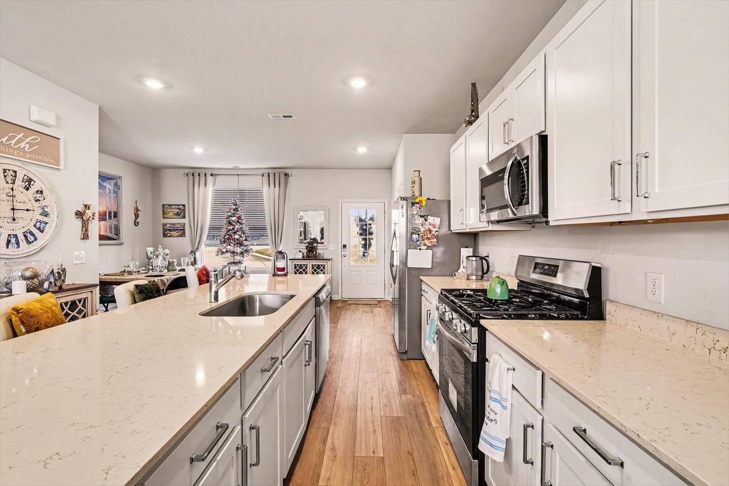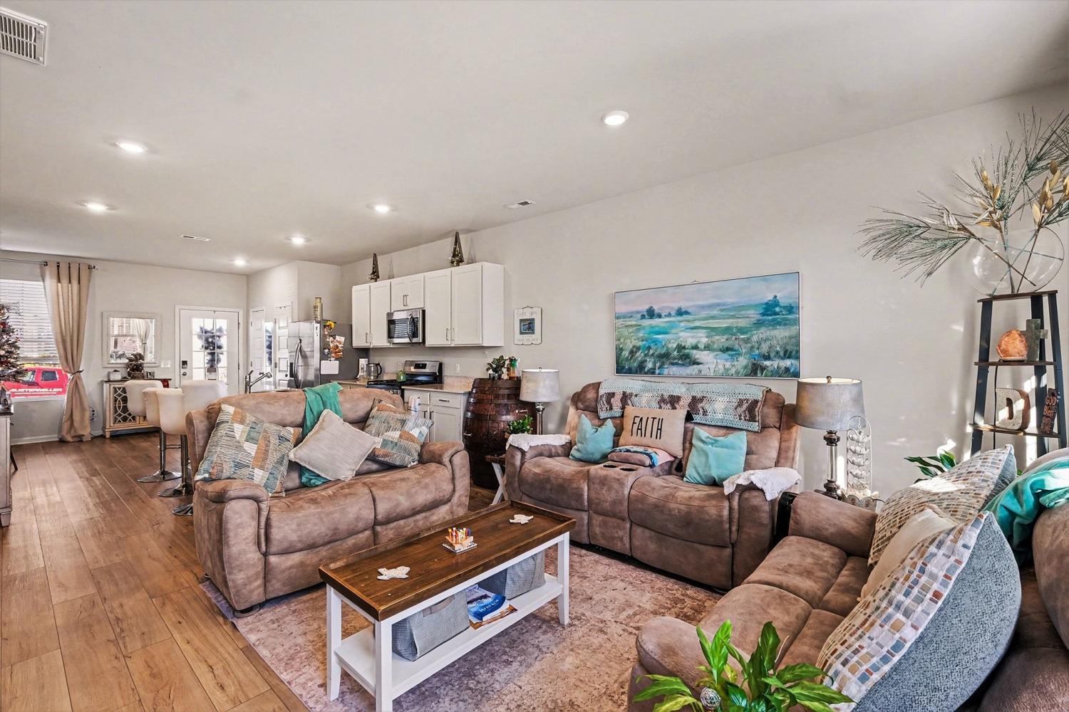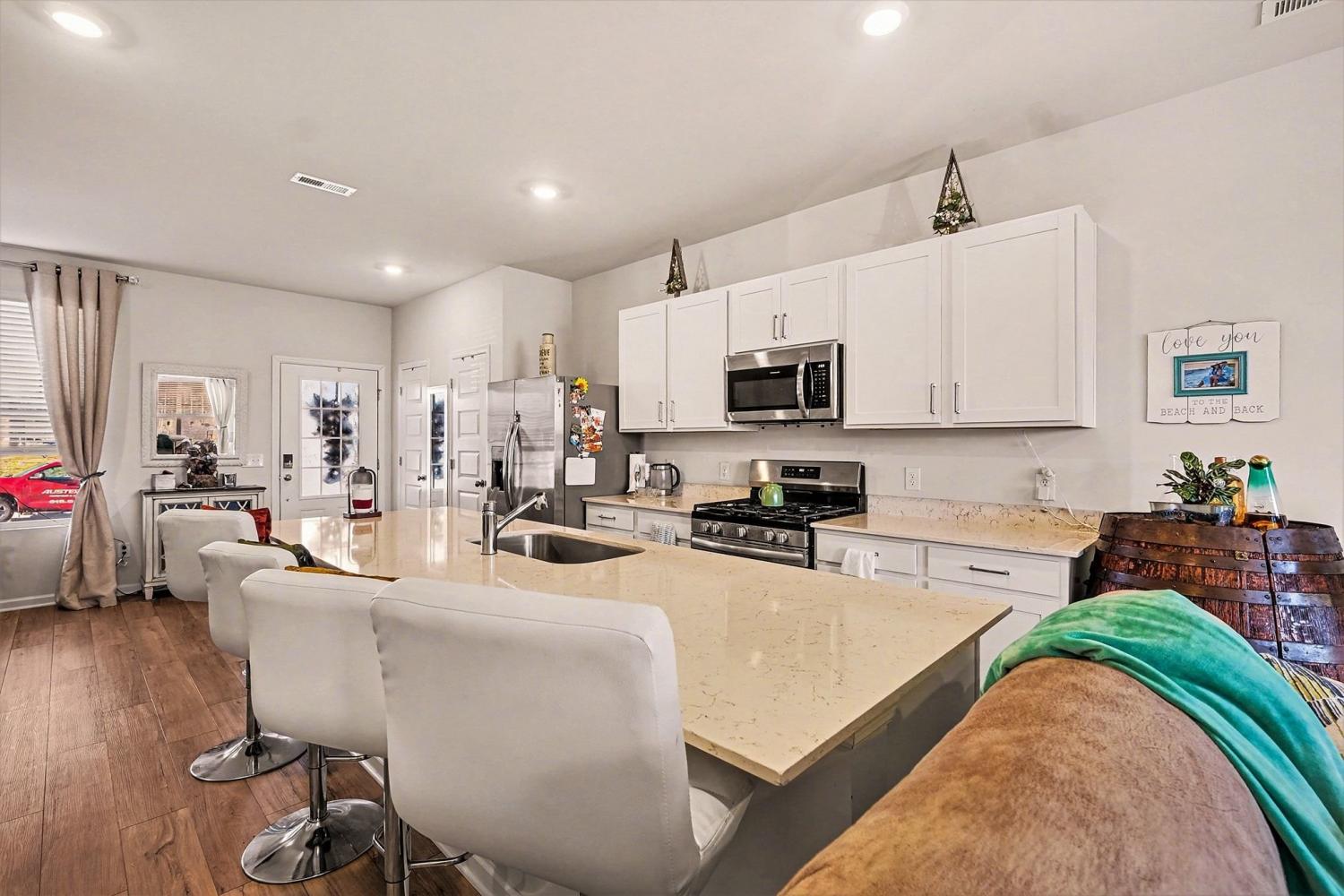 Like-new townhome just minutes from Spring Hill, offering modern style and a rare premium view. The open-concept layout features a chef-inspired kitchen with quartz countertops, oversized island seating, stainless steel appliances including a gas range, luxury vinyl plank flooring, 2-inch blinds, Ring doorbell, and smart thermostats. Upstairs, the primary suite includes dual vanities, a spa-like walk-in shower, and a walk-in closet, plus two additional bedrooms, a second full bath, and convenient upstairs laundry. Enjoy a spacious deck with a peaceful view—perfect for relaxing or entertaining. Community amenities include a newly built pool, two assigned parking spaces, guest parking, and a location close to schools, shopping, dining, and less than 10 minutes from downtown Spring Hill.