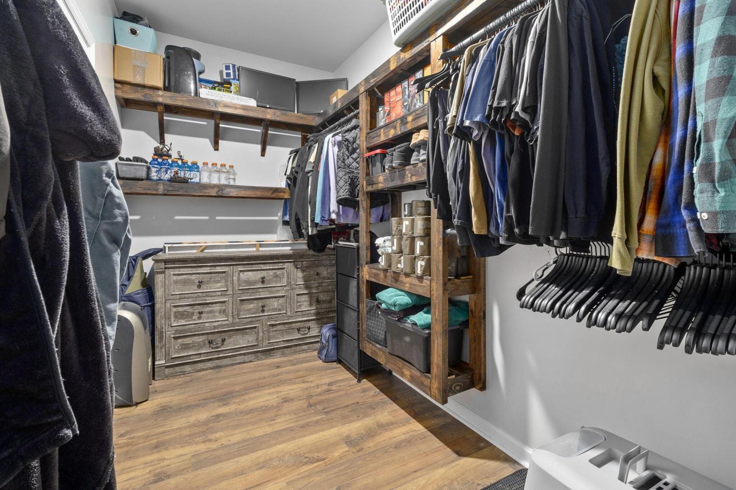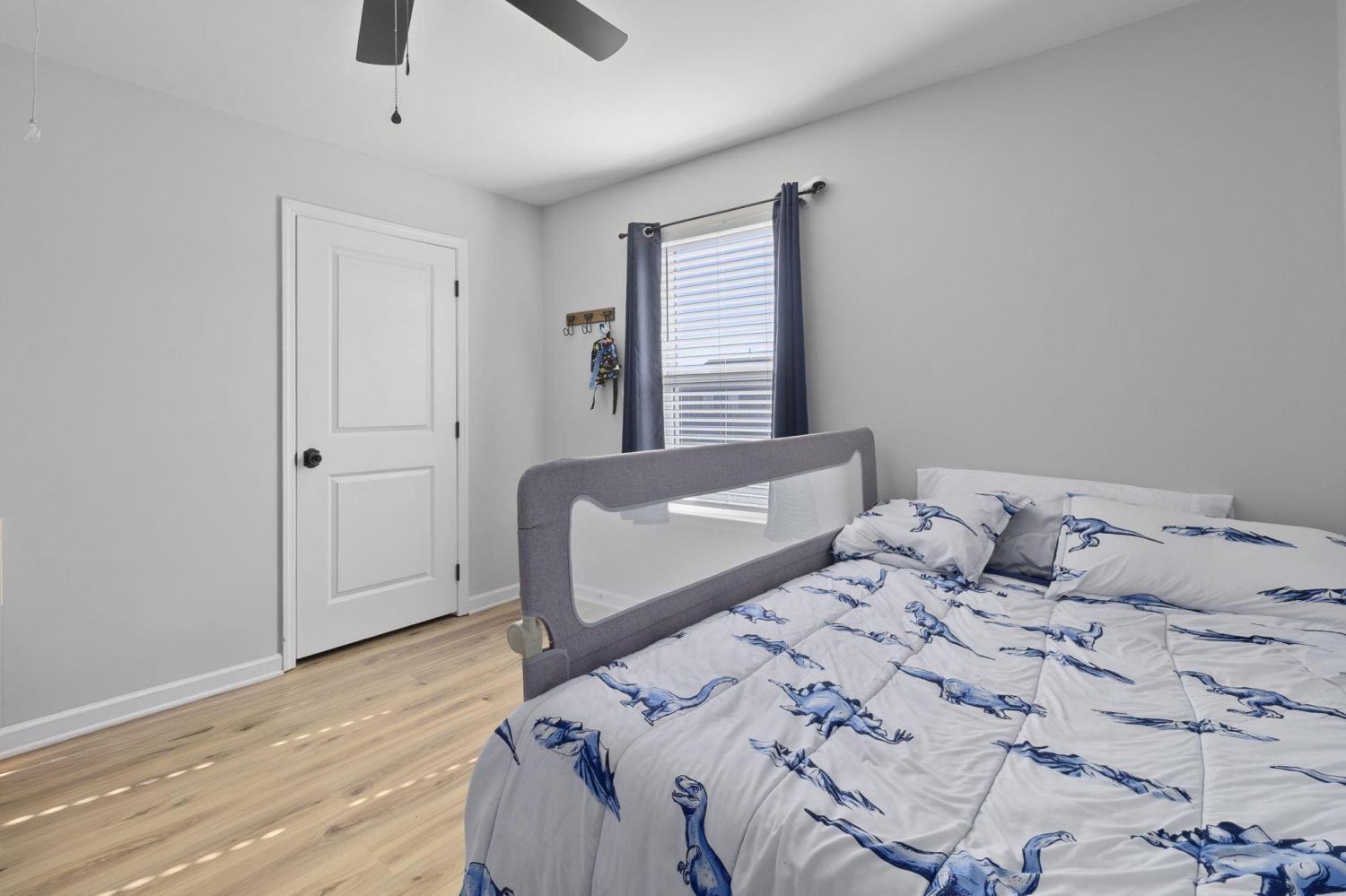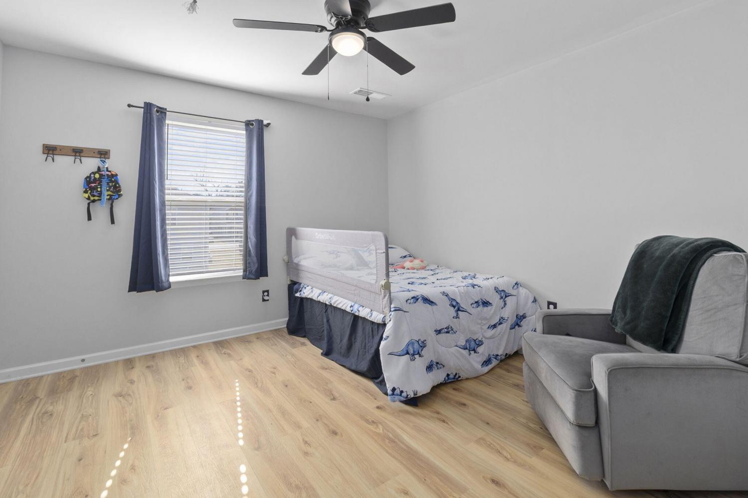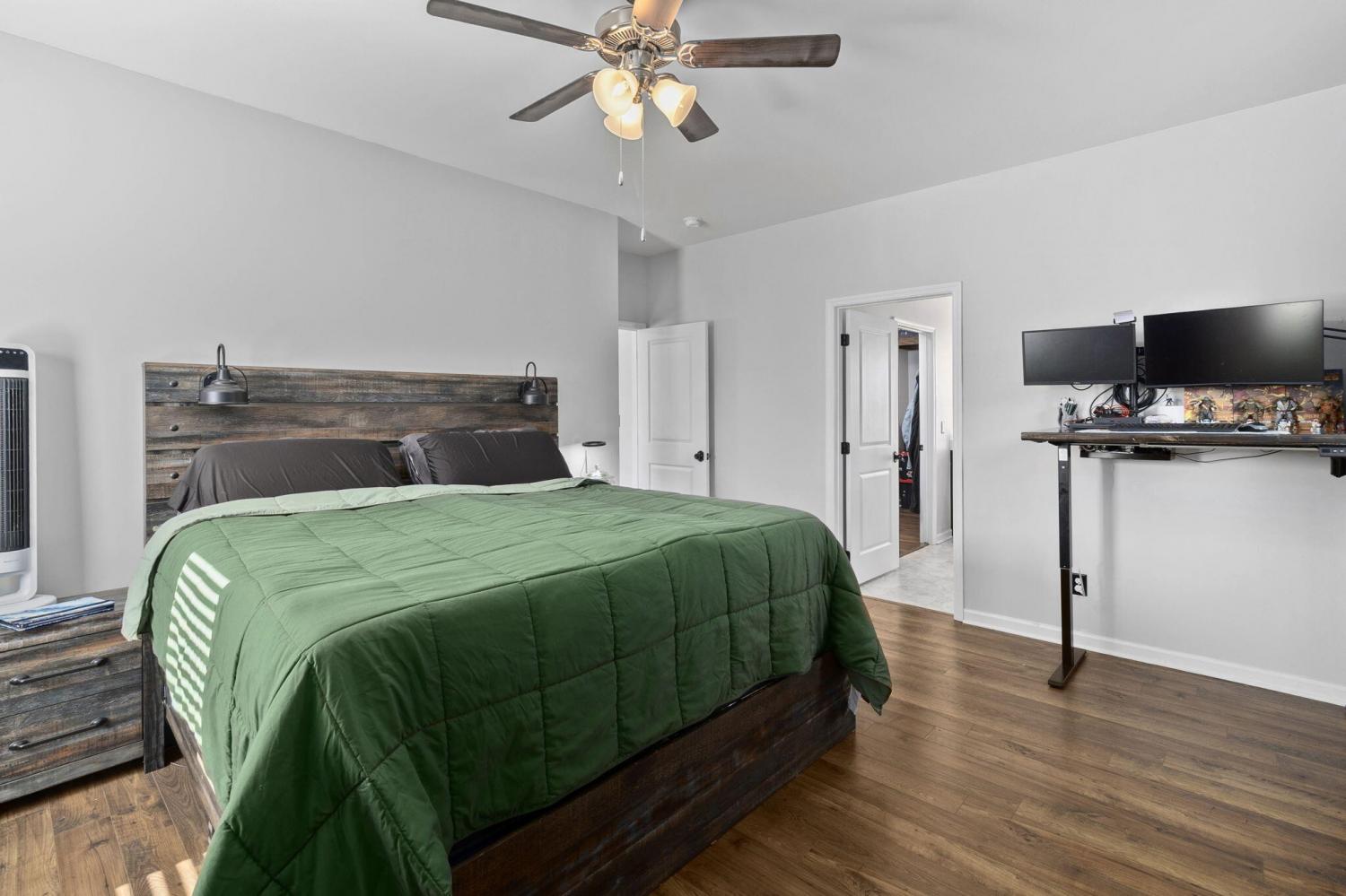 Step inside to a grand foyer with soaring ceilings that opens into a massive great room, designed with a seamless flow into the expansive kitchen and dining areas. The striking aesthetic features dark cabinetry providing a sophisticated contrast to light walls and gleaming granite countertops. The chef's kitchen boasts a massive island with bar seating, all-stainless appliances, and a premium gas cooktop. Storage is abundant with two pantries, including a walk-in with custom wood shelving. The large dining room offers picturesque views of the PRIVACY-FENCED BACKYARD and the majestic silhouette of White Oak Mountain. Step outside to the patio to enjoy the fresh air and mountain views; the owners have even added a dedicated gas line for easy grill hookups. The MAIN-LEVEL OWNER'S SUITE is tucked at the rear for maximum privacy and features a luxurious ensuite with double vanities, a large shower, and a huge walk-in closet with custom wood shelving. A well-appointed laundry room with custom cabinetry and a guest powder room are also conveniently located on the main floor. Newly added hardwood stairs lead to the second level, featuring a large, versatile loft perfect for a den or game room. This floor includes four additional spacious bedrooms and a full bath, providing ample room for family or guests. With over 2,600 sq ft of well-maintained living space, a two-car garage, and a BACKYARD OUTBUILDING for projects or storage, this home perfectly balances grand entertaining with functional, private escapes.