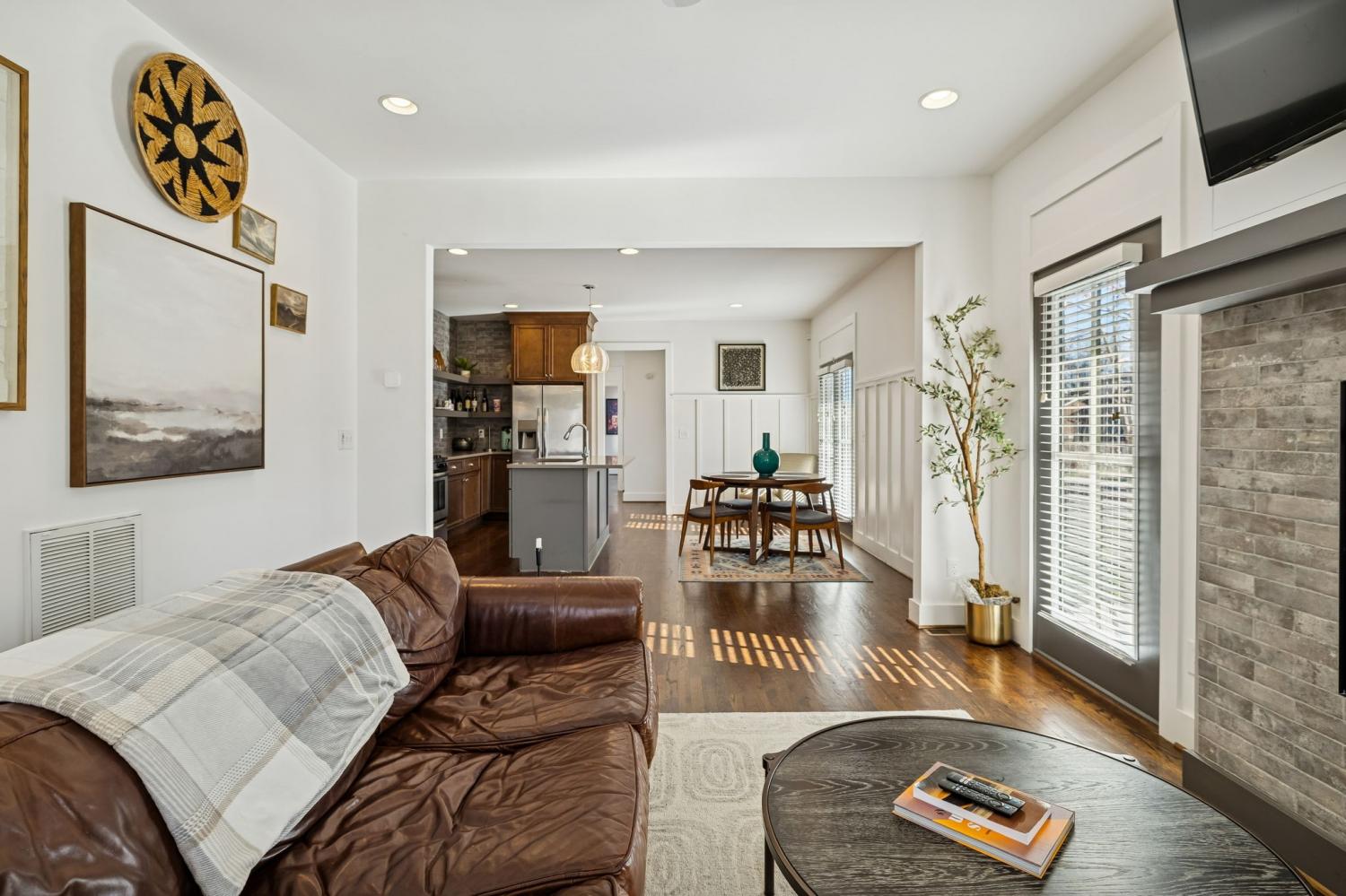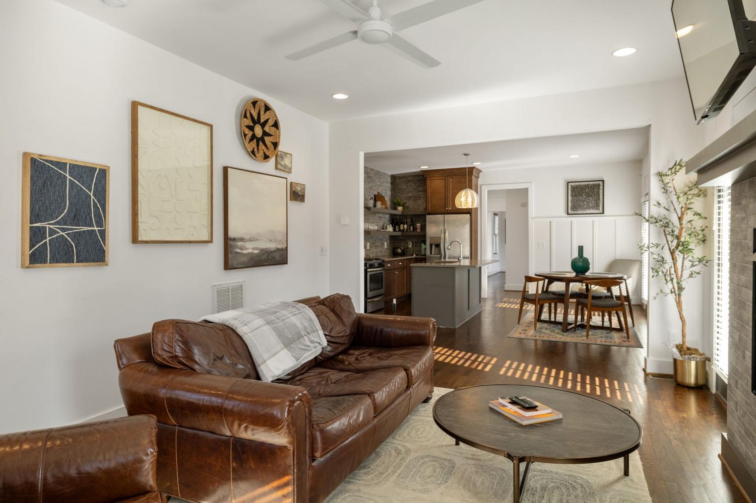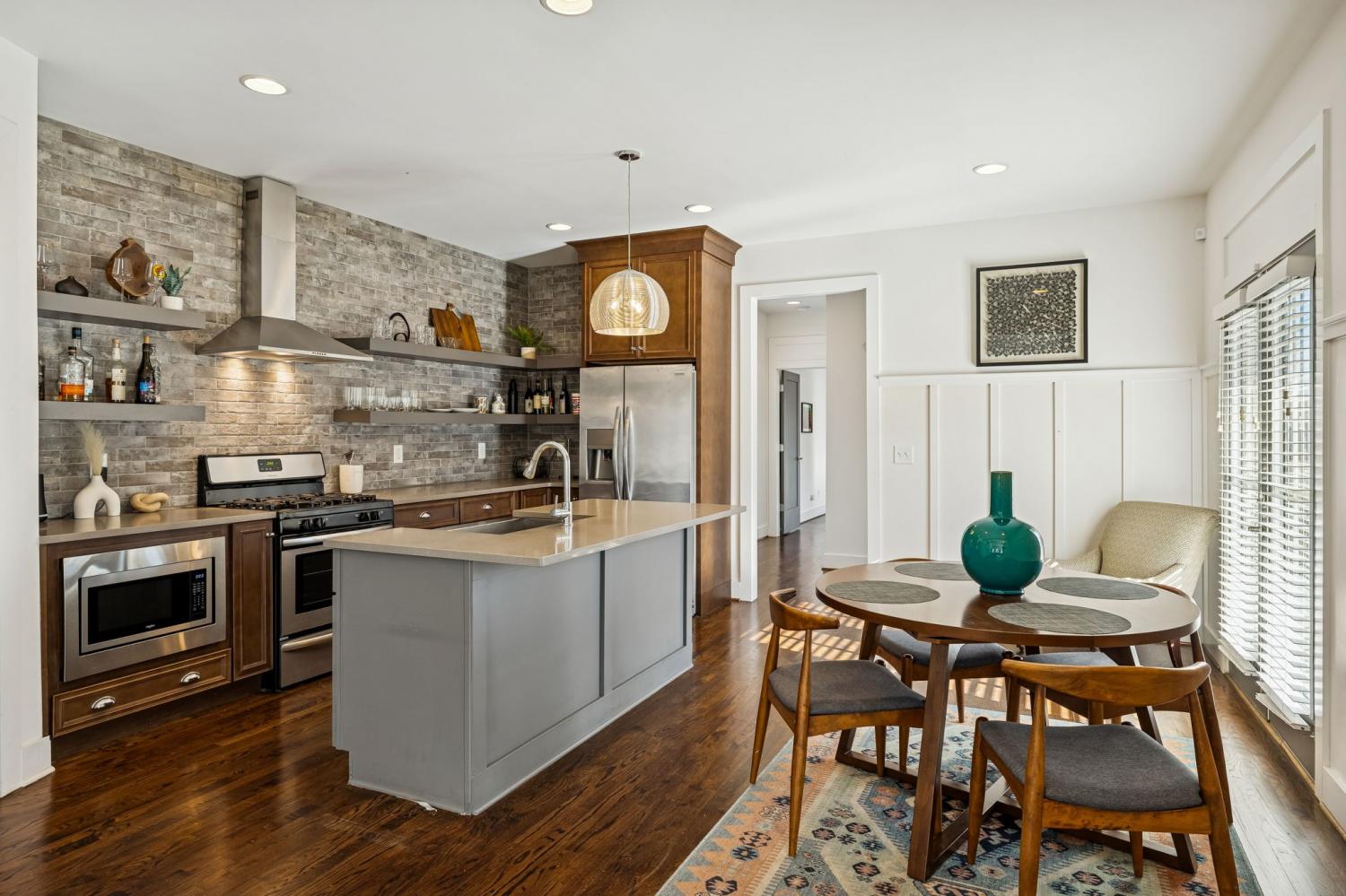 Location truly doesn’t get better than this! Just 1 mile from Trevecca Nazarene University and minutes to Belmont University and Vanderbilt University, this home offers unbeatable proximity to some of Nashville’s most desirable destinations. Downtown favorites like Nissan Stadium and Bridgestone Arena are only 2 miles away, putting dining, entertainment, music, and sporting events right at your fingertips. True Southern charm welcomes you with a rare wraparound porch in the heart of the city. Inside, this 3 bedroom, 2.5 bath home offers 1,818 square feet with beautiful hardwood floors throughout, no carpet anywhere. The open-concept main level features a comfortable living room with gas fireplace, a spacious kitchen with quartz countertops, pantry, island with seating, and all appliances to remain. The dining area flows seamlessly for entertaining, and the walk-in utility room includes washer and dryer. The main-level primary suite features double vanities, a tiled shower, and a walk-in closet with built-ins. Upstairs offers 9’ ceilings, spacious secondary bedrooms with impressive 14’ ceilings, and a full bath. Thoughtful design, abundant natural light, and a highly functional layout make this home ideal for everyday living or an excellent income-producing opportunity for multiple occupants. Private parking and fenced front and side yards complete the package, delivering city convenience, charm, and flexibility all in one.