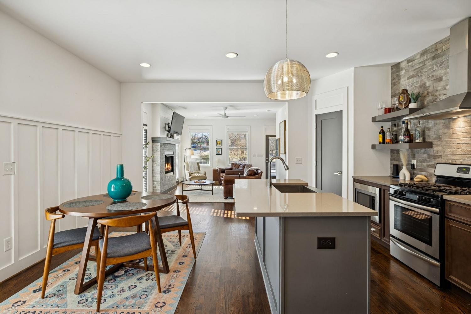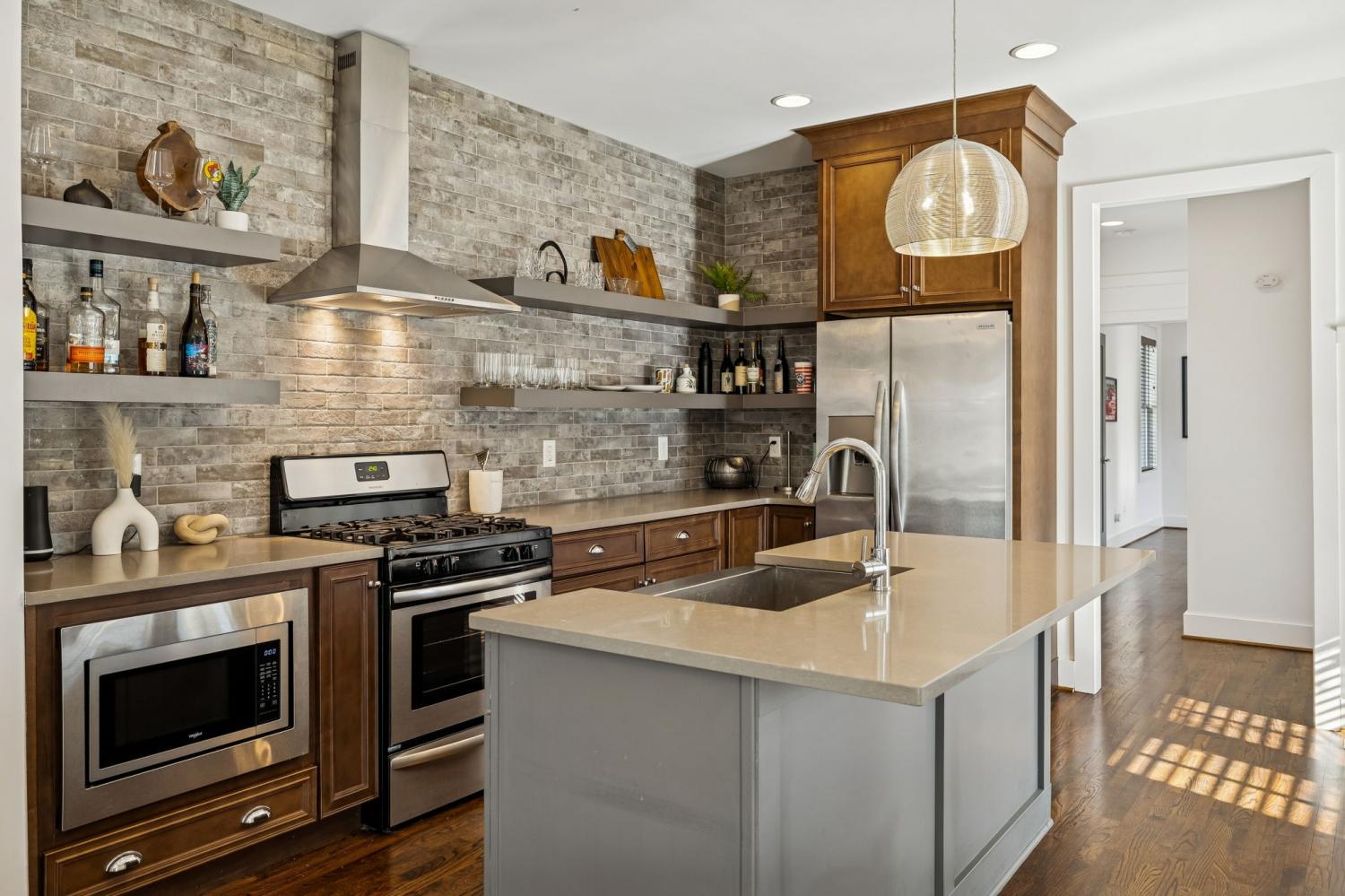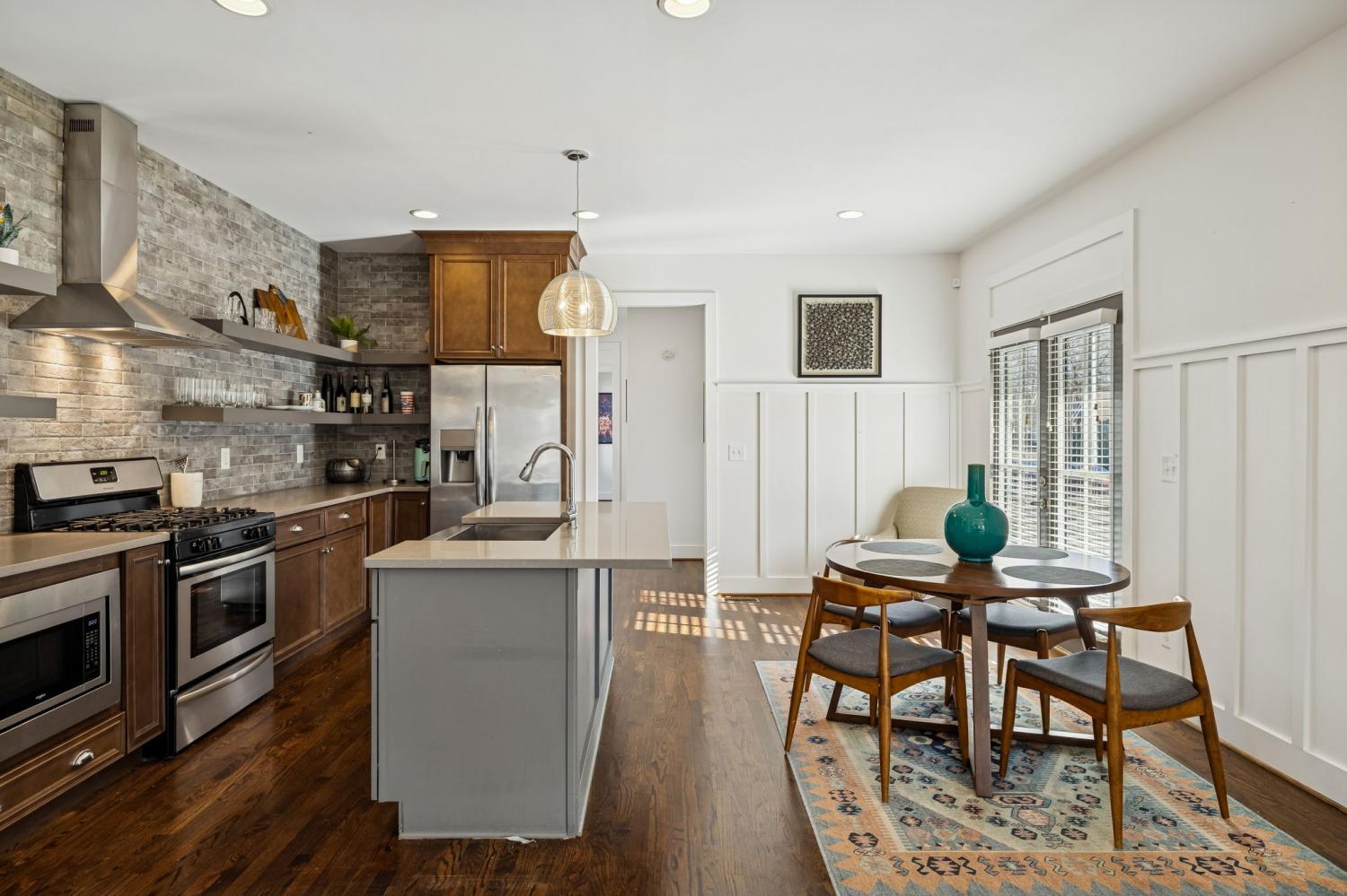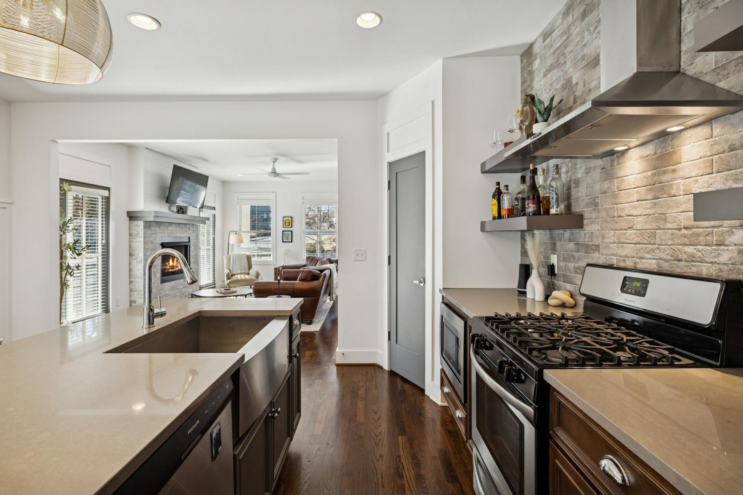 Location truly doesn’t get better than this! Just 1 mile from Trevecca Nazarene University and minutes to Belmont University and Vanderbilt University, this home offers unbeatable proximity to some of Nashville’s most desirable destinations. Downtown favorites like Nissan Stadium and Bridgestone Arena are only 2 miles away, putting dining, entertainment, music, and sporting events right at your fingertips. True Southern charm welcomes you with a rare wraparound porch in the heart of the city. Inside, this 3 bedroom, 2.5 bath home offers 1,818 square feet with beautiful hardwood floors throughout, no carpet anywhere. The open-concept main level features a comfortable living room with gas fireplace, a spacious kitchen with quartz countertops, pantry, island with seating, and all appliances to remain. The dining area flows seamlessly for entertaining, and the walk-in utility room includes washer and dryer. The main-level primary suite features double vanities, a tiled shower, and a walk-in closet with built-ins. Upstairs offers 9’ ceilings, spacious secondary bedrooms with impressive 14’ ceilings, and a full bath. Thoughtful design, abundant natural light, and a highly functional layout make this home ideal for everyday living or an excellent income-producing opportunity for multiple occupants. Private parking and fenced front and side yards complete the package, delivering city convenience, charm, and flexibility all in one.