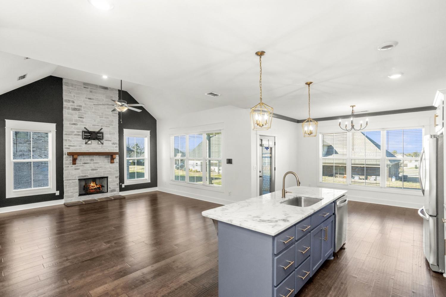 Move-in ready home featuring an open floor plan with a vaulted great room. Expansive kitchen boasts Shadow Storm Quartzite counters & Carrara marble backsplash. Main-level primary suite has a vaulted ceiling, spa bath with tile shower & whirlpool, and a custom closet. Second bedroom & bath also on main. Enjoy the covered porch with a cozy fireplace.