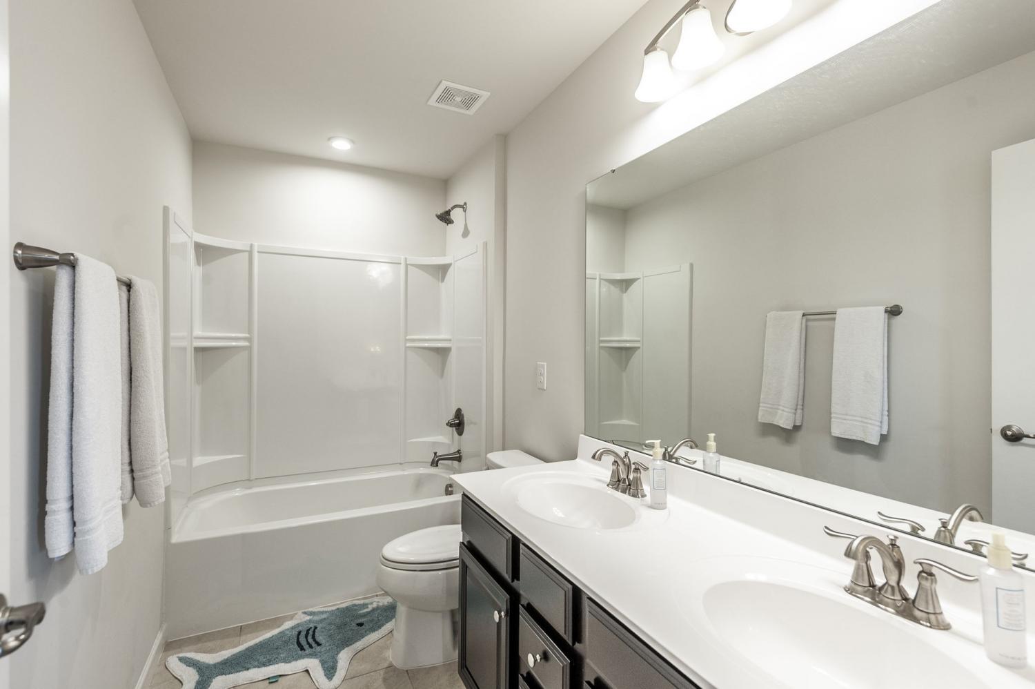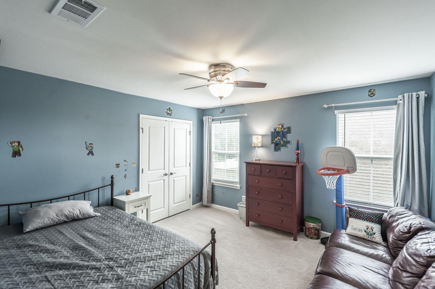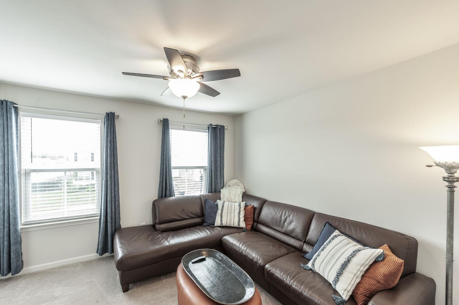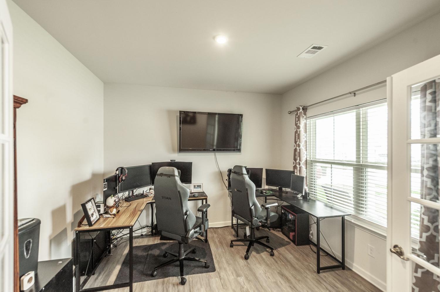 PREFERRED LENDER OFFERING A 1% LENDER CREDIT BASED UPON LOAN AMOUNT AND FREE APPRAISAL. Welcome to the popular Hudson Plan in the highly sought-after Fairway Farms community! This spacious 5-bedroom, 3-bathroom home offers a versatile and open-concept layout. The main level features LVP flooring throughout, a bedroom w/ a private ensuite bath, and a dedicated office with French doors. Upstairs, you'll find the expansive primary suite with two walk-in closets, double vanities, and a tiled walk-in shower with dual shower heads. The chef’s kitchen is a showstopper, showcasing an oversized island, granite countertops, tiled backsplash, pantry, stainless steel appliances, a gas range, and double ovens—one gas and one electric. Enjoy the outdoors in your large, fenced-in backyard featuring an irrigation system, covered patio, and extended concrete patio, perfect for entertaining. Additional upgrades include custom blinds, hardwood stairs, Ring doorbell, two Nest thermostats, a tankless water heater, and a completely floored attic for ample storage. The garage also includes an upgraded track system for efficient organization/storage. Schedule your private tour today!