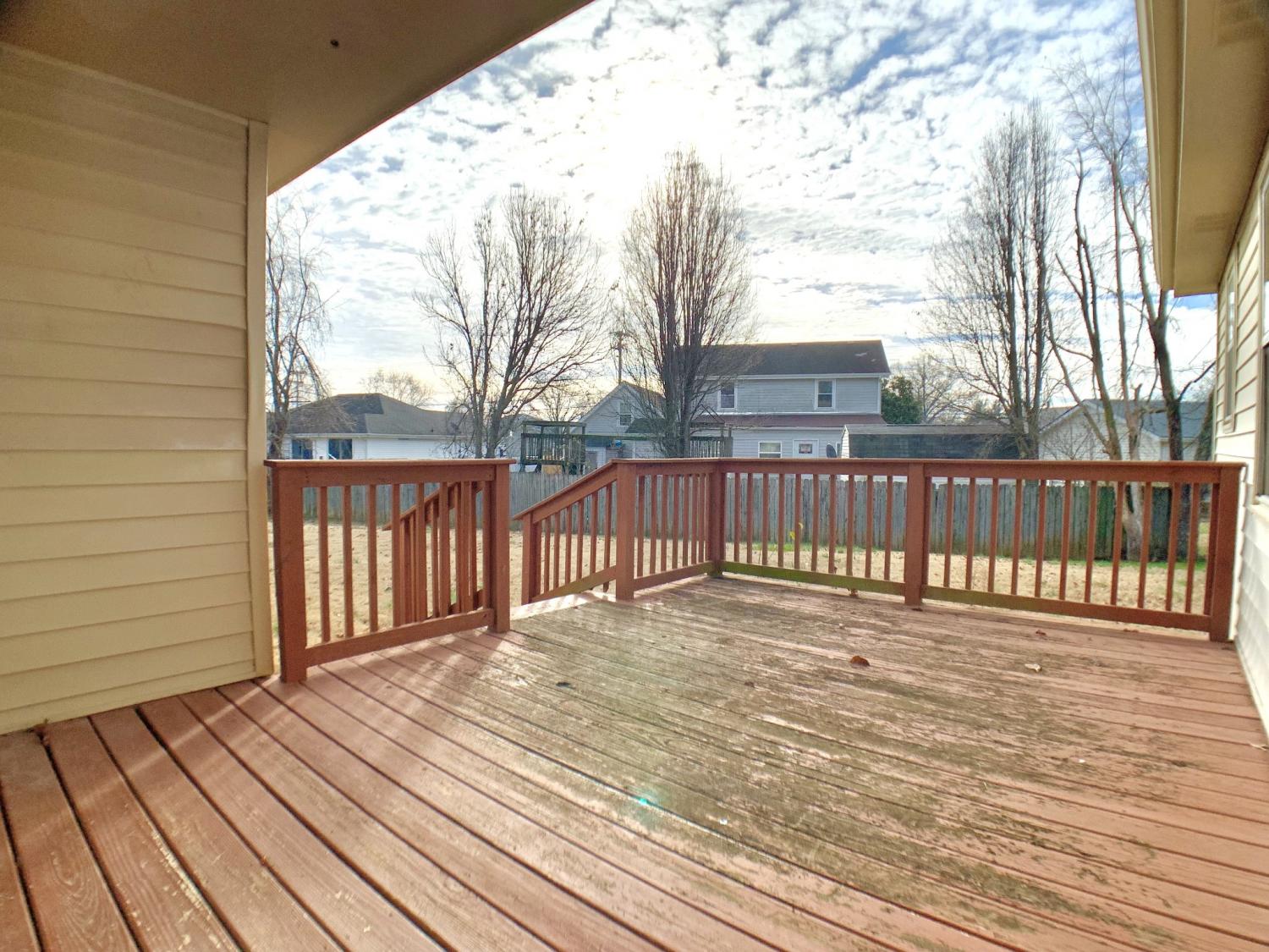 This charming 3 bedroom, 2 bath home sits just minutes from Fort Campbell, offering both comfort and convenience. The spacious primary suite features a walk‑in closet and a private attached bathroom. Enjoy a mix of carpet, tile, and vinyl flooring throughout, plus the added benefit of an attached one‑car garage. Step outside to a large backyard complete with a deck, perfect for relaxing or entertaining. Pets allowed with $300 pet fee per pet. No more than 2 pets, no vicious breeds or puppies under 12 months old.