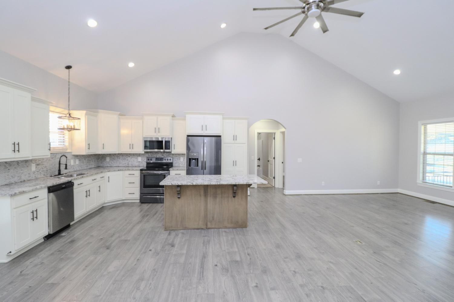 SPACIOUS 4-BDR, 3-BATH BRICK/STONE HOUSE IN BRIDLE PATH SUBDIVISION!! OPEN FLOOR PLAN WITH LIVING ROOM, KITCHEN AND DINING AREA ALL FLOWING TOGETHER WITH SOARING VAULTED CEILING, GRANITE COUNTER TOPS AND ISLAND WITH SNACK BAR, PRIMARY BDR. W/HUGE WALK-IN CLOSET AND CUSTOM TILE SHOWER, 4TH BDR. AND REC. ROOM COULD ALSO BE UTILIZED AS AN IN-LAW QUARTERS WITH A SEPARATE ENTRANCE, ADDITIONAL WASHER/DRYER HOOK-UP AND FULL BATH WITH WHIRLPOOL TUB! ENJOY THE VIEWS FROM THE 35' COVERED FRONT PORCH OR FROM THE 16X12 REAR COVERED DECK! EXCELLENT LOCATION JUST MINUTES FROM TOWN!!