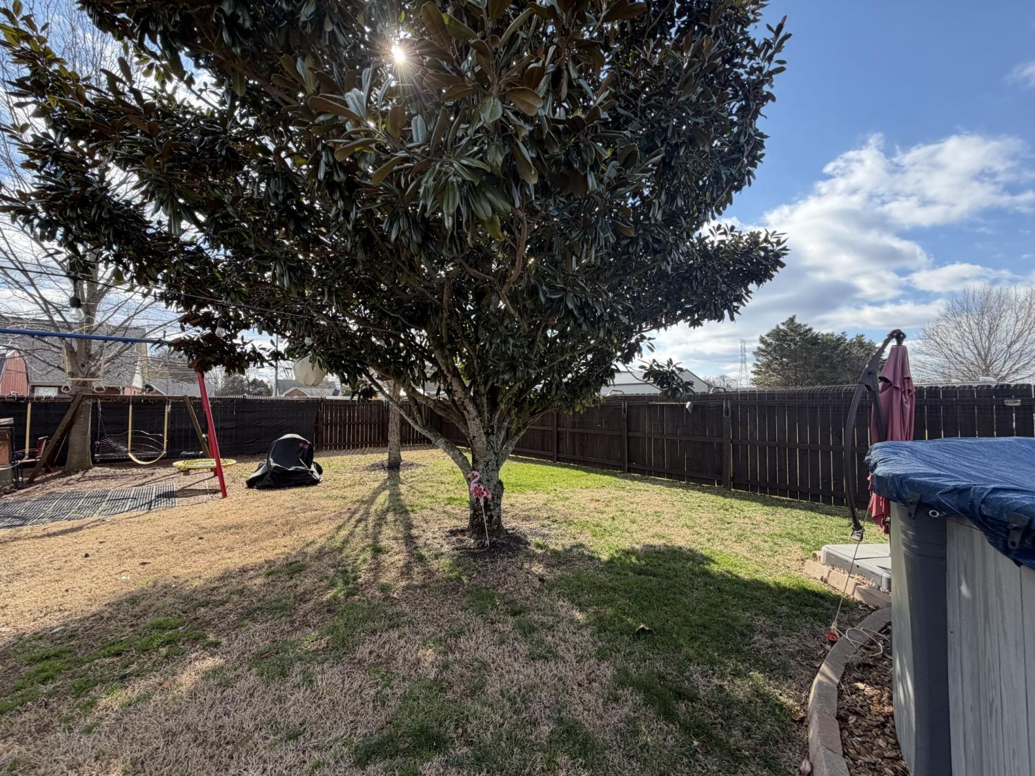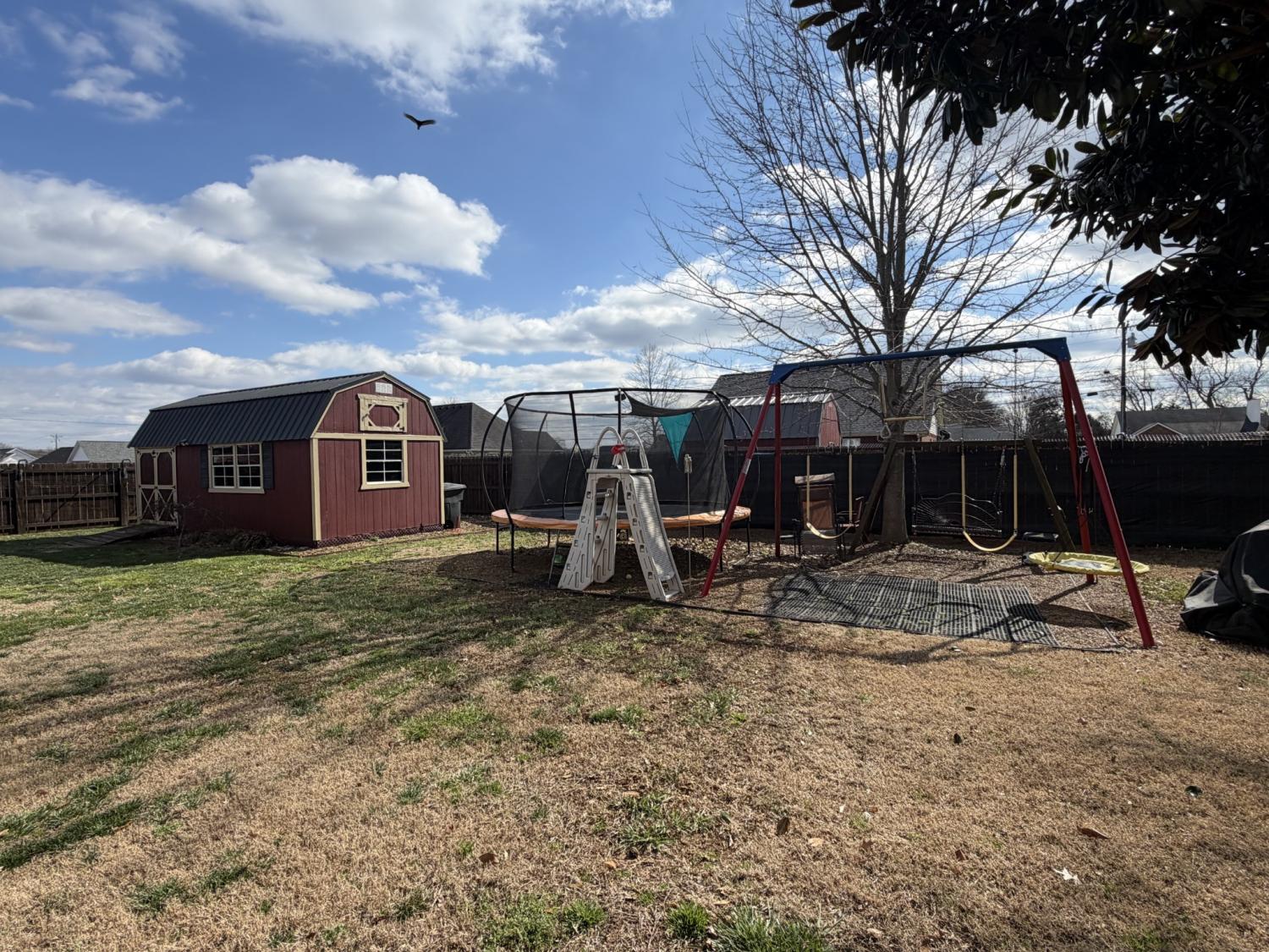 ONE STORY; 4 bed/2 bath*Drop zone at back door entrance. custom landscape, 10x24 screened in patio, A CHILD'S DREAM PLAYGROUND YARD WITH: 3yr old above ground pool with upgrades and extras; Electricity ran to pool pump, 2YR OLD trampoline, adult size swing set with pea gravel and boarder, basketball hoop; A GUYS DREAM SHED: A 12x25 LOFTED MENNONITE OLD HICKORY SHED W/ACCESS TO ATTIC DOORS 4 WINDOWS W/INSULATION, FULL LENGTH WORKBENCH/STORAGE RACKS, metal roof and electric, Oversized concrete driveway with 24x25.5' carport & 2020 Premium stained privacy fence with steel bracing for full back yard. 2023 full bath renovation. 3.5ton hvac heat pump installed Feb 2021, All plumbing supply lines replaced with Aqua Pex 2024. Roof installed 2019 with 50 year shingle, XL floored attic space for additional storage / insulation box installed AND Storm doors installed at all 4 entry doors.